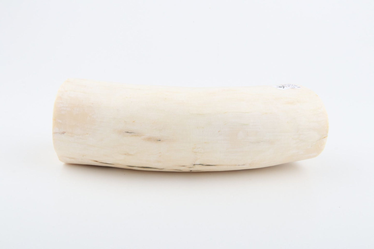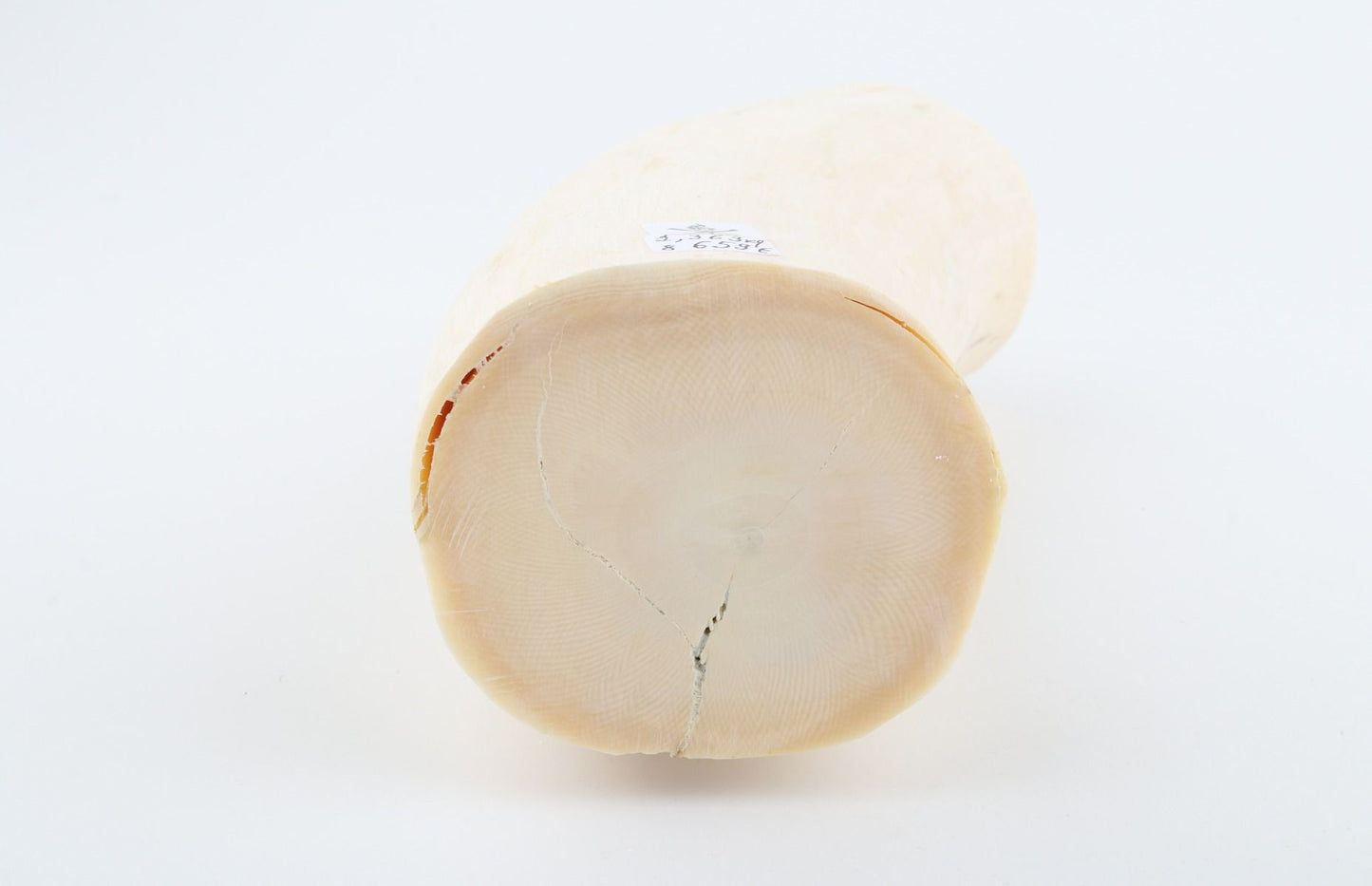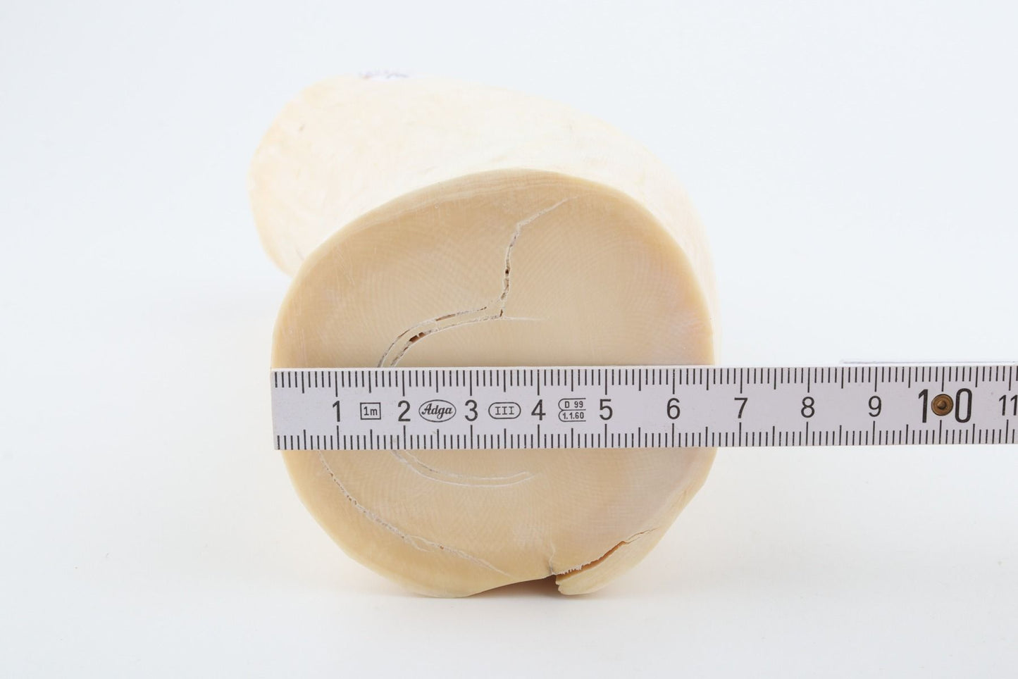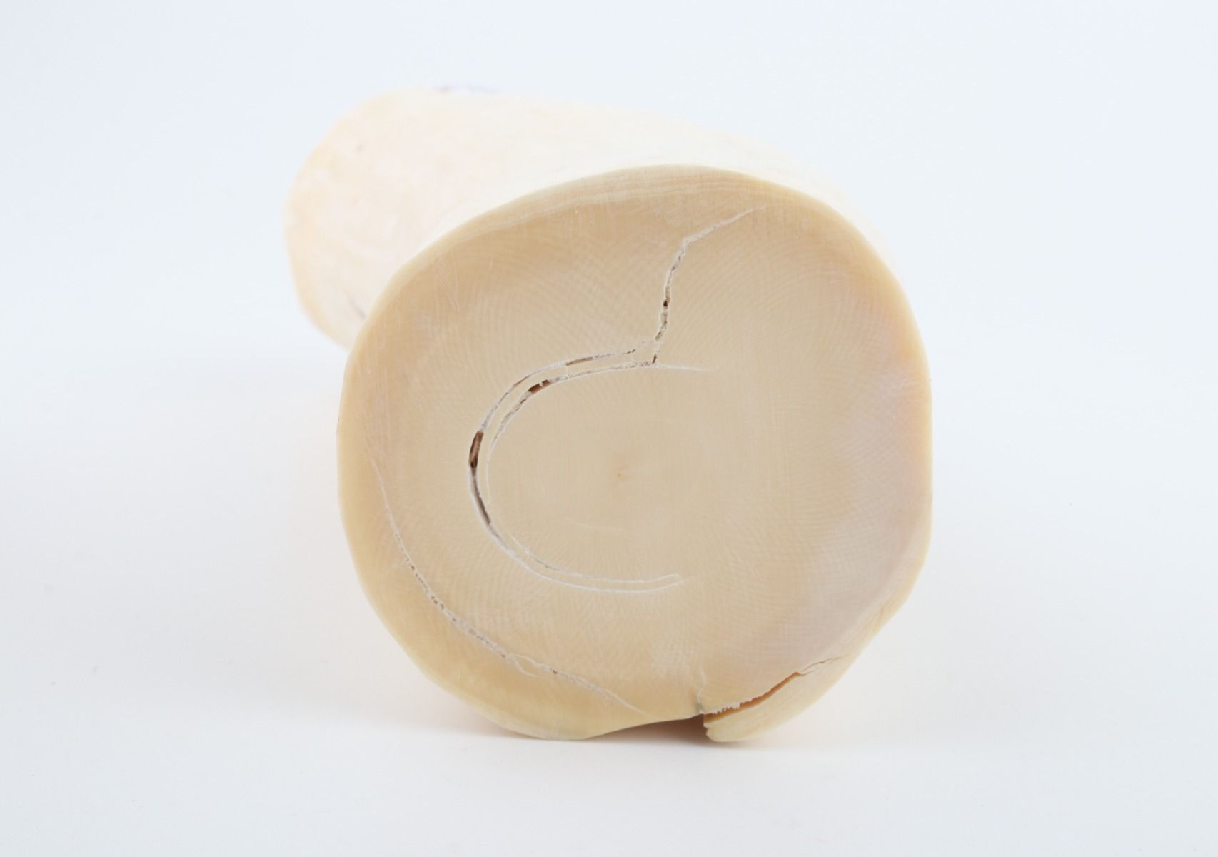 This is a top-quality piece of Siberian woolly mammoth ivory (Mammuthus primigenius). The ivory is rock-solid and completely dry. There are a few small, non-penetrating cracks. Plenty of reserves on both ends. One cross-cut section is slightly larger than the other. Please carefully look at the pictures for precise dimensions. The colour of the ivory is white.