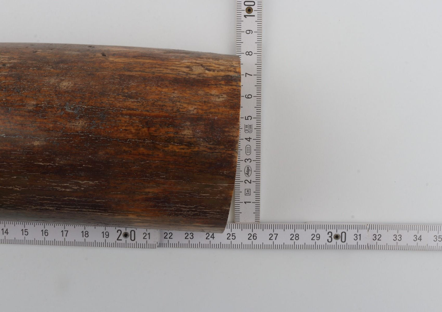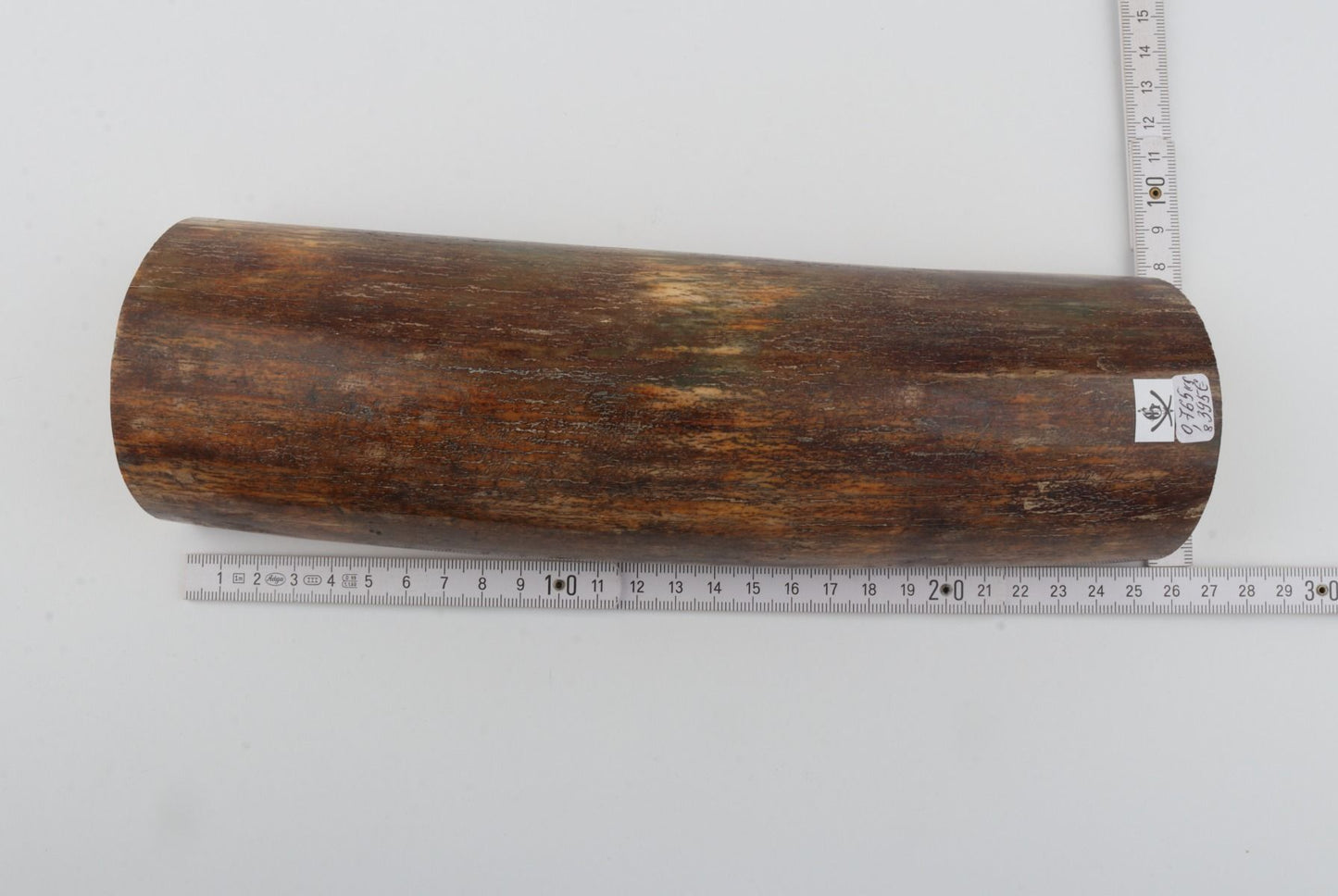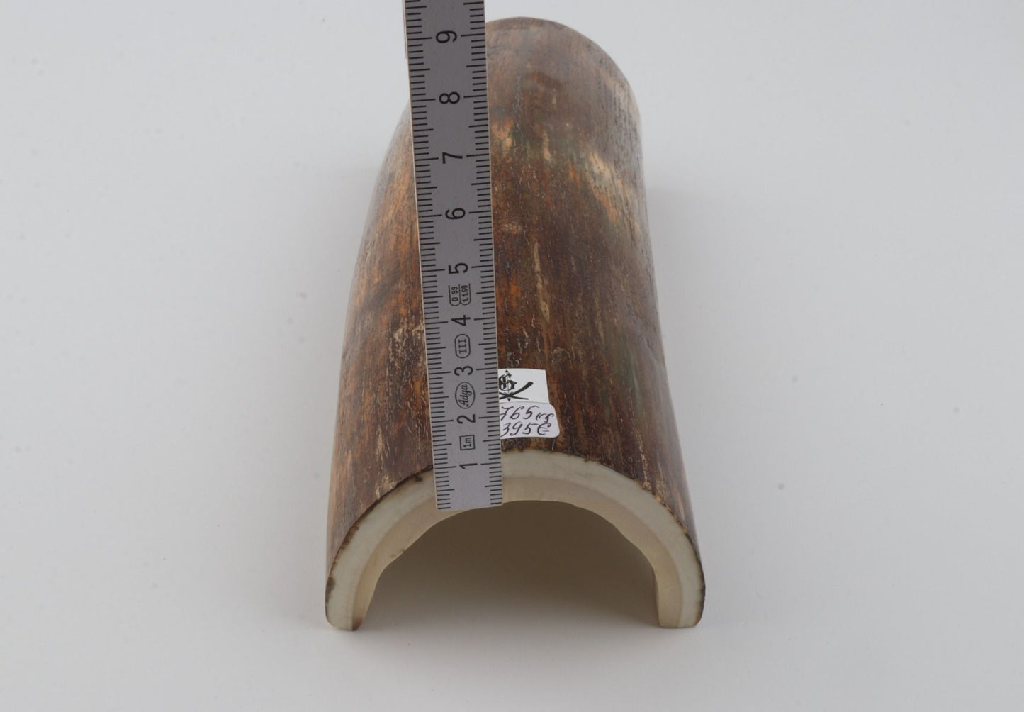 This is a top-quality piece of Siberian woolly mammoth bark (Mammuthus primigenius). The ivory is rock-solid without cracks. One cross-cut section is slightly thicker than the other. Consistent width with plenty of reserves on both ends. The colour of the bark is a mix of brown, orange and green.
