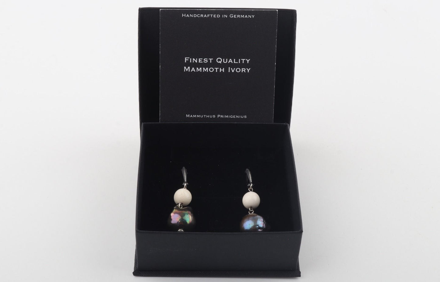 Adding a touch of luxury, delicate sterling silver elements gracefully complement the pearls and the mammoth ivory, elevating their charm. These exquisite earrings celebrate the splendor of both the past and the present, allowing you to carry a piece of nature and history while exuding modern elegance and style.