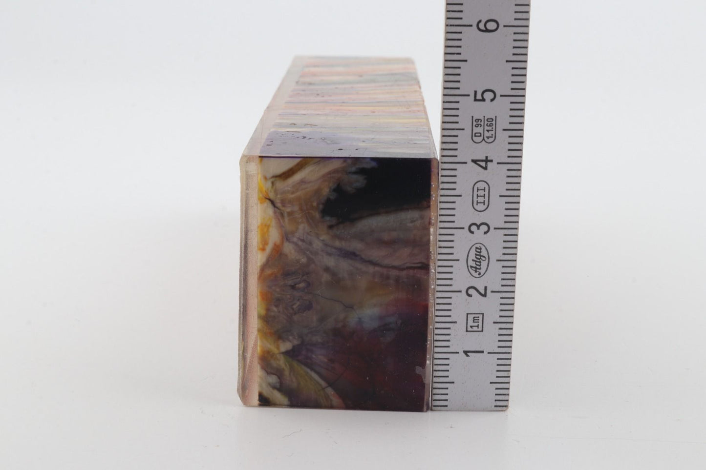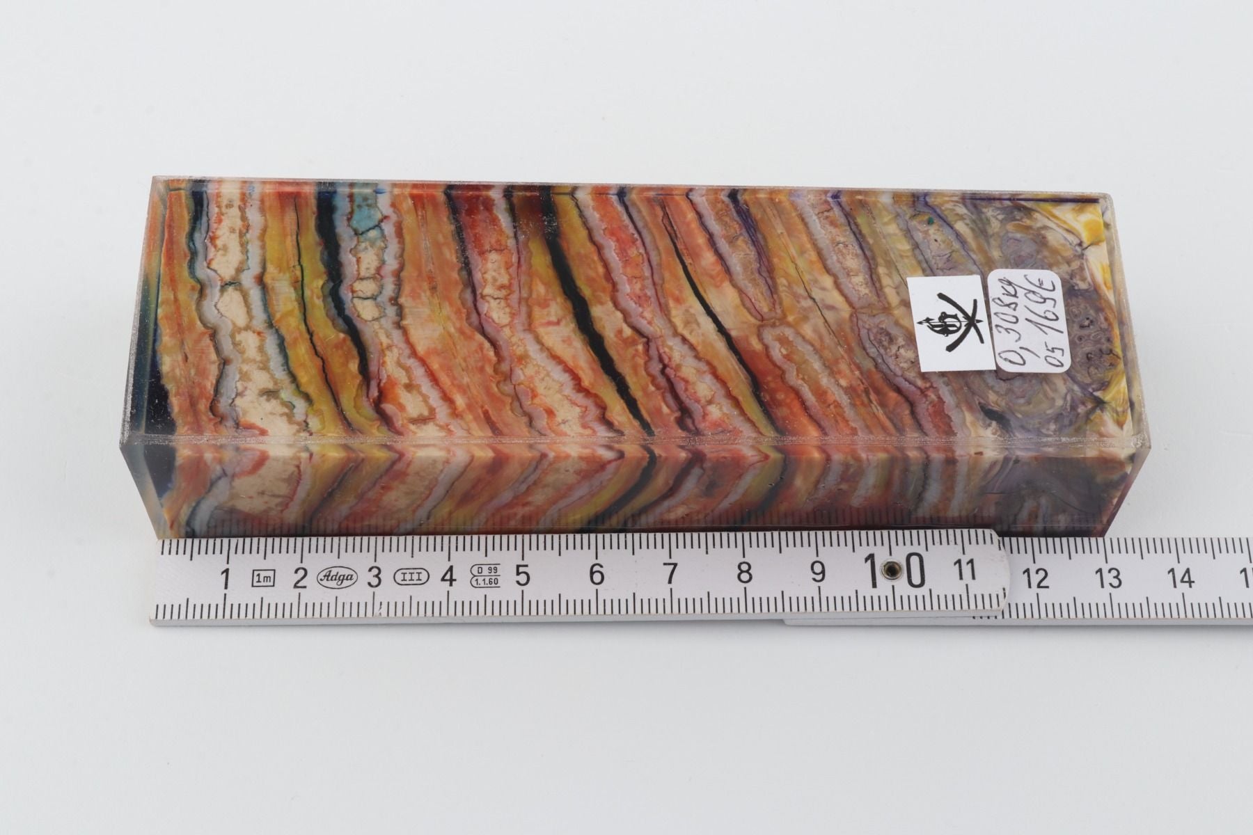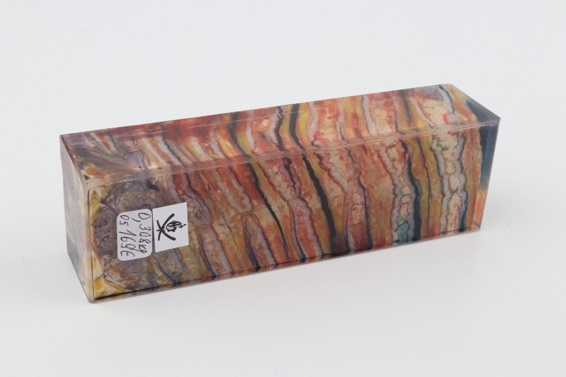 This is a cross-cut, stabilized woolly mammoth molar block (Mammuthus primigenius). This molar block can be precision-cut, drilled, sanded, polished etc. to achieve the desired results. Consistent width and thickness. This block is multicoloured.