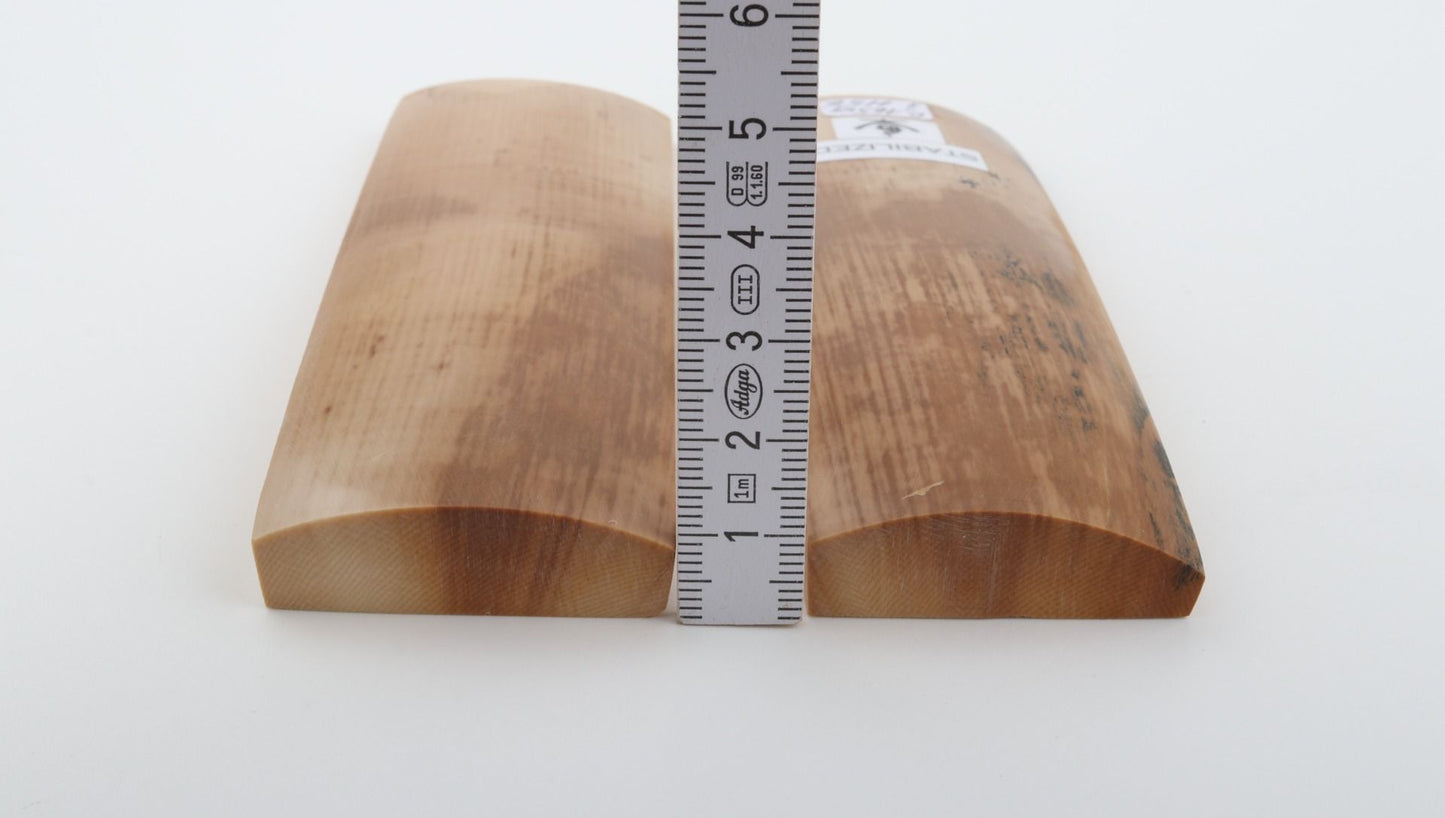 This is a pre-cut pair of stabilised woolly mammoth bark scales (Mammuthus primigenius). These scales can be cut, drilled, sanded, polished etc. to achieve the desired results. Consistent width with reserves on both ends. The colour of the bark is beige.