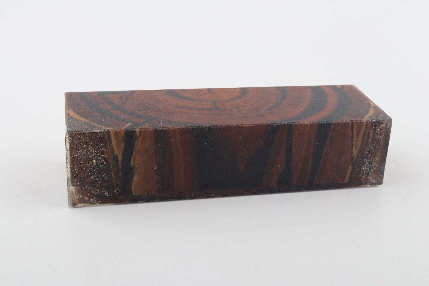 This is a cross-cut stabilised woolly mammoth ivory block (Mammuthus primigenius). This block can be precision-cut, drilled, sanded, polished etc. to achieve the desired results. Consistent width and thickness with reserves on both ends. The colour of the ivory is brown.