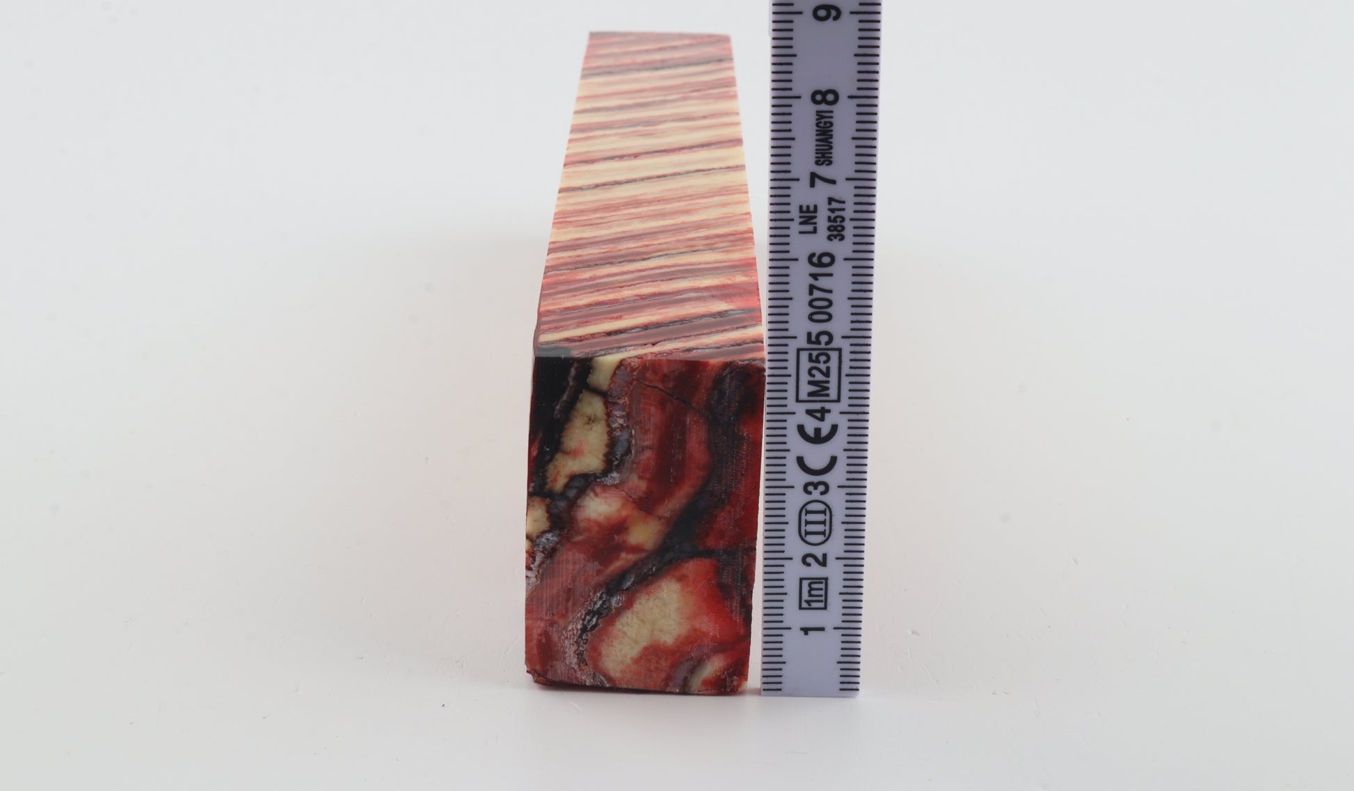This is a large, cross-cut, stabilized woolly mammoth molar block (Mammuthus primigenius). This molar block can be precision-cut, drilled, sanded, polished etc. to achieve the desired results. Consistent width and thickness. The colour of the molar is a mix of creme, red and pink.