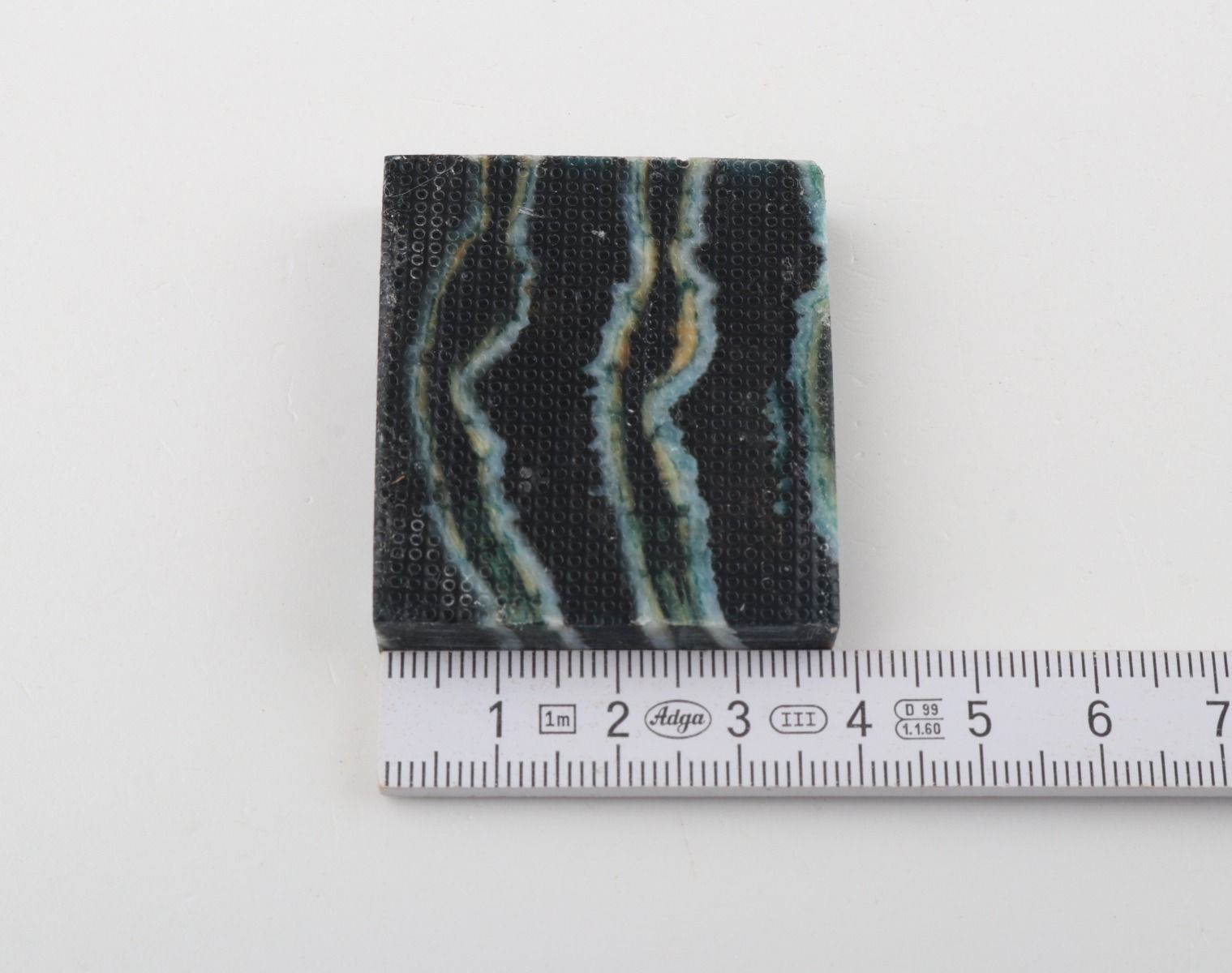 This is a cross-cut, stabilised woolly mammoth molar piece (Mammuthus primigenius). This square block can be precision-cut, drilled, sanded, polished etc. to achieve the desired results. Consistent width and thickness. The colour of the molar is green-black.