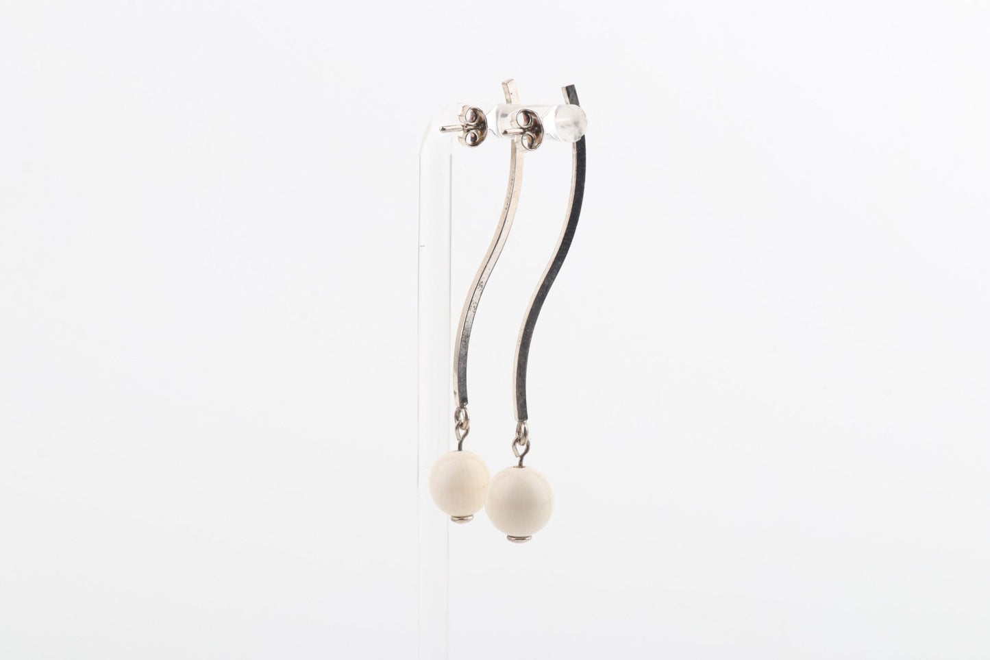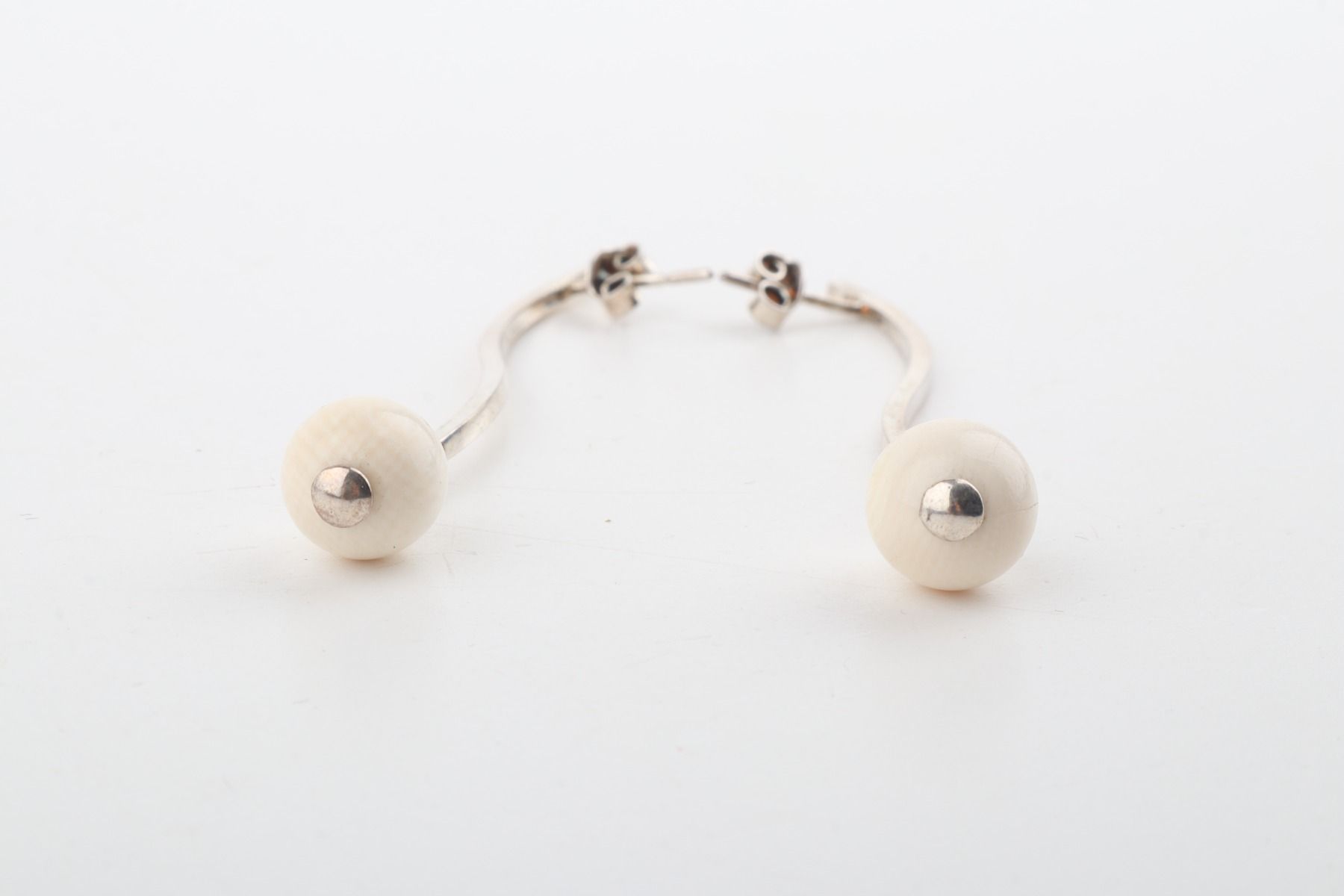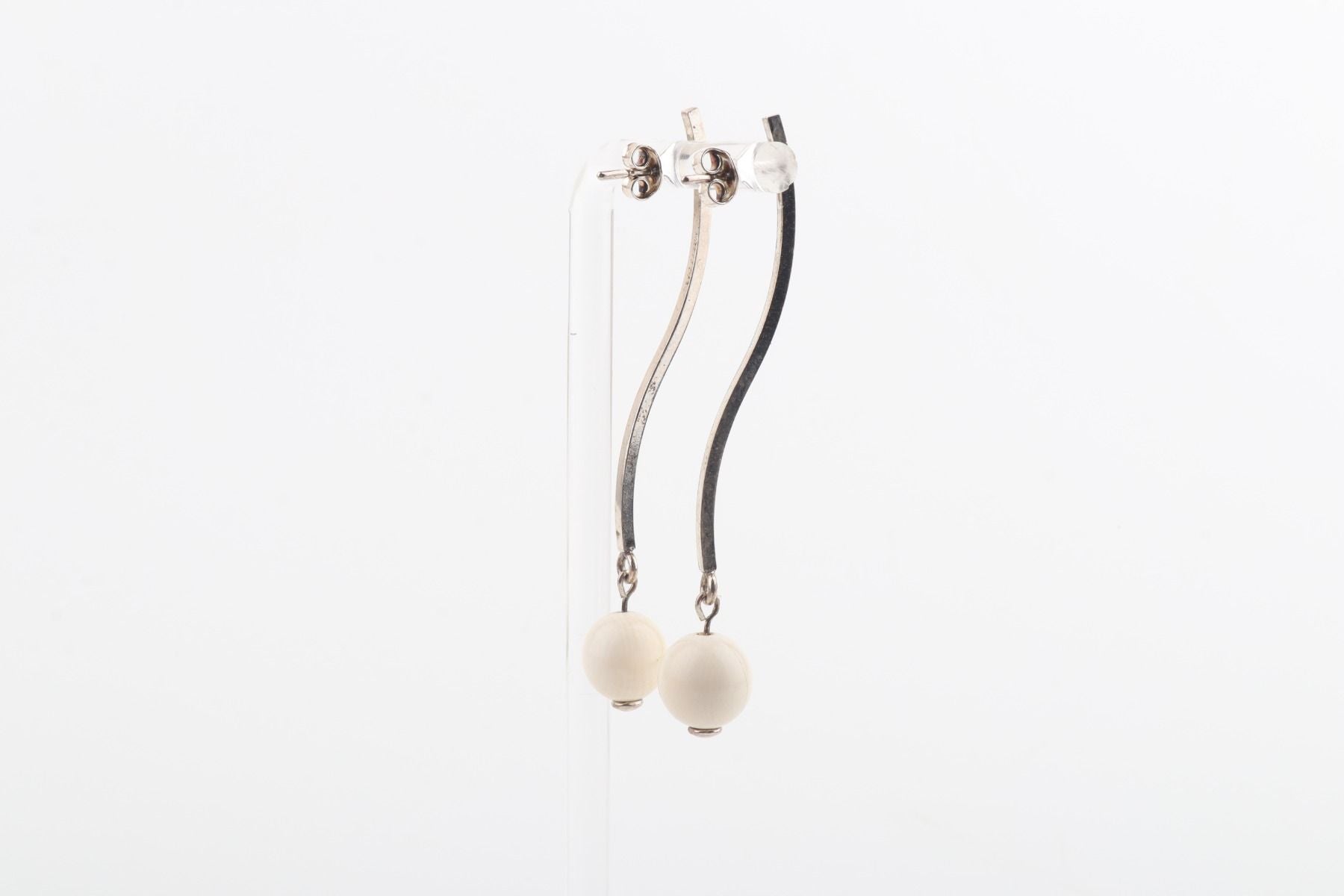 Two mini mammoth ivory pearls (Mammuthus primigenius) in 8 mm diameter are floating on a wave of sterling silver. These sleek handcrafted stud earrings will add a little twist to your elegant look.
