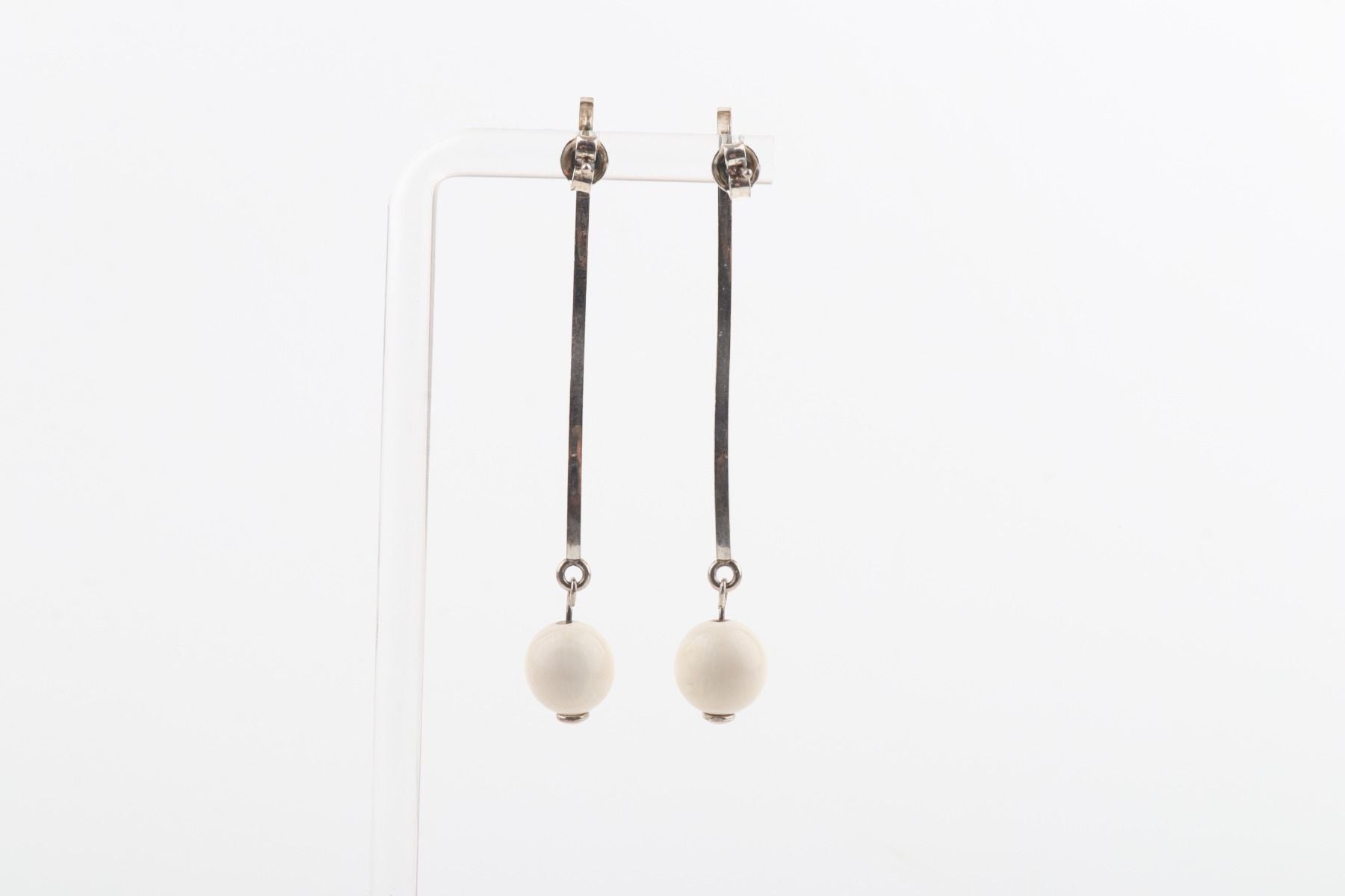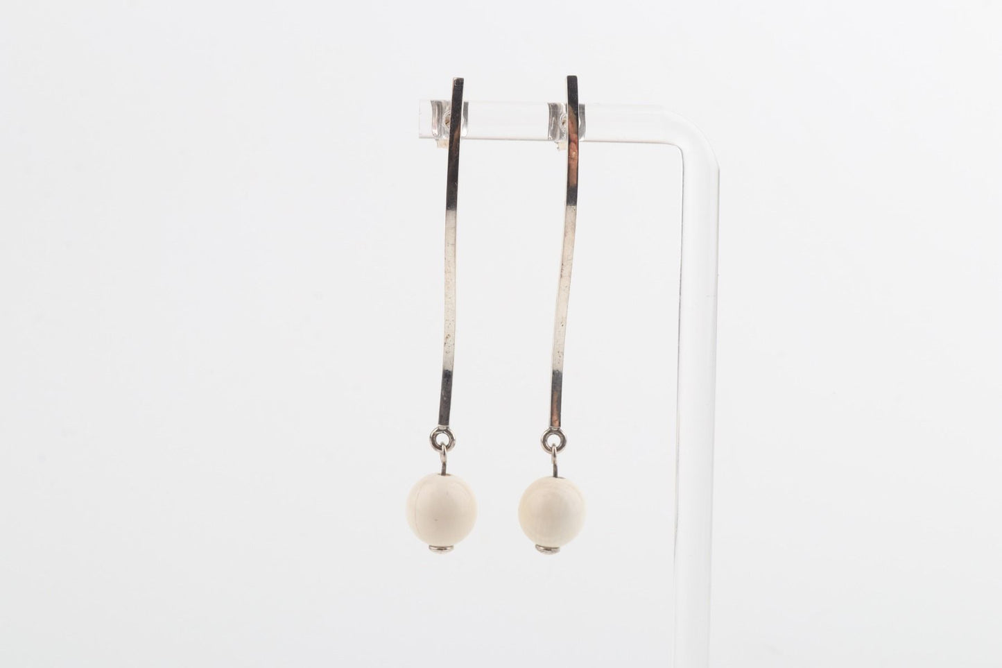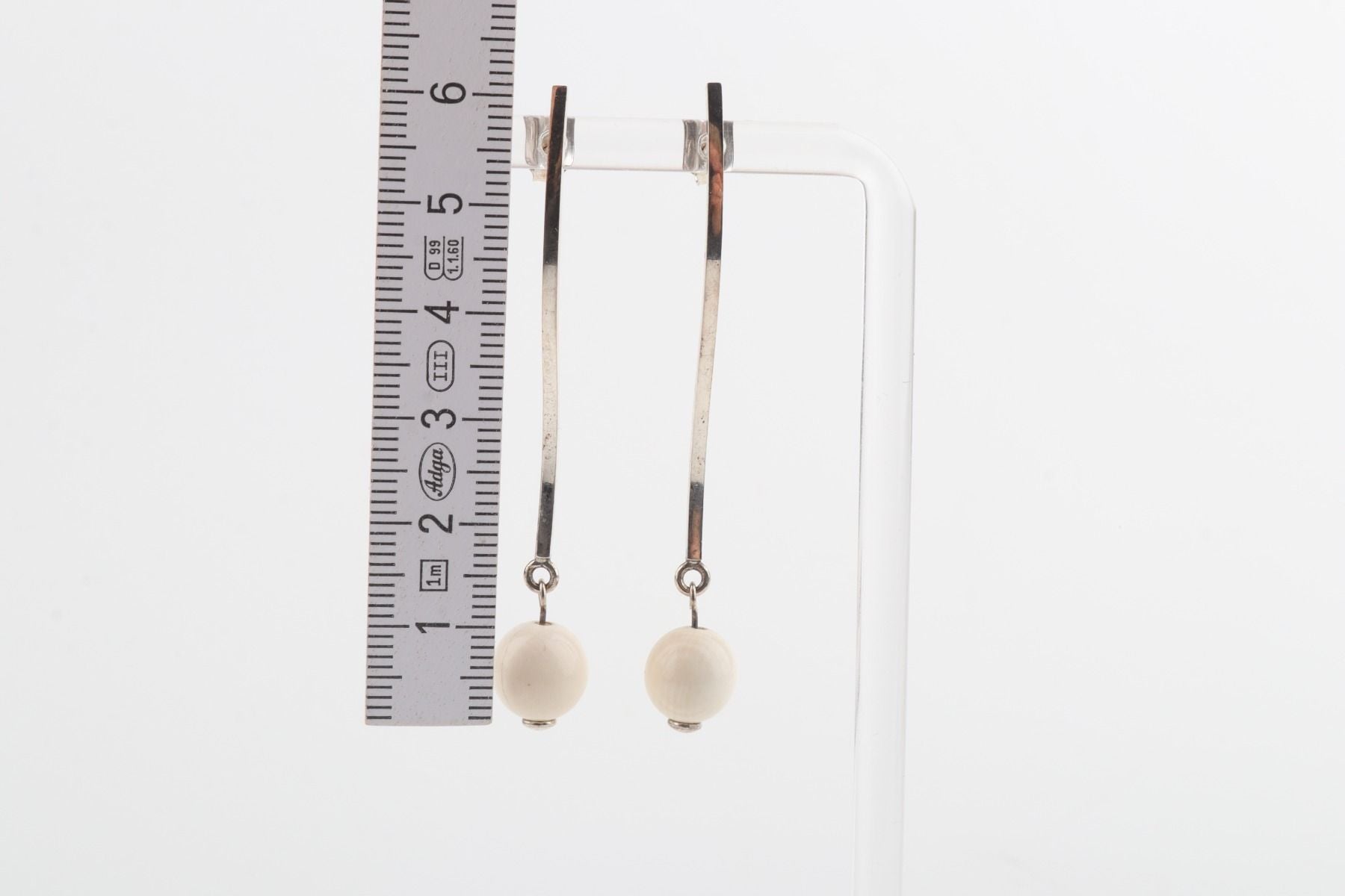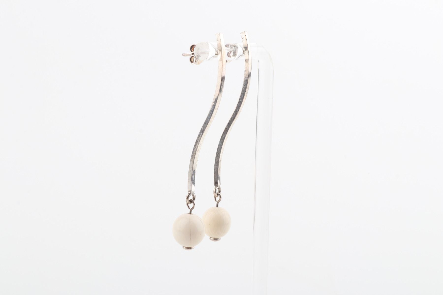Two mini mammoth ivory pearls (Mammuthus primigenius) in 8 mm diameter are floating on a wave of sterling silver. These sleek handcrafted stud earrings will add a little twist to your elegant look.