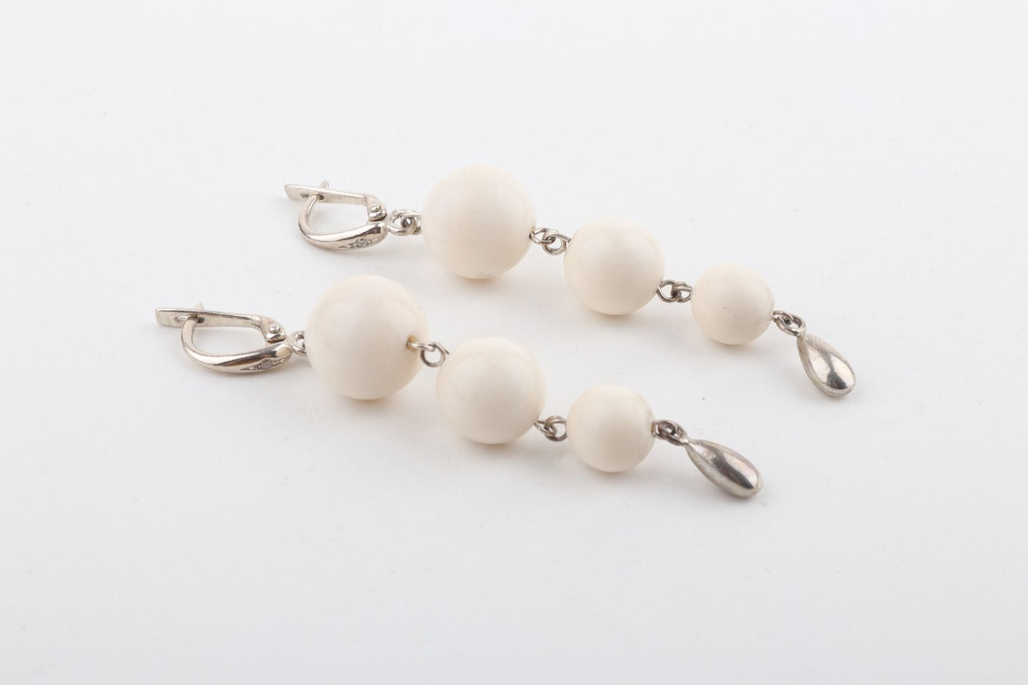 In these earrings, 925 sterling silver leverback base is complemented by three genuine mammoth ivory pearls (Mammuthus primigenius) and a small zirconia stone. A very chic statement.