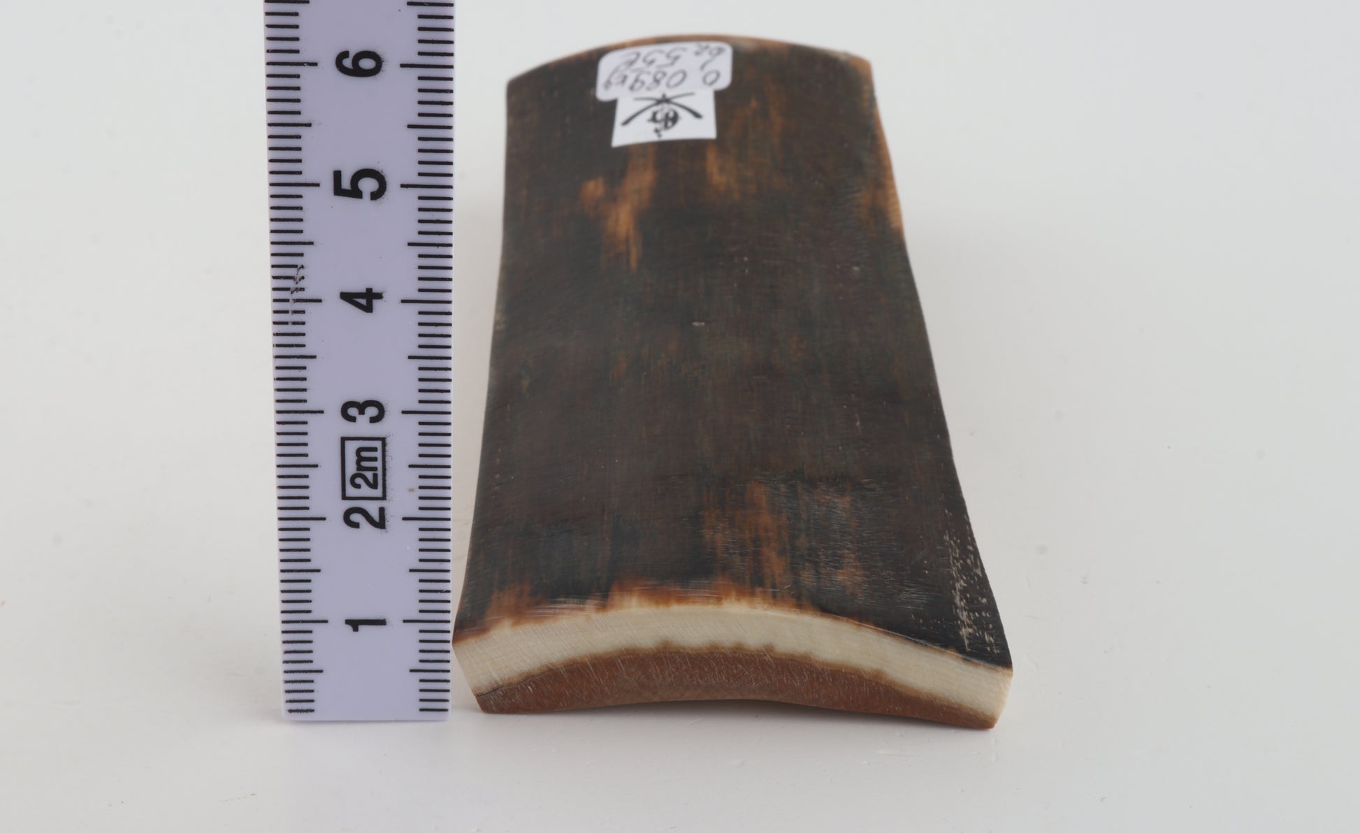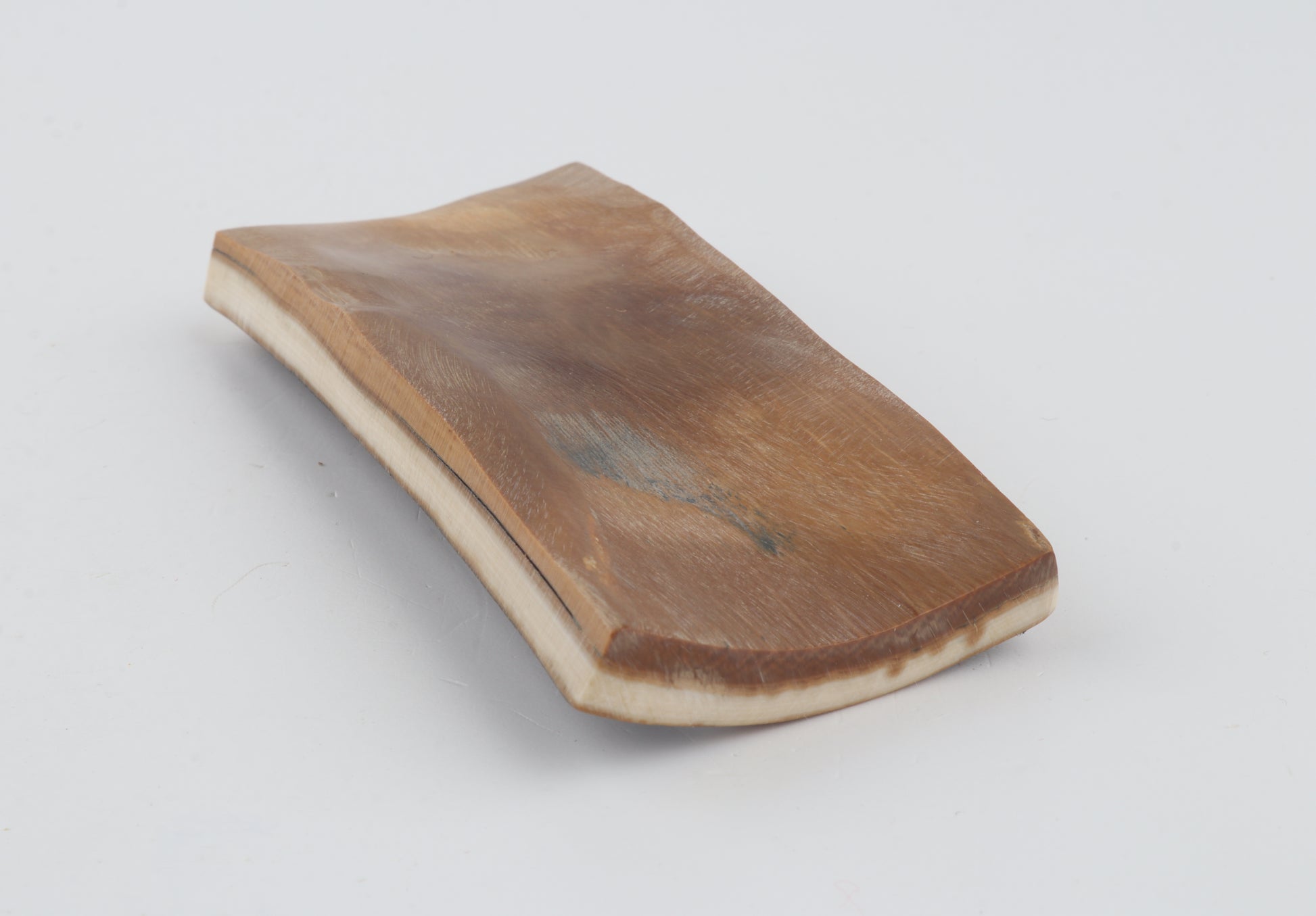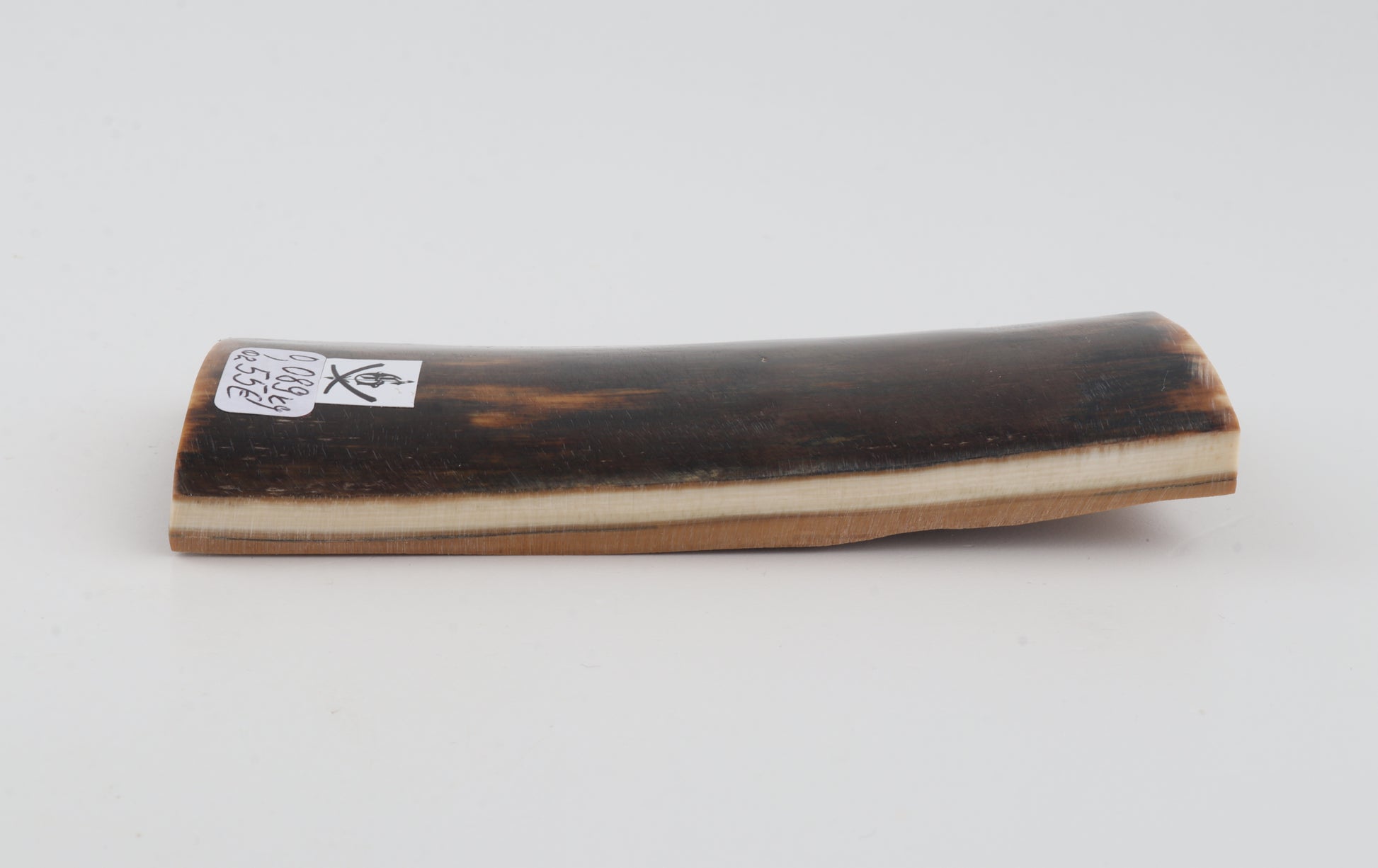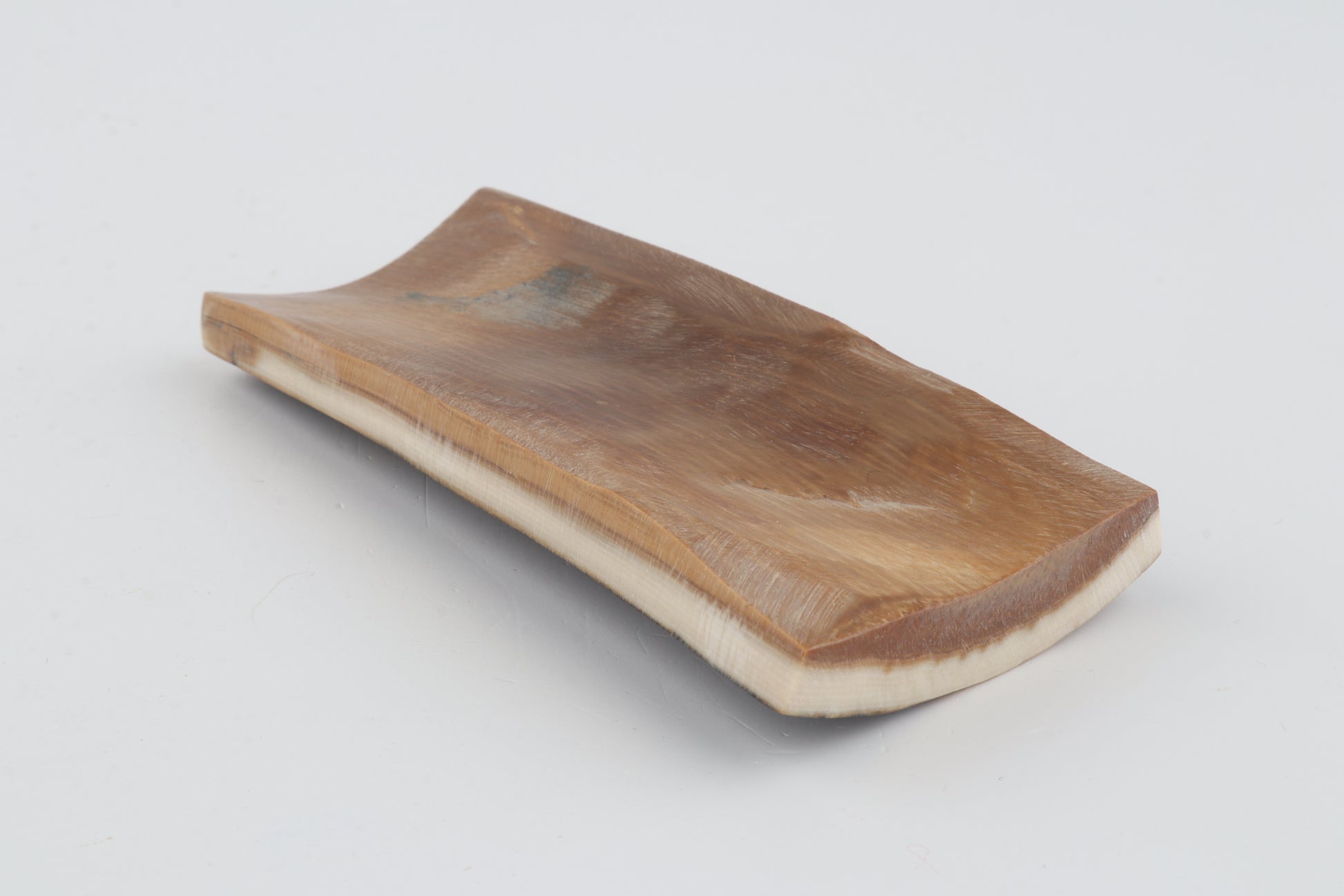This is a premium-quality piece of Siberian woolly mammoth bark (Mammuthus primigenius). The ivory is naturally dense and solid, despite one small crack on one side. Tapered width: One cross-cut section is slightly wider than the other. Consistent thickness with reserves on both ends. The natural colour of the bark is brown.