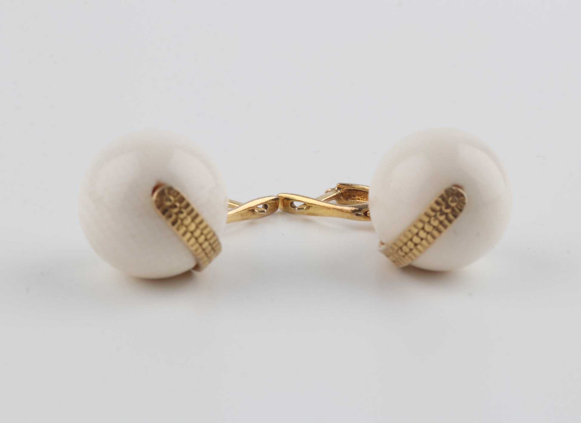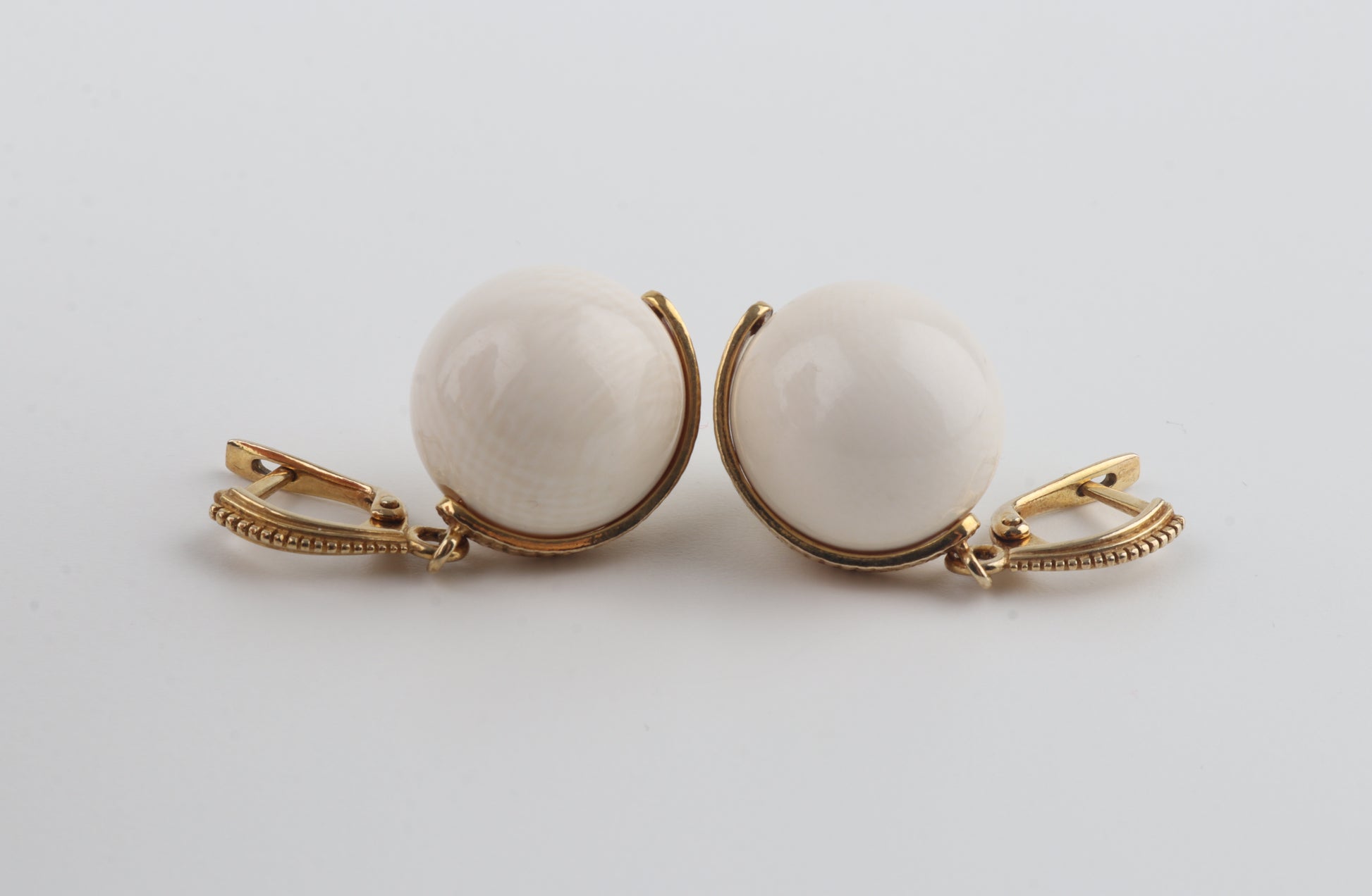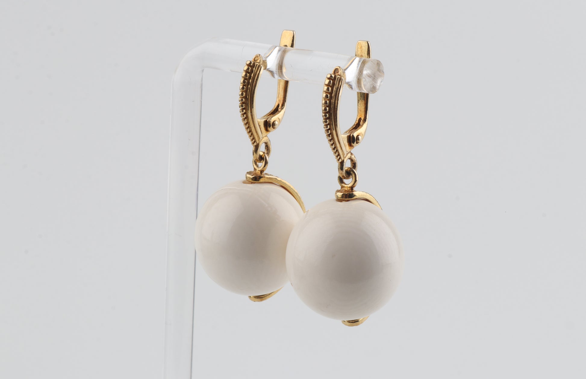 The ivory beads are suspended from refined gold-plated sterling silver leverback fittings. Their balanced proportions and minimalist silhouette make them effortlessly versatile and equally suited for everyday elegance or elevated evening styling.