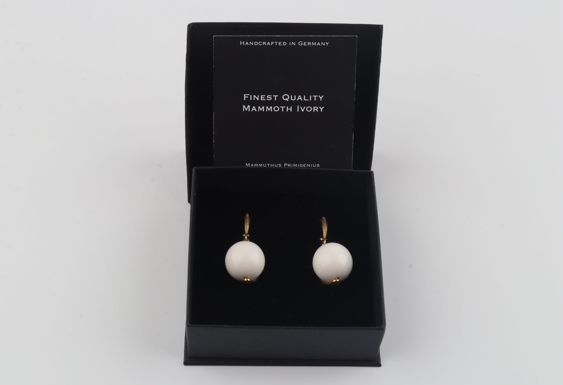 These elegant drop earrings feature perfectly rounded beads carved from genuine mammoth ivory (Mammuthus primigenius), celebrated for its rare origin and naturally warm, creamy tone. The size of the beads highlights the organic beauty and subtle grain unique to this prehistoric material.