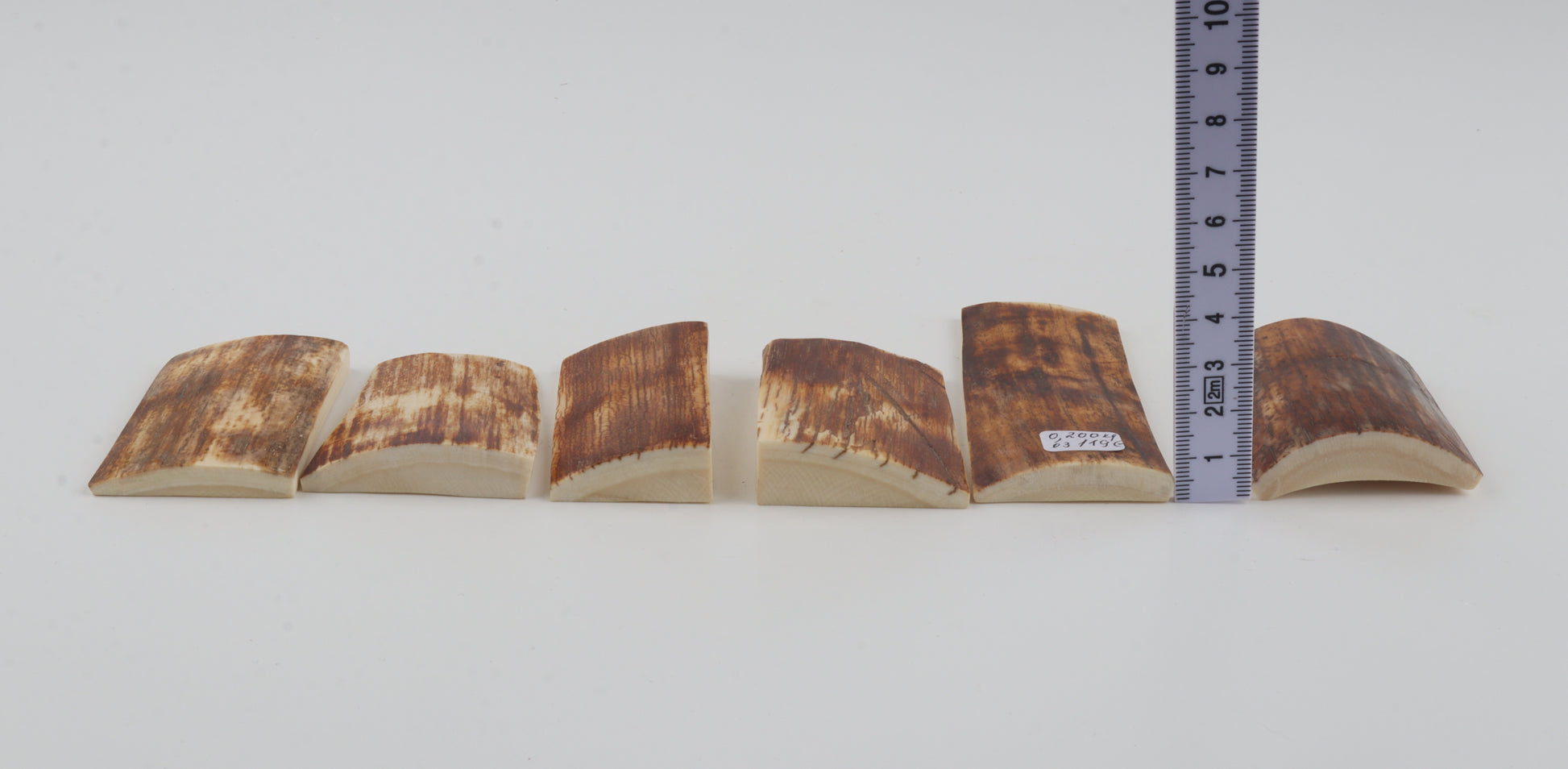 This lot consists of 6 Siberian woolly mammoth bark pieces (Mammuthus primigenius). Each piece was hand-selected to form a matching lot. Please carefully look at the pictures for precise dimensions. The colour of the bark is a mix of brown and orange.