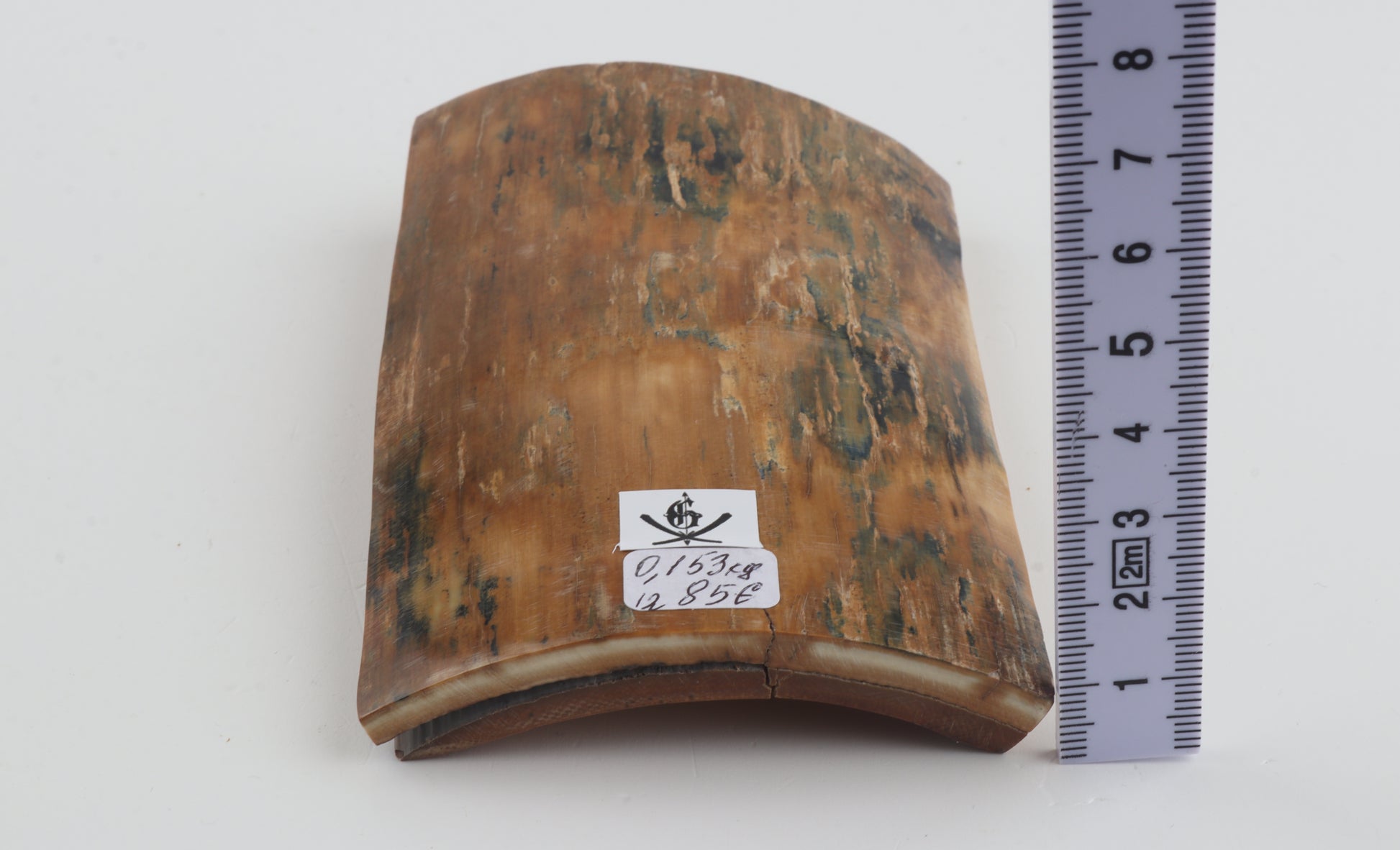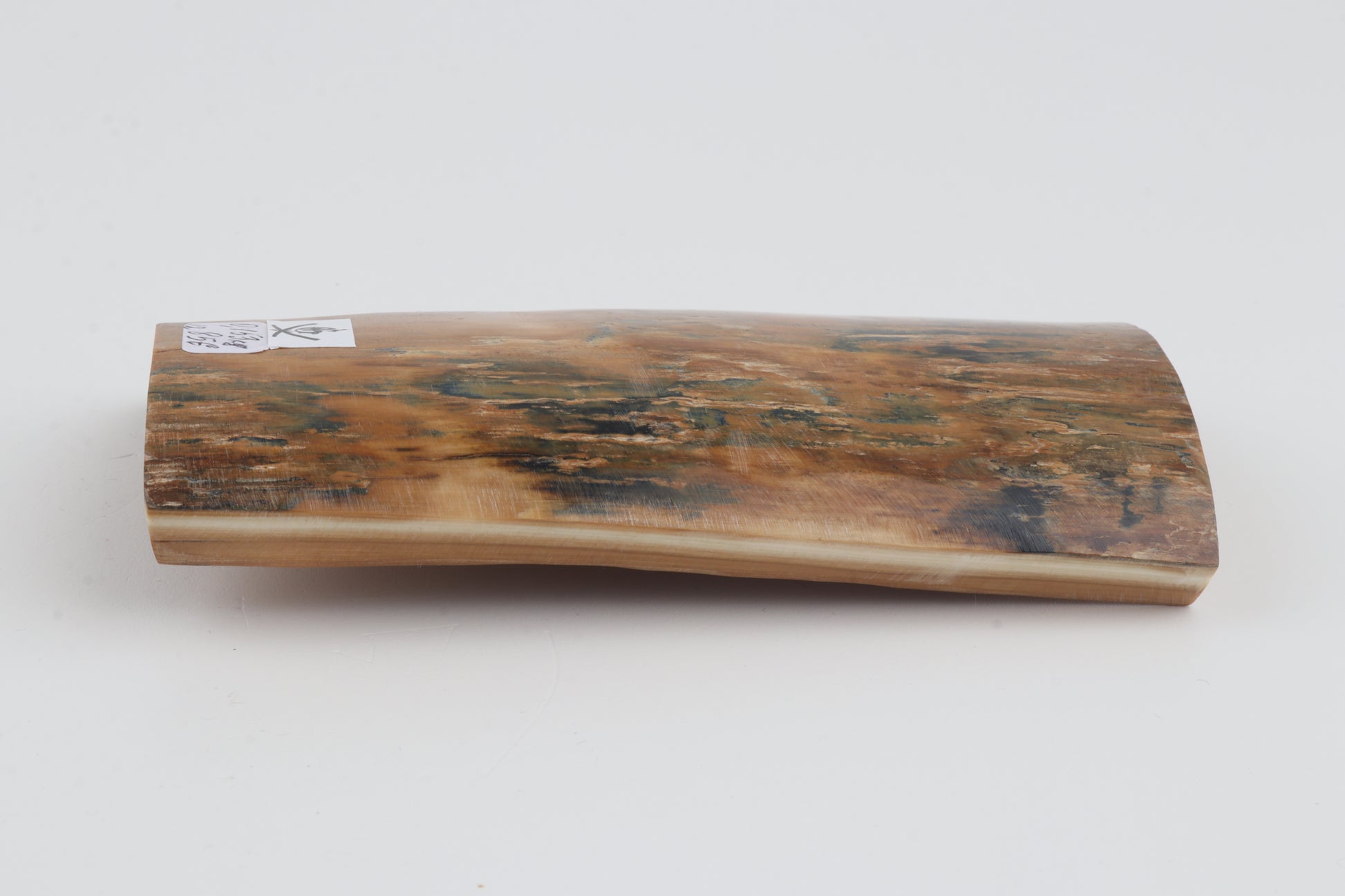 This is a premium-quality piece of Siberian woolly mammoth bark (Mammuthus primigenius). The ivory is naturally dense and solid, despite some small cracks. Consistent width and thickness with reserves on both ends. The natural color of the bark is orange-blue.