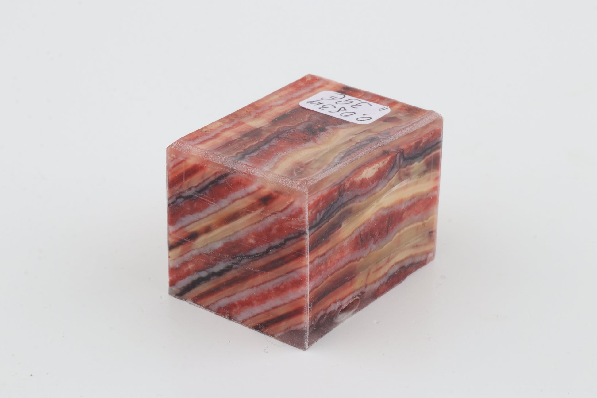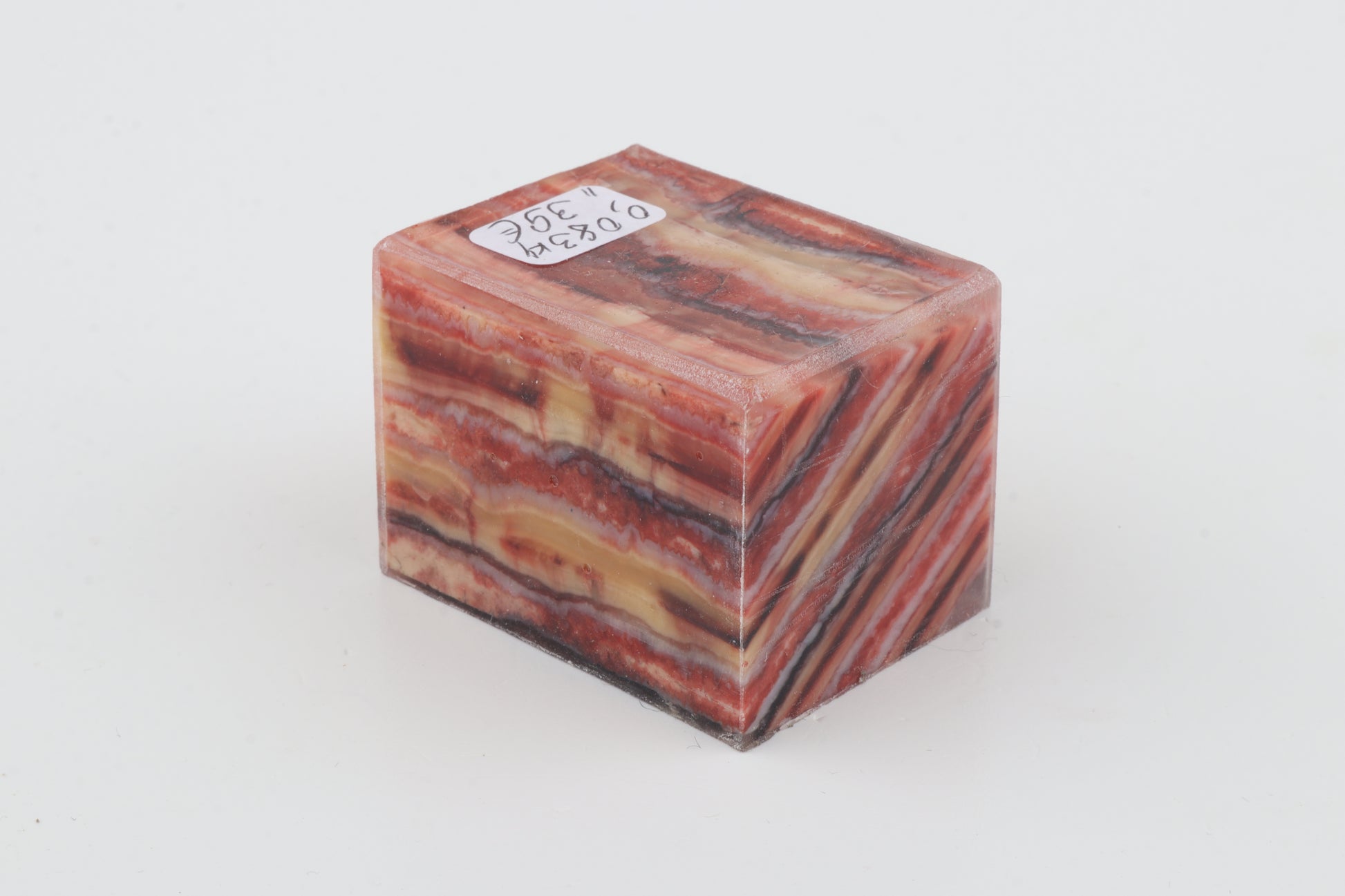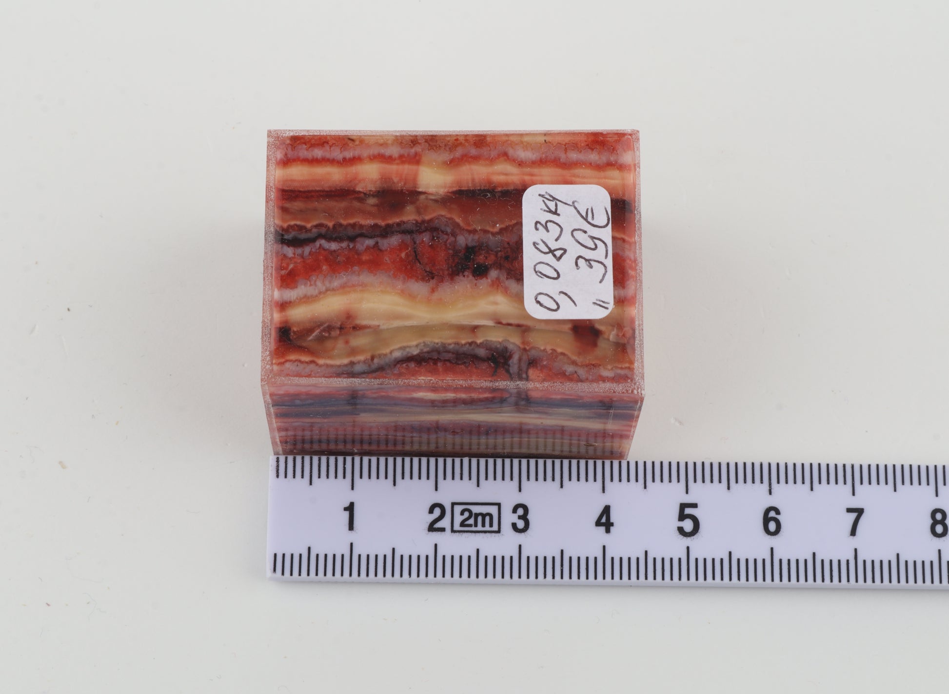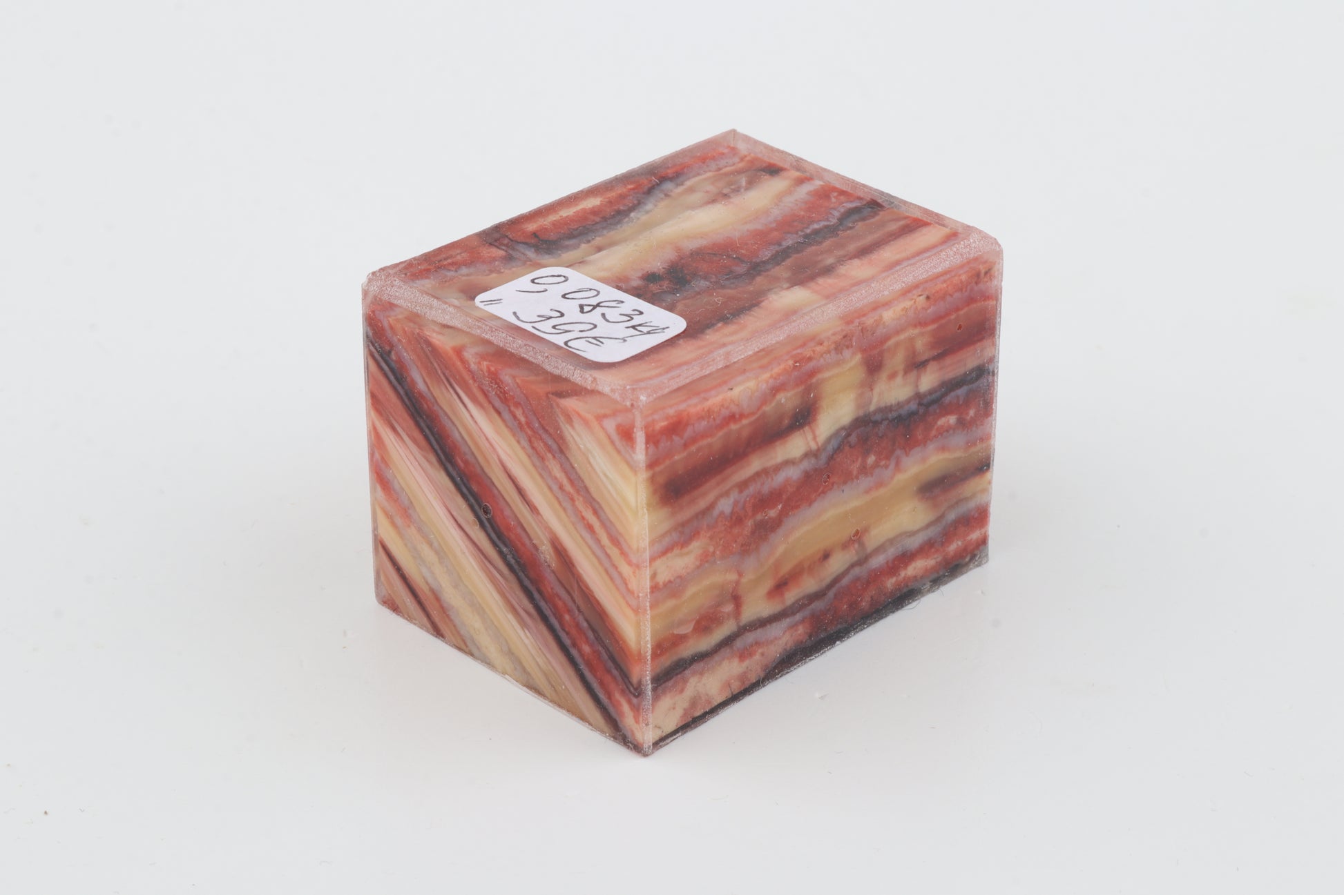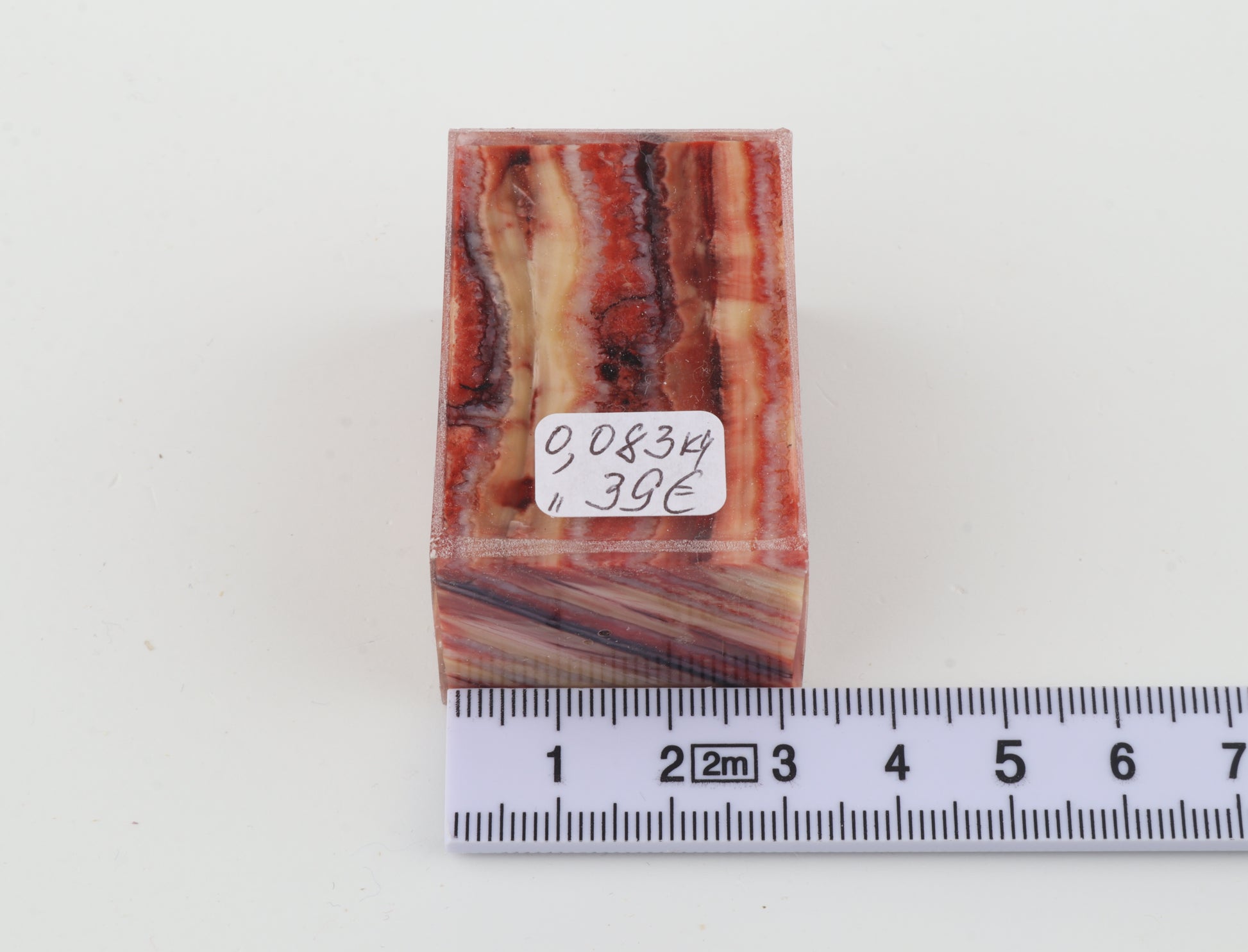 This is a cross-cut, stabilised woolly mammoth molar piece (Mammuthus primigenius). This rectangular block can be precision-cut, drilled, sanded, polished etc. to achieve the desired results. Consistent width and thickness. The colour of the molar is a mix of yellow, pink and red.
