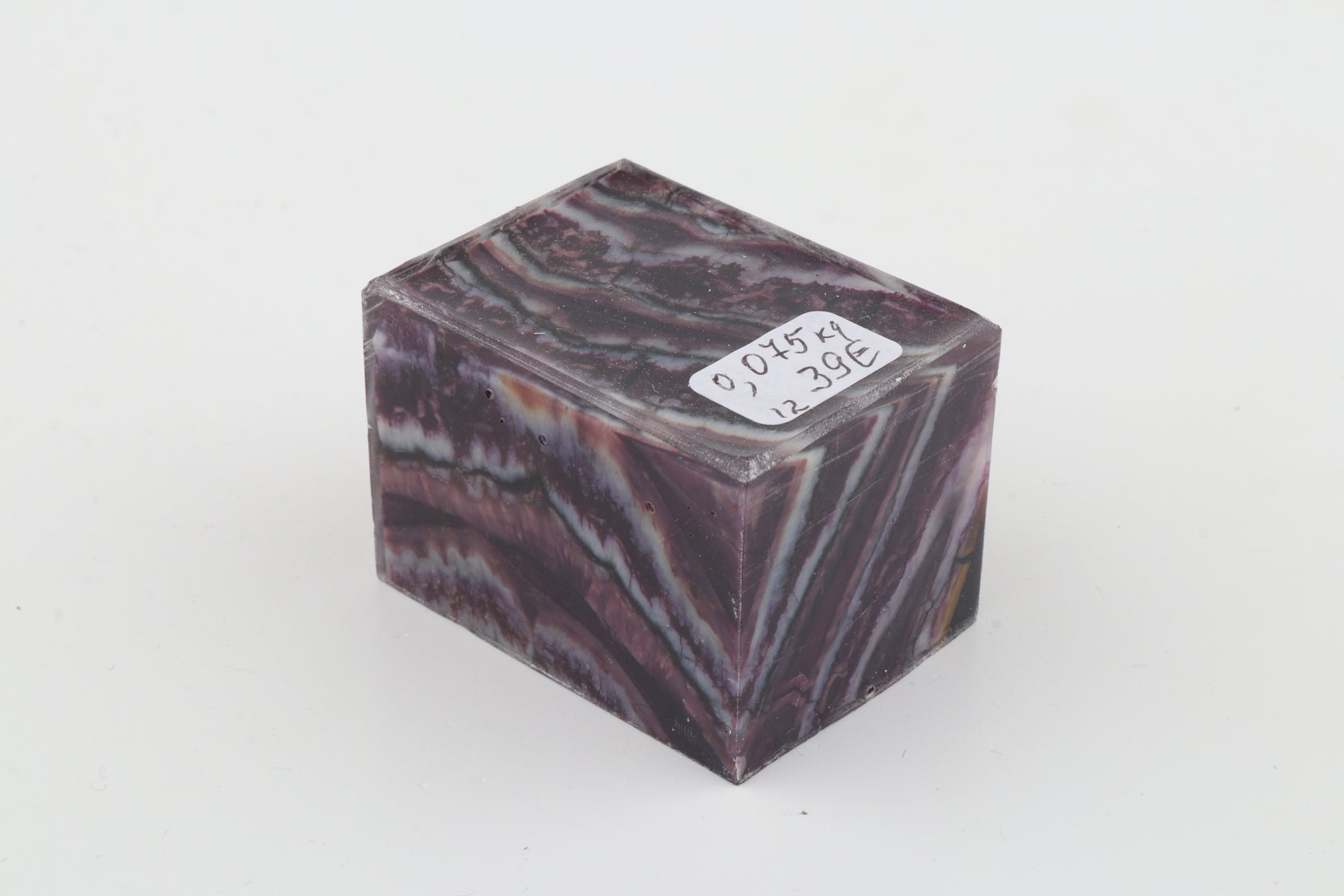 This is a cross-cut, stabilized woolly mammoth molar piece (Mammuthus primigenius). This rectangular block can be precision-cut, drilled, sanded, polished etc. to achieve the desired results. Consistent width and thickness. The colour of the molar is purple.
