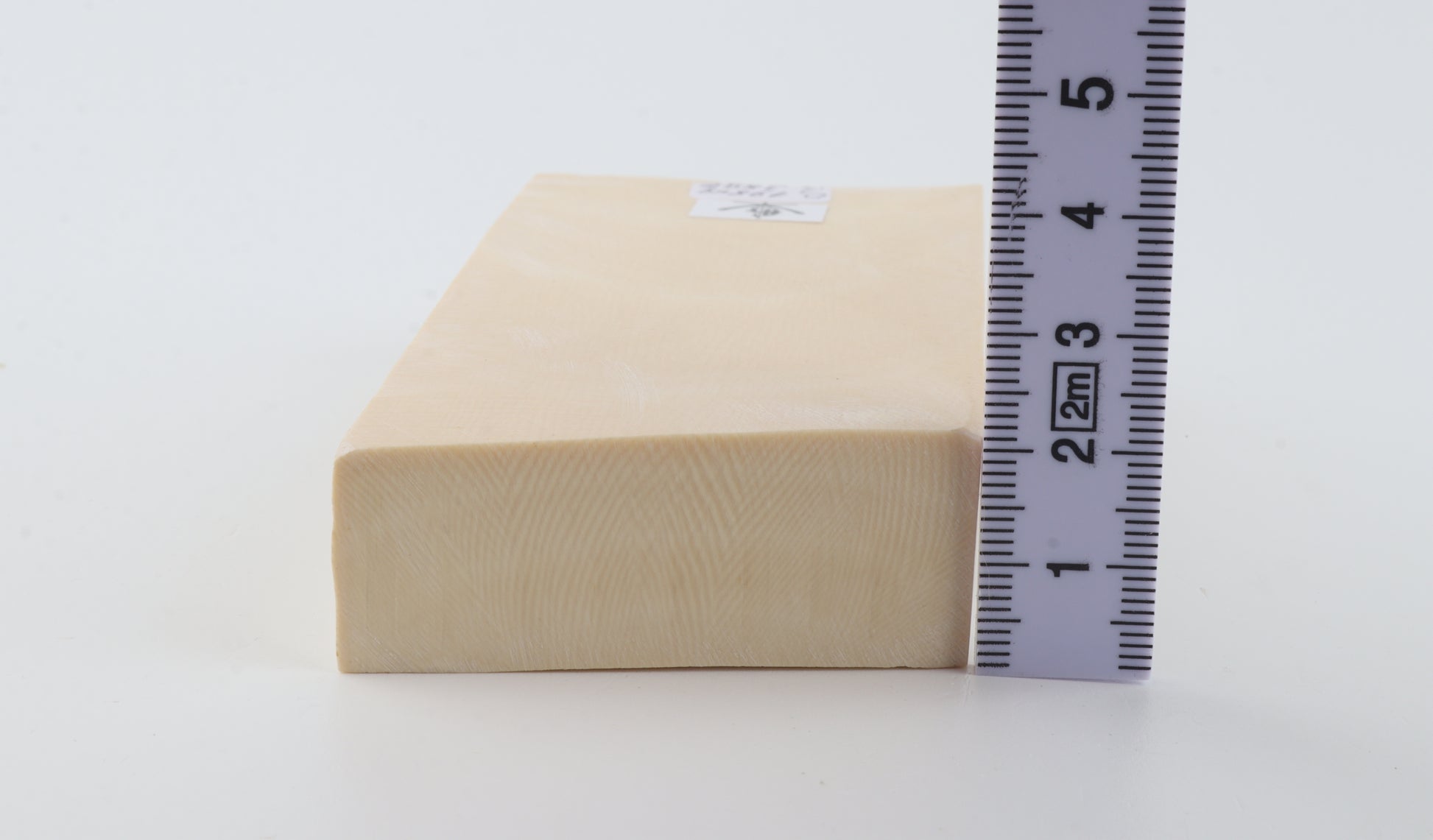 This is an immaculate piece of Siberian woolly mammoth ivory (Mammuthus primigenius). The ivory is naturally dense and solid, without cracks. Consistent width and thickness with reserves on both ends. This piece displays its natural ivory tone.