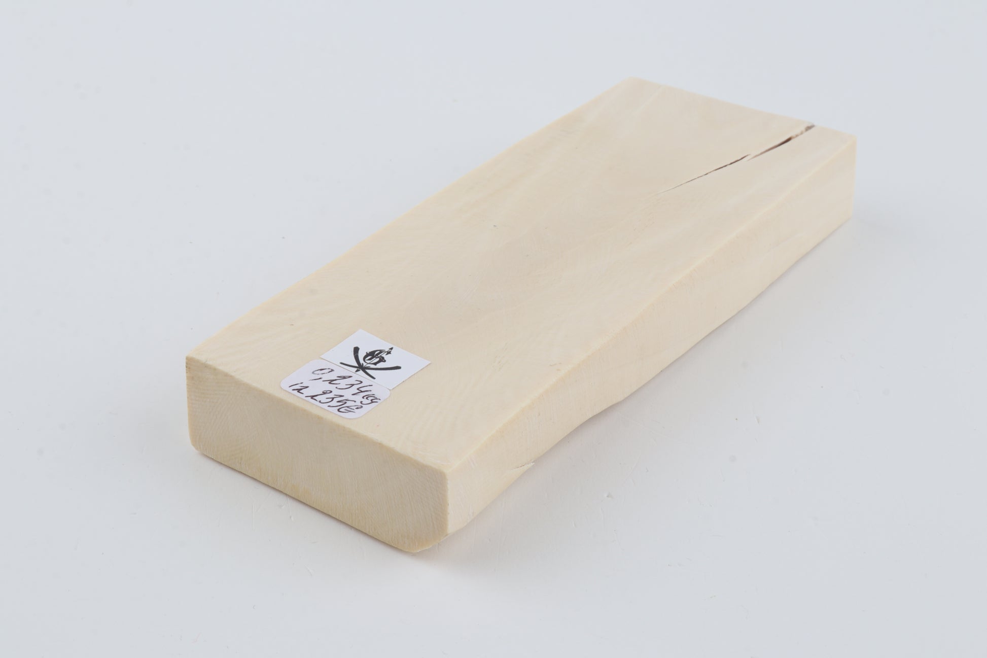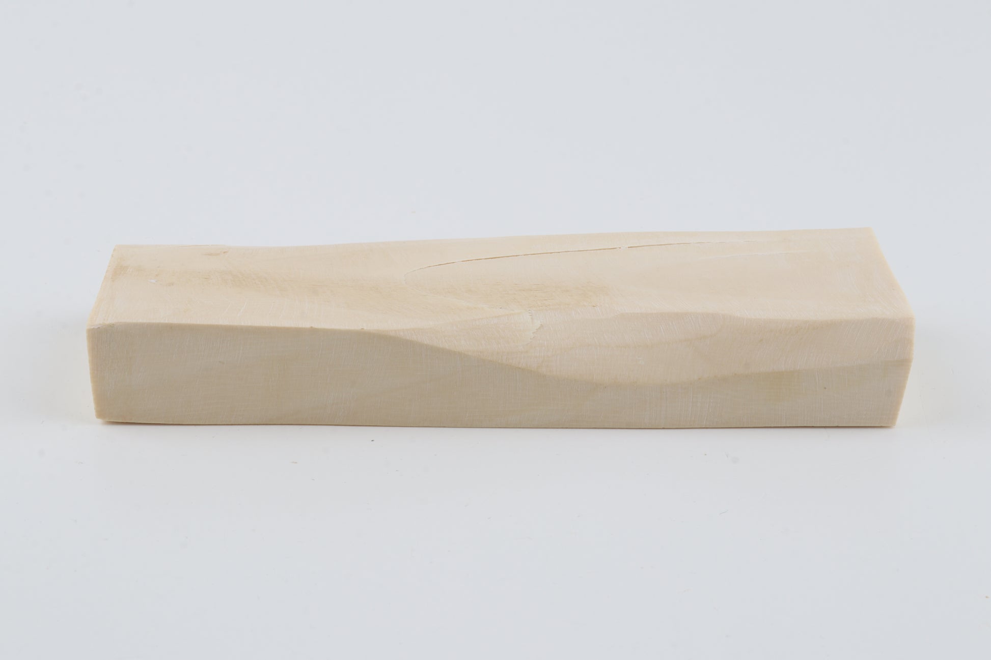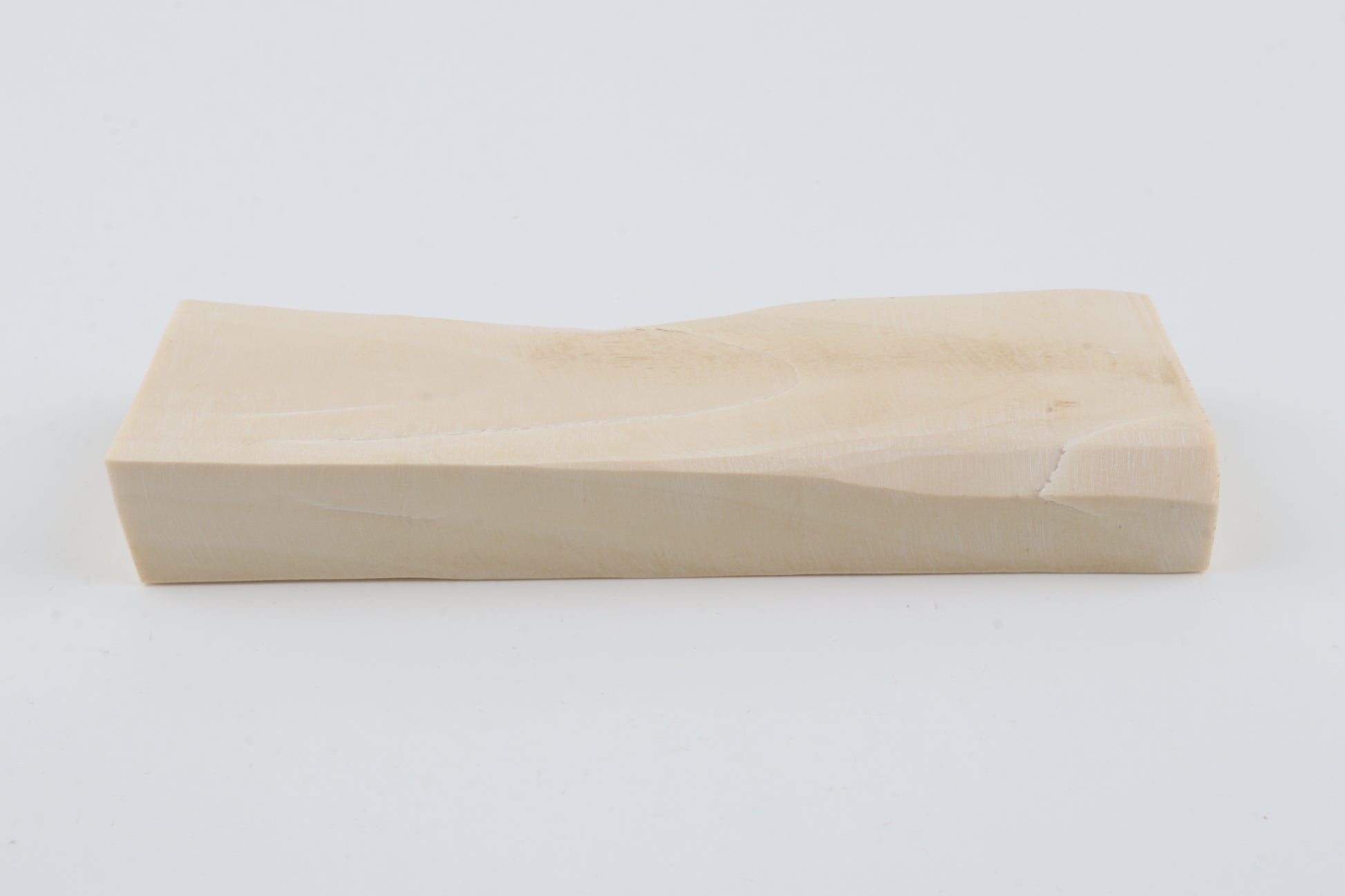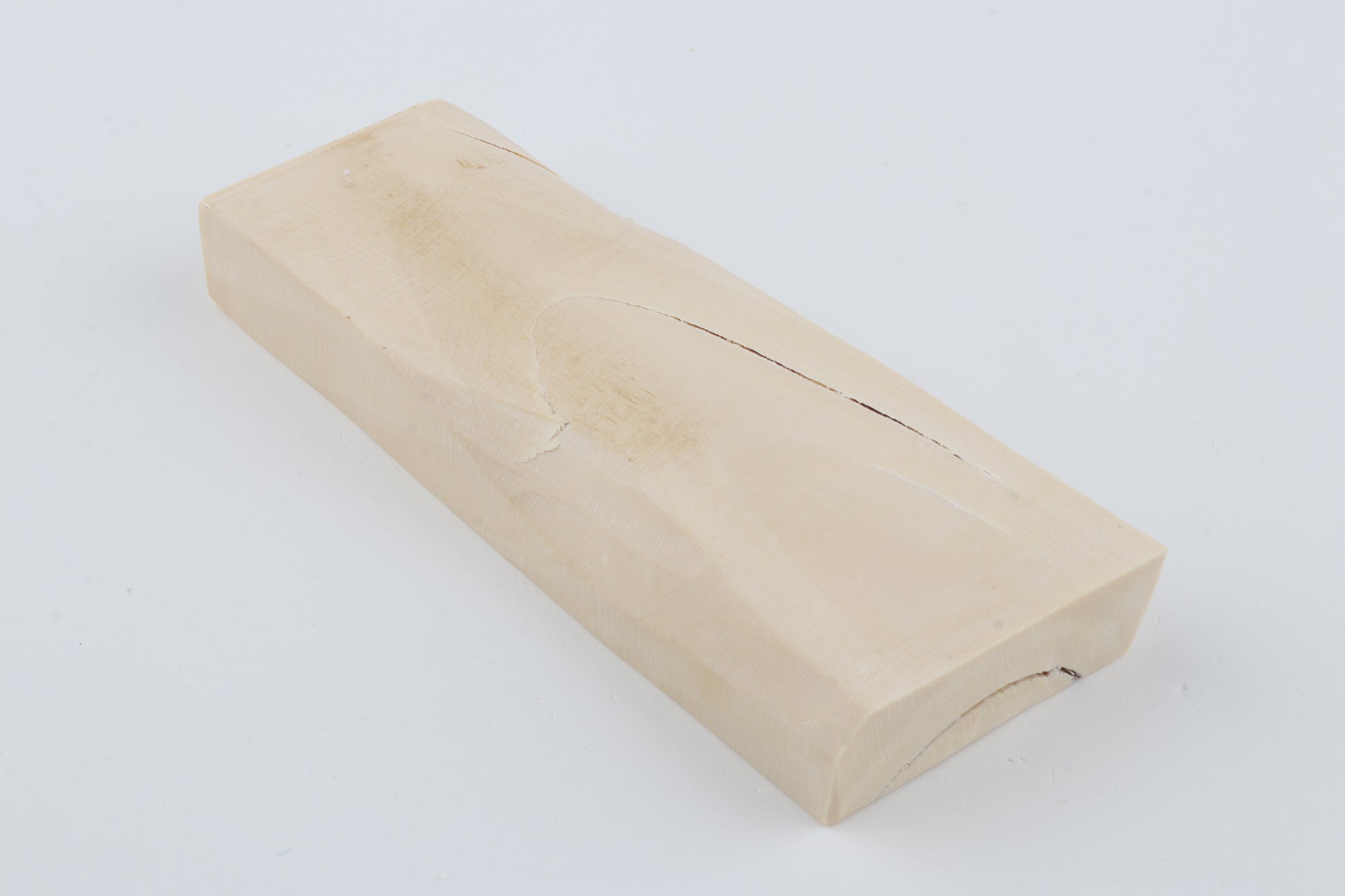 This is a premium-quality piece of Siberian woolly mammoth ivory (Mammuthus primigenius). The ivory is naturally dense and solid, despite some small cracks. Tapered thickness: One cross-cut section is slightly thicker than the other. Consistent width with reserves on both ends. The piece displays its original, natural ivory tone.