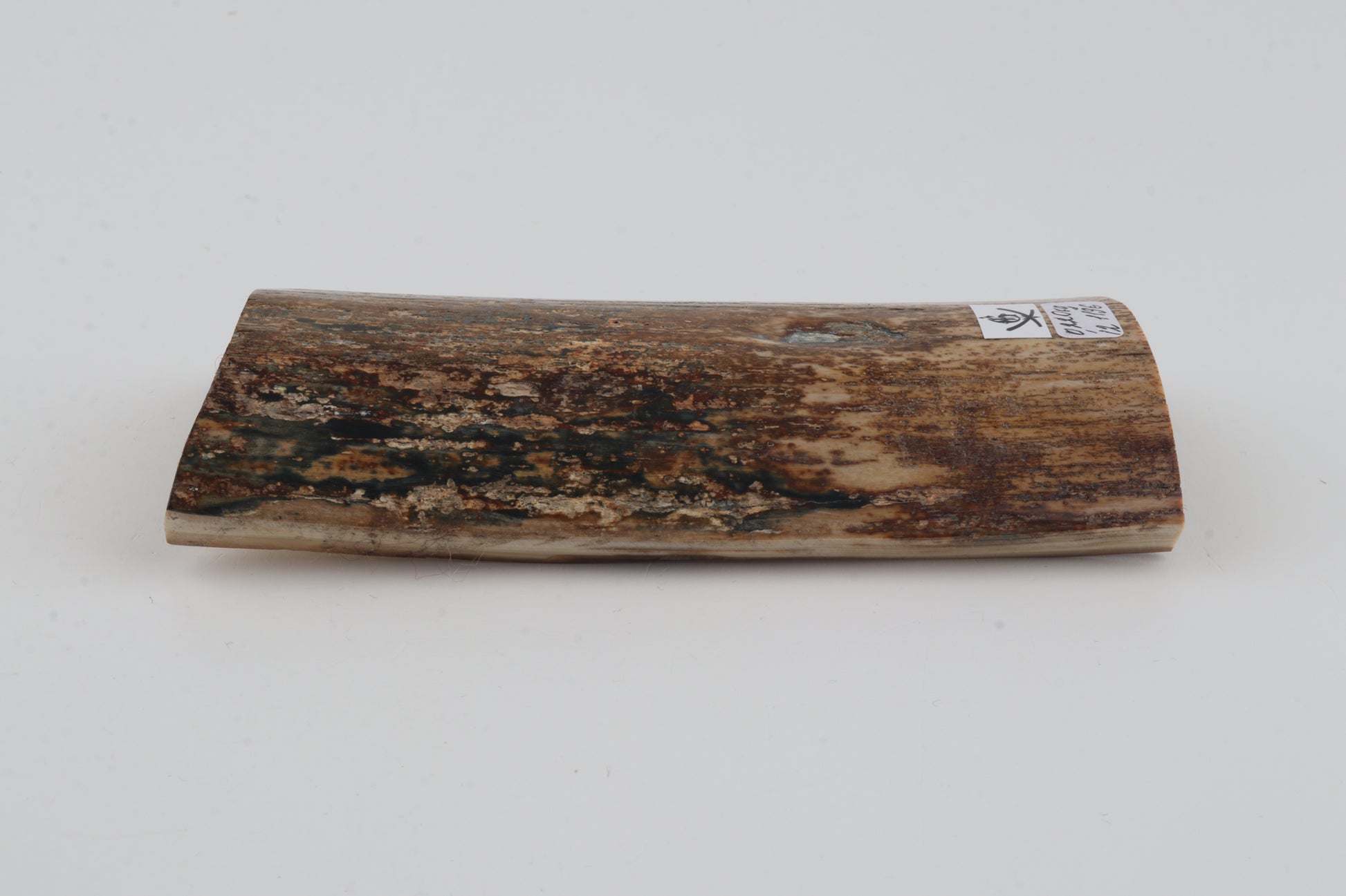 This is a premium-quality piece of Siberian woolly mammoth bark (Mammuthus primigenius). The ivory is naturally dense and solid, despite some small cracks. Tapered thickness: One cross-cut section is thicker than the other. Consistent width with reserves on both ends. The natural colour of the bark is beige-brown.