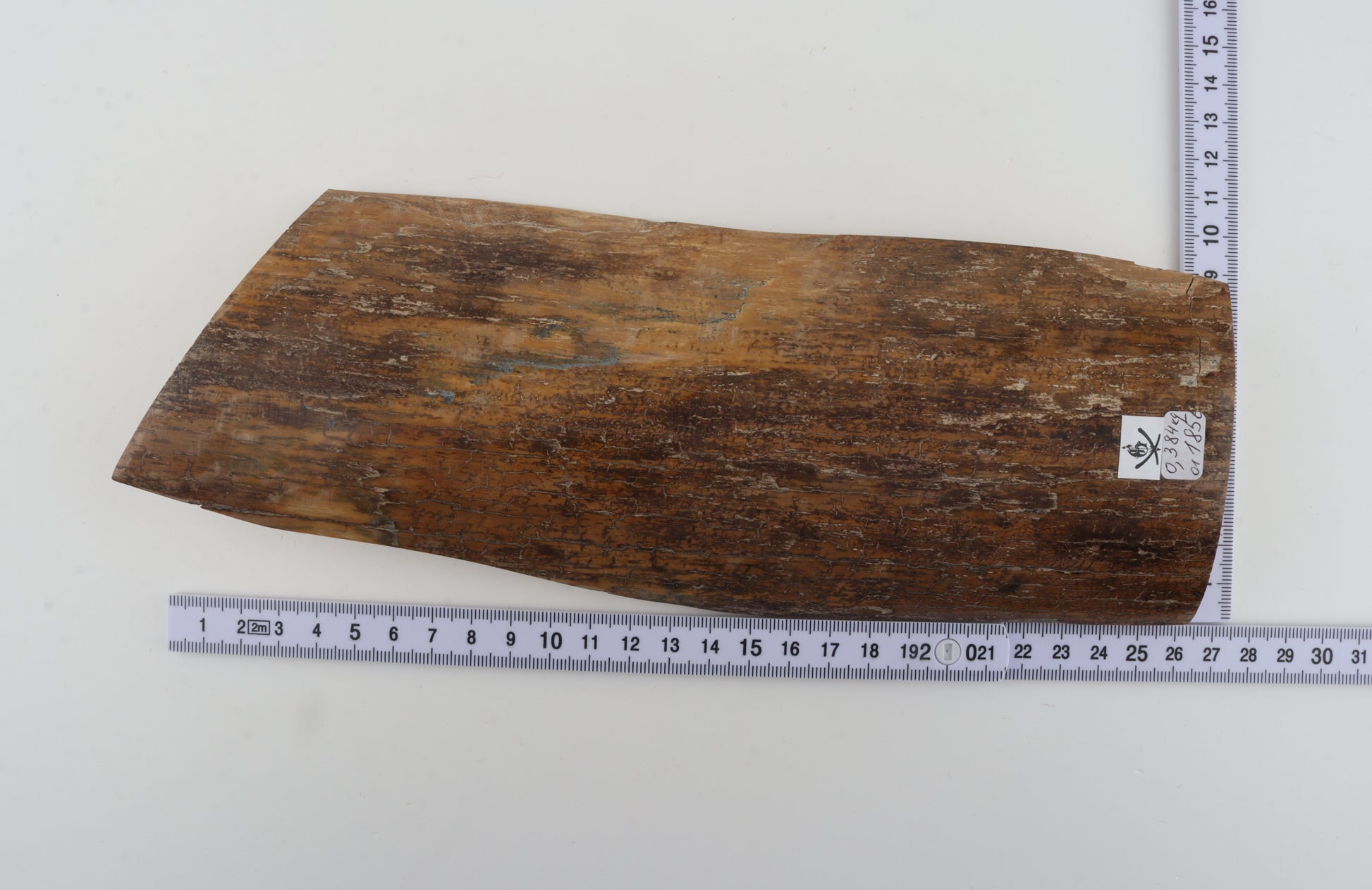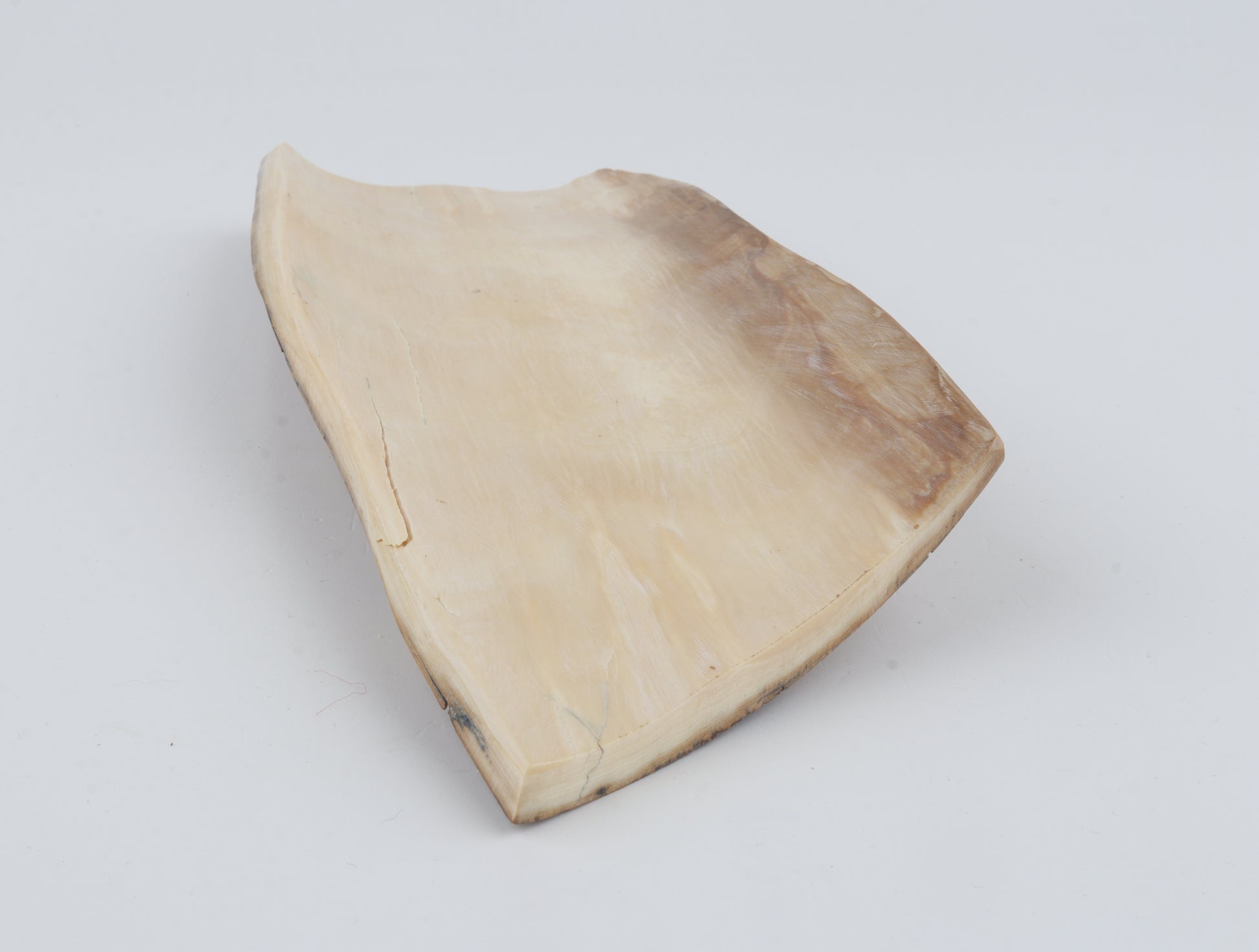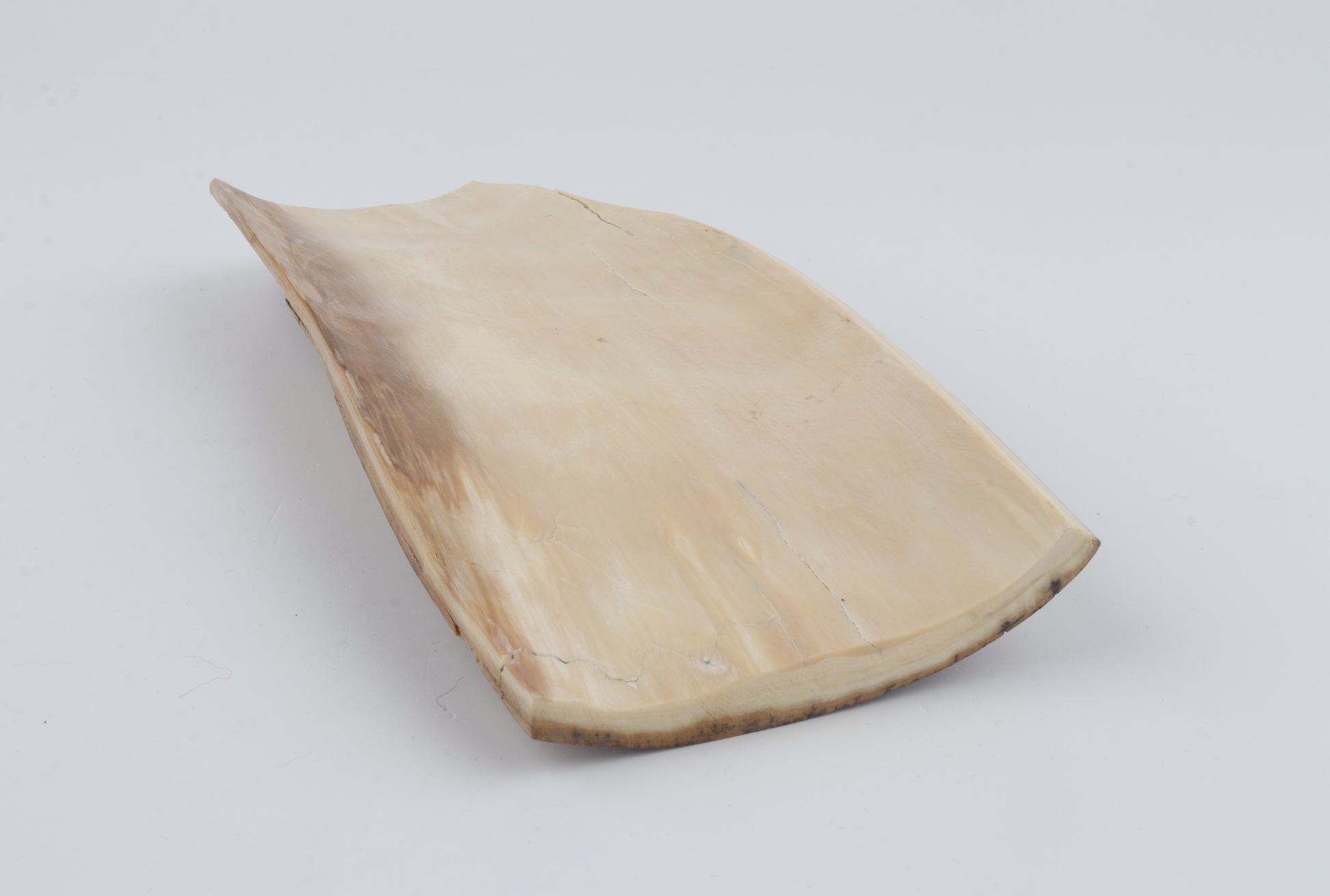 This is a premium-quality piece of Siberian woolly mammoth bark (Mammuthus primigenius). The ivory is naturally dense and solid, despite some small cracks. Tapered width: One cross-cut section is wider than the other. Consistent thickness with reserves on both ends. This piece was cut at multiple angles - please carefully look at the pictures for precise dimensions. The natural colour of the bark is beige.
