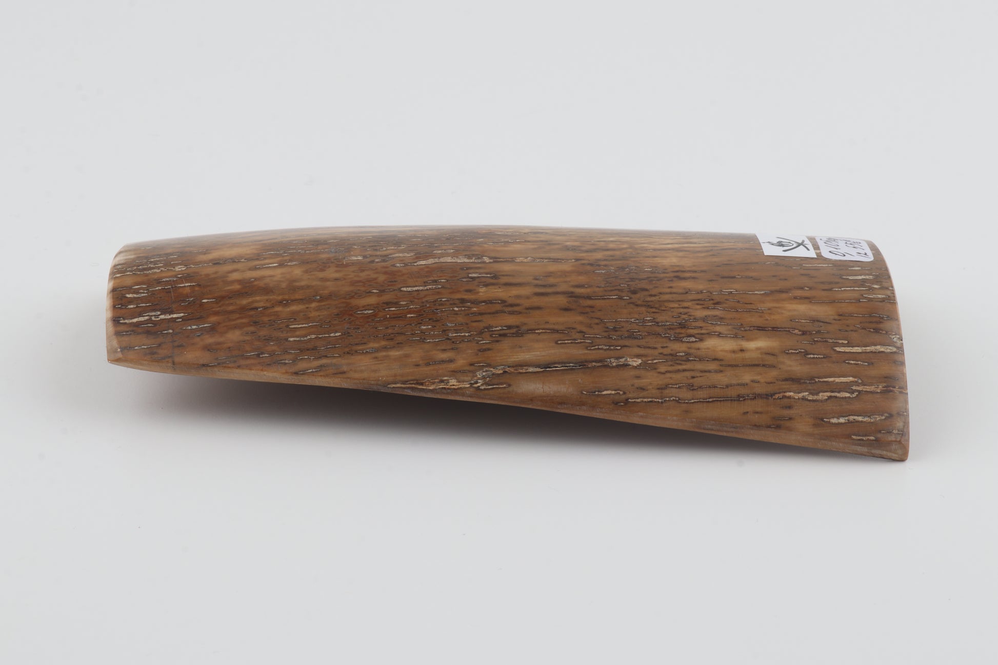 This is a premium-quality piece of Siberian woolly mammoth bark (Mammuthus primigenius). The ivory is naturally dense and solid, without cracks. Tapered width: One cross-cut section is wider than the other, because one side was cut at an angle. Consistent thickness with reserves on both ends. Please carefully look at the pictures for precise dimensions. The natural colour of the bark is beige-mustard.