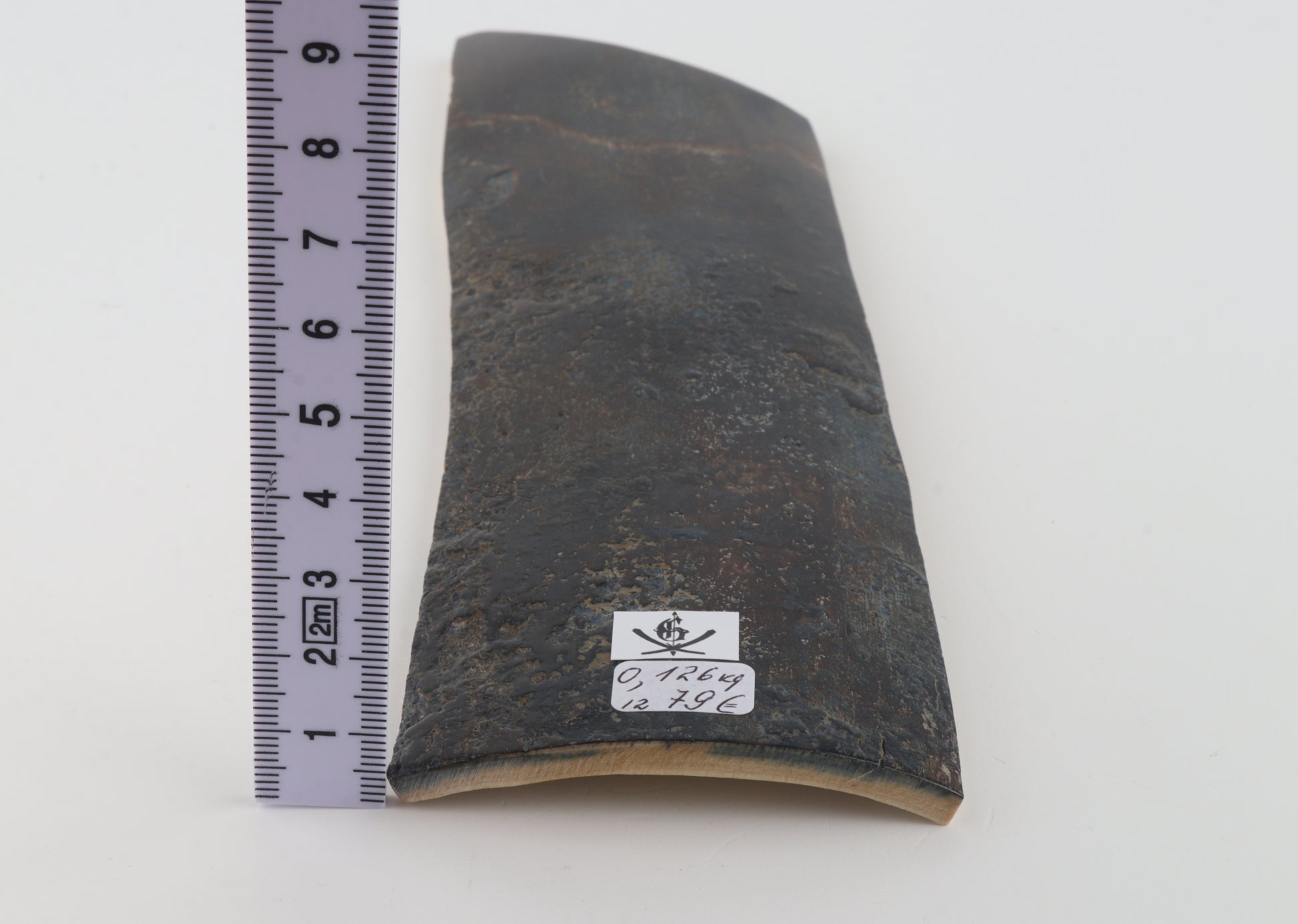 This is a premium-quality piece of Siberian woolly mammoth bark (Mammuthus primigenius). The ivory is naturally dense and solid, without cracks. Consistent width and thickness with reserves on both ends. This piece was cut at an angle - please carefully look at the pictures for precise dimensions. The natural colour of the bark is blue.