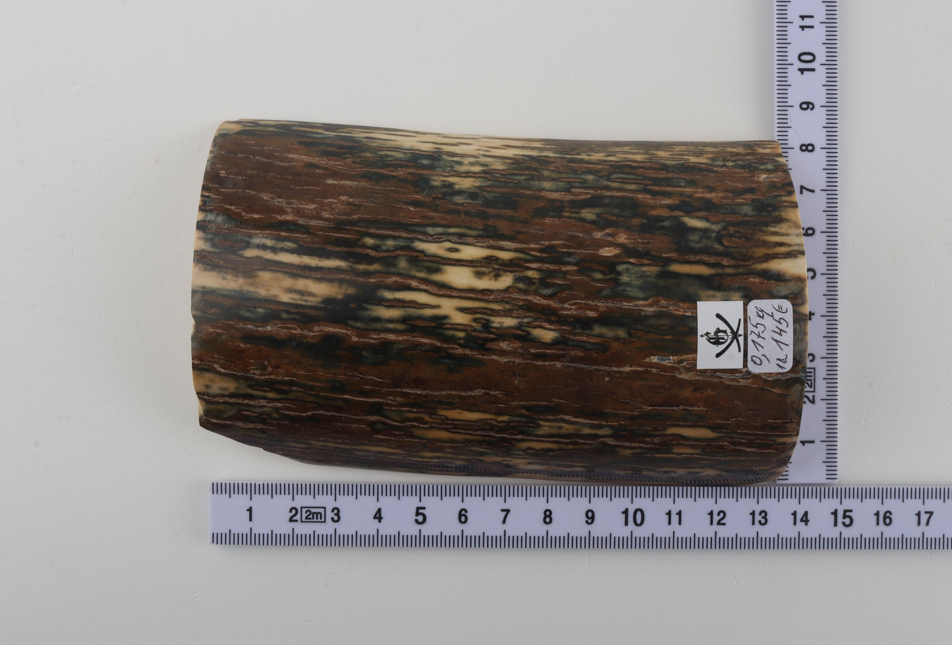 This is a premium-quality piece of Siberian woolly mammoth bark (Mammuthus primigenius). The ivory is naturally dense and solid, without cracks. Tapered width: One cross-cut section is narrower than the other, because the end of one side was cut at an angle. Consistent thickness with reserves on both ends. Please carefully look at the pictures for precise dimensions. The natural colour of the bark is brown-blue.
