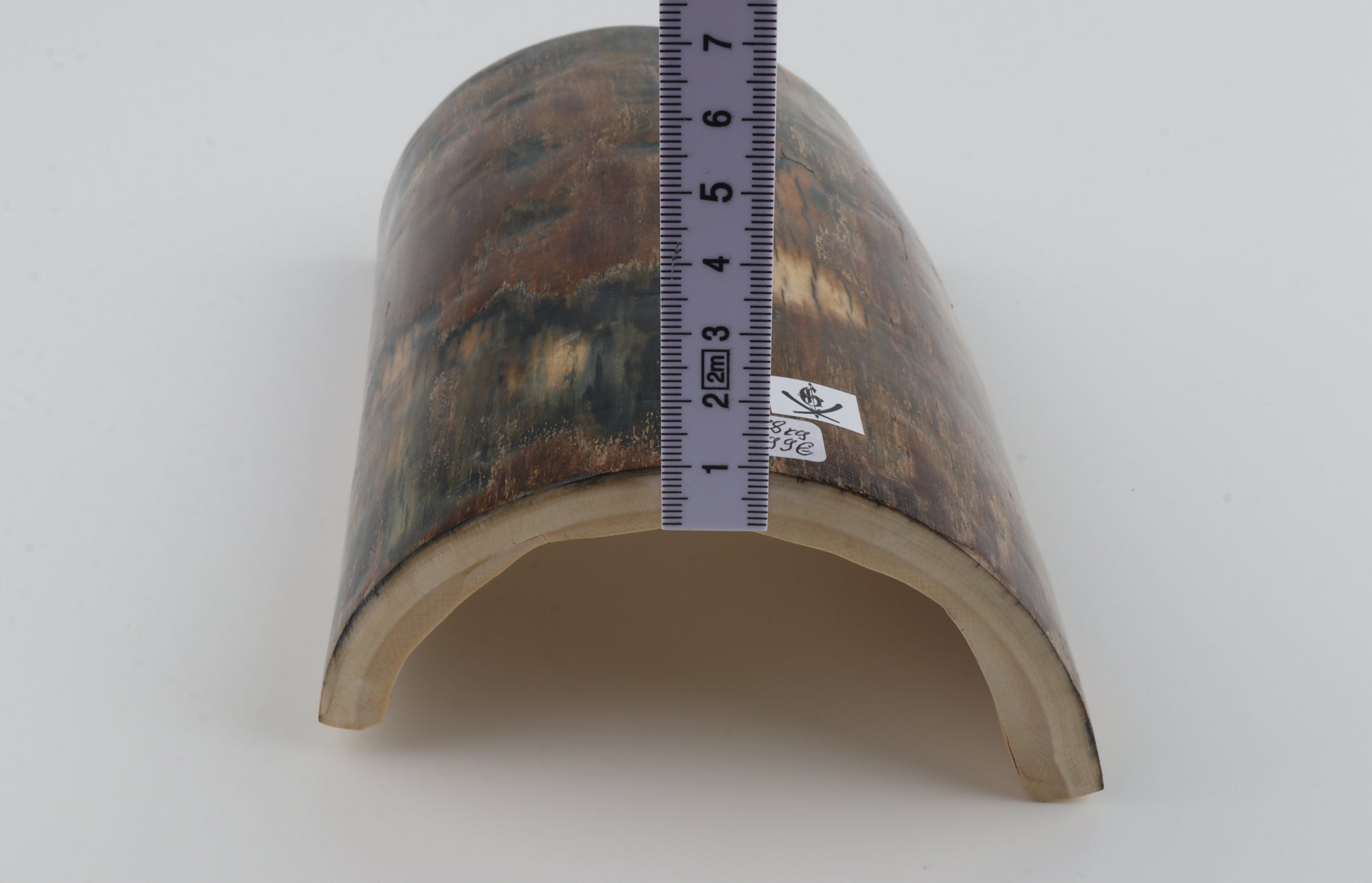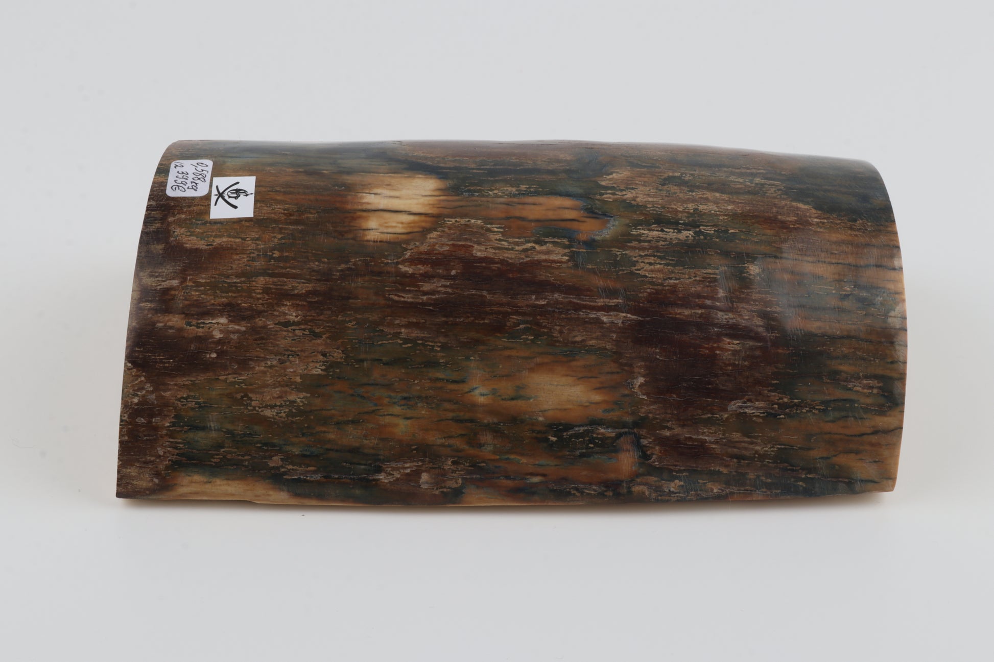 This is a premium-quality piece of Siberian woolly mammoth bark (Mammuthus primigenius). The ivory is naturally dense and solid, despite one small, non-penetrating crack on the underside. Consistent width and thickness with reserves on both ends. The natural colour of the bark is brown-blue