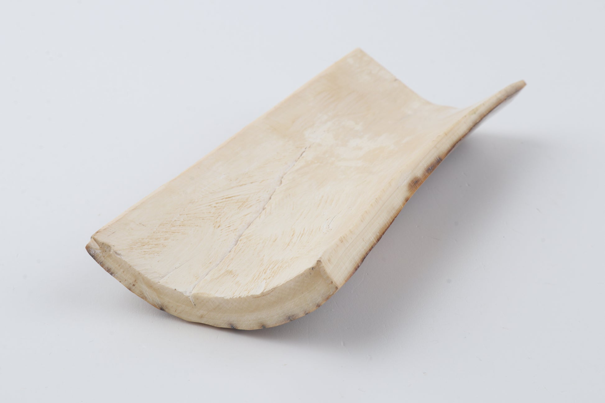 This is a premium-quality piece of Siberian woolly mammoth bark (Mammuthus primigenius). The ivory is naturally dense and solid, despite one small, non-penetrating crack on the underside. Tapered thickness: One cross-cut section is slightly thicker than the other. Consistent width with reserves on both ends. Please carefully look at the pictures for precise dimensions. The natural colour of the bark is brown-green.