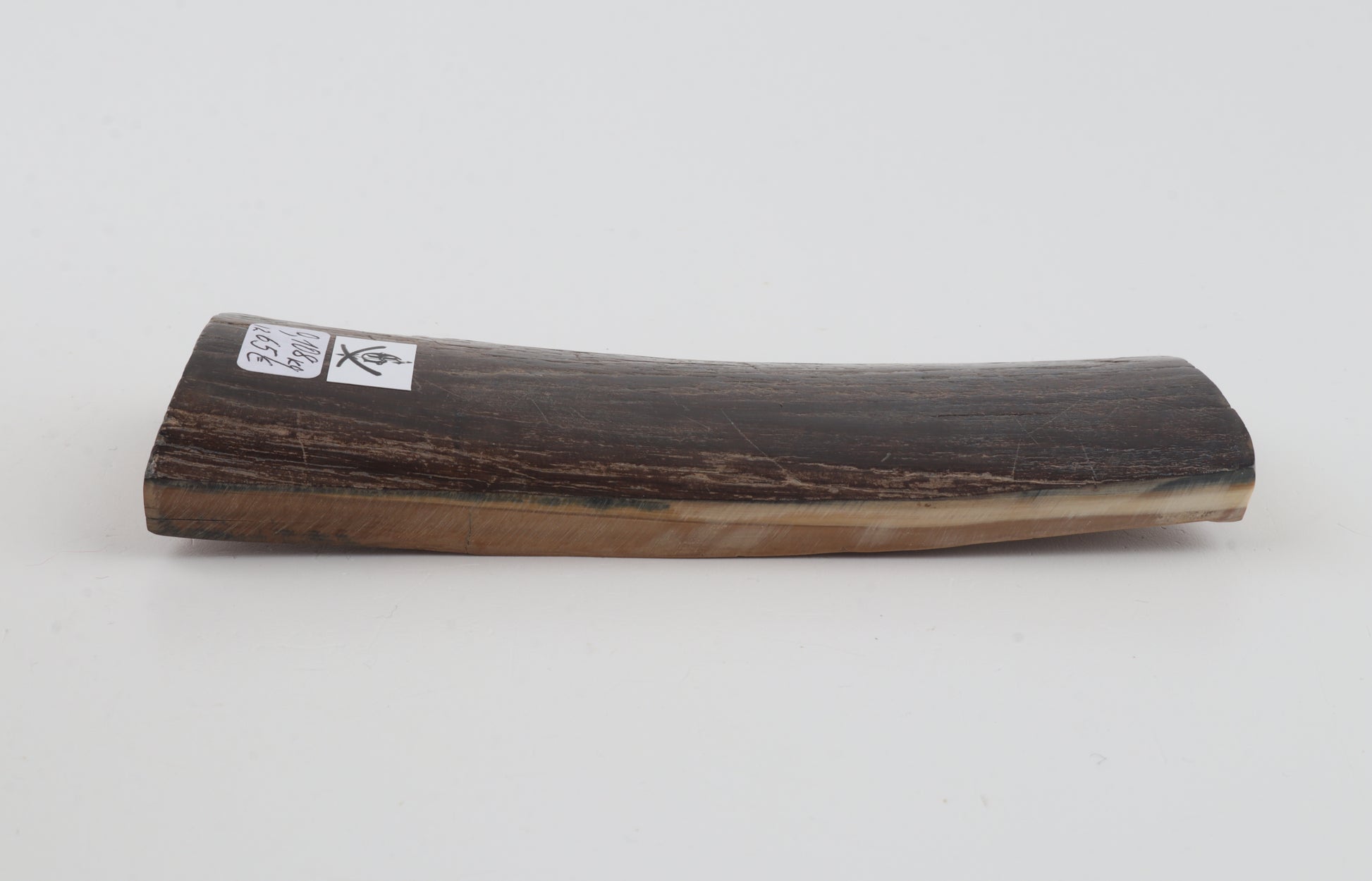 This is a premium-quality piece of Siberian woolly mammoth bark (Mammuthus primigenius). The ivory is naturally dense and solid, despite one small, non-penetrating crack. Tapered width and thickness with reserves on both ends: One cross-cut section is thicker and wider than the other. Please carefully look at the pictures for precise dimensions. The natural color of the bark is brown ranges from multitone.