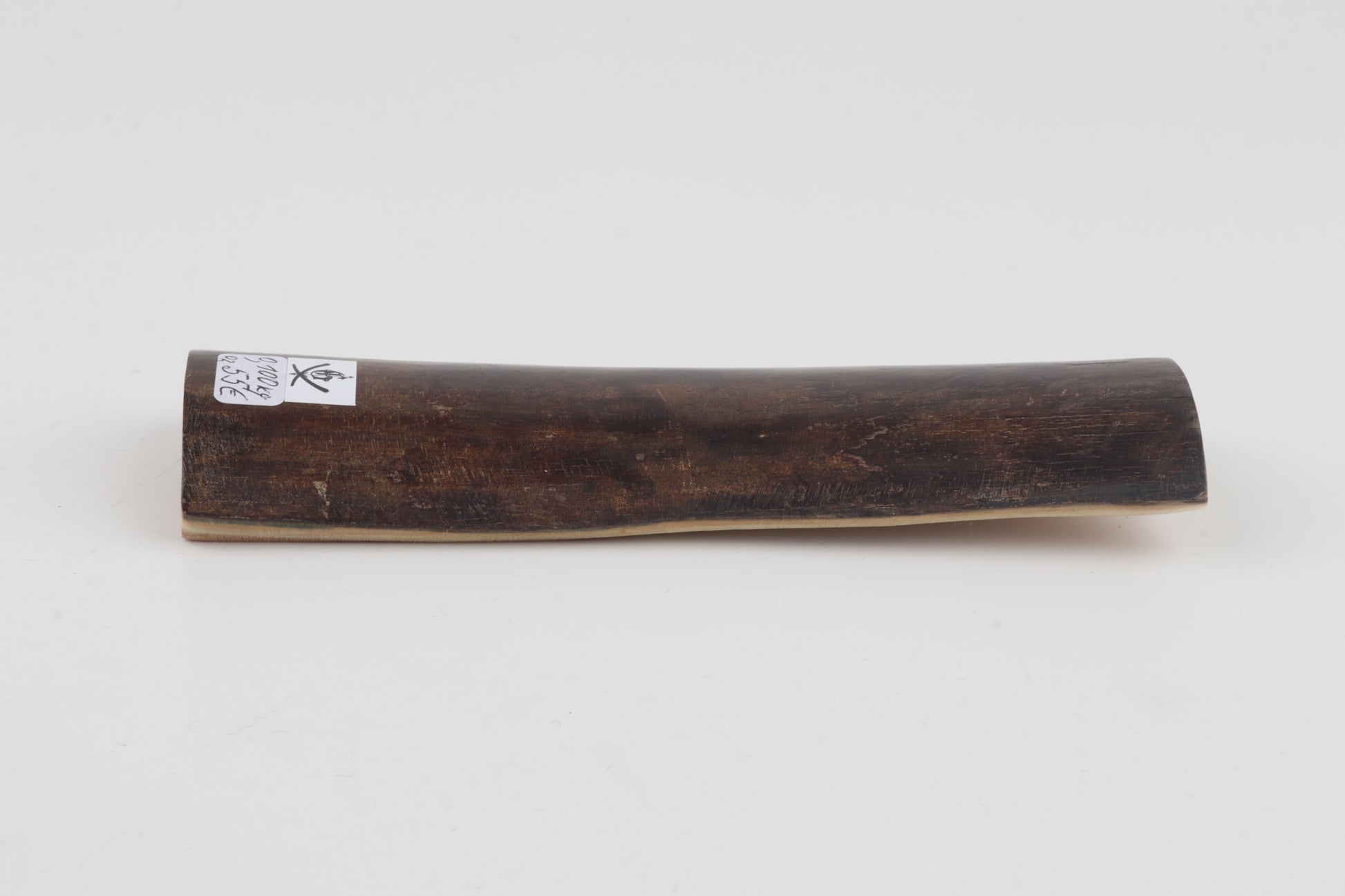 This is a premium-quality piece of Siberian woolly mammoth bark (Mammuthus primigenius). The ivory is naturally dense and solid, without cracks. Tapered thickness: One cross-cut section is slightly thinner than the other. Consistent width with reserves on both ends. The natural color of the bark is brown.