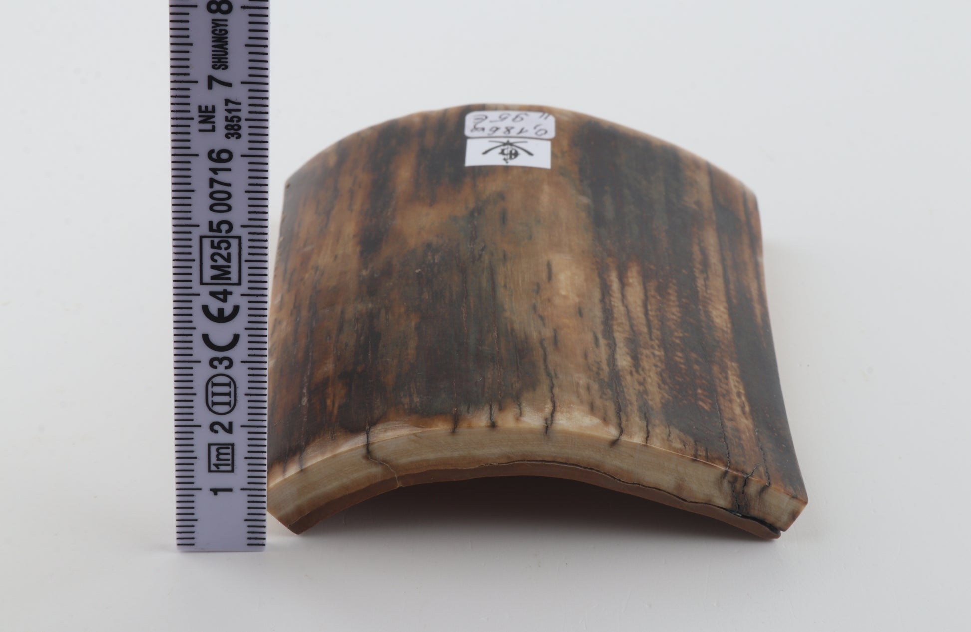 This is a top-quality piece of Siberian woolly mammoth bark (Mammuthus primigenius). The ivory is rock-solid despite some small cracks. One cross-cut section is thicker and wider than the other. Reserves on both ends. Please carefully look at the pictures for precise dimensions. The colour of the bark is brown.