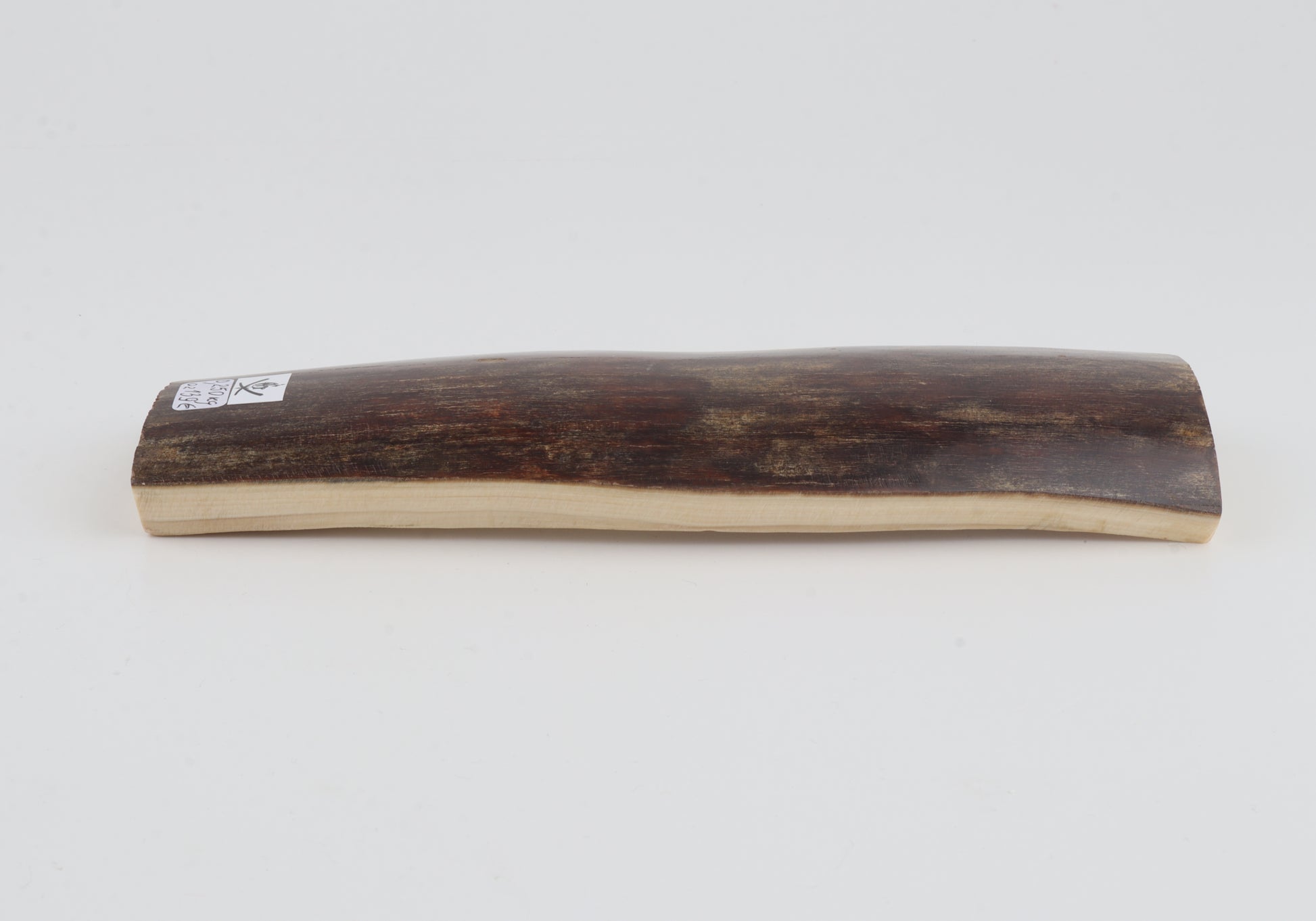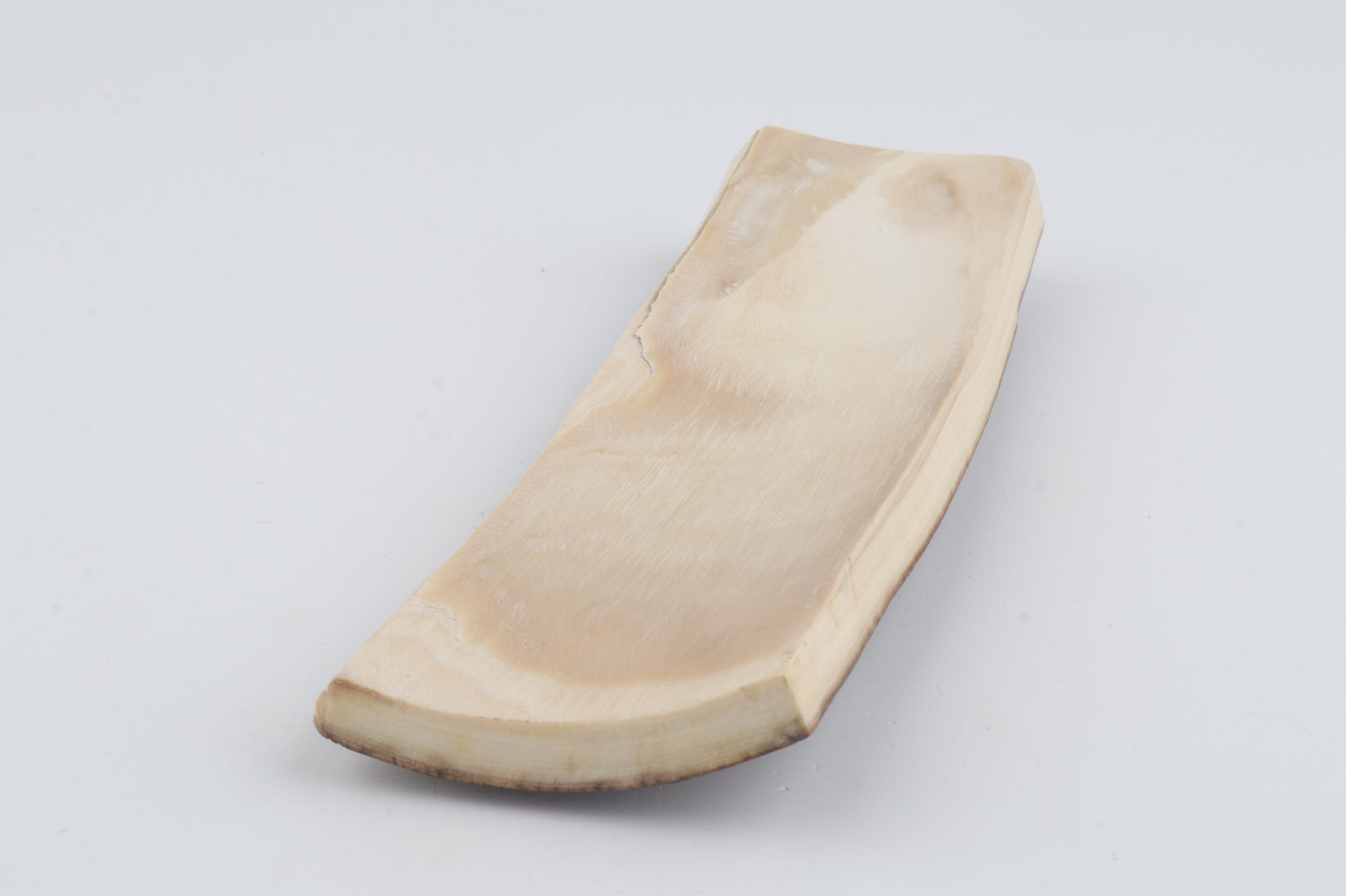 This is a premium-quality piece of Siberian woolly mammoth bark (Mammuthus primigenius). The ivory is naturally dense and solid, despite one small, non-penetrating crack on the underside. Tapered width and thickness with reserves on both ends: One cross-cut section is slightly thicker and narrower than the other. Please carefully look at the pictures for precise dimensions. The natural colour of the bark is brown.