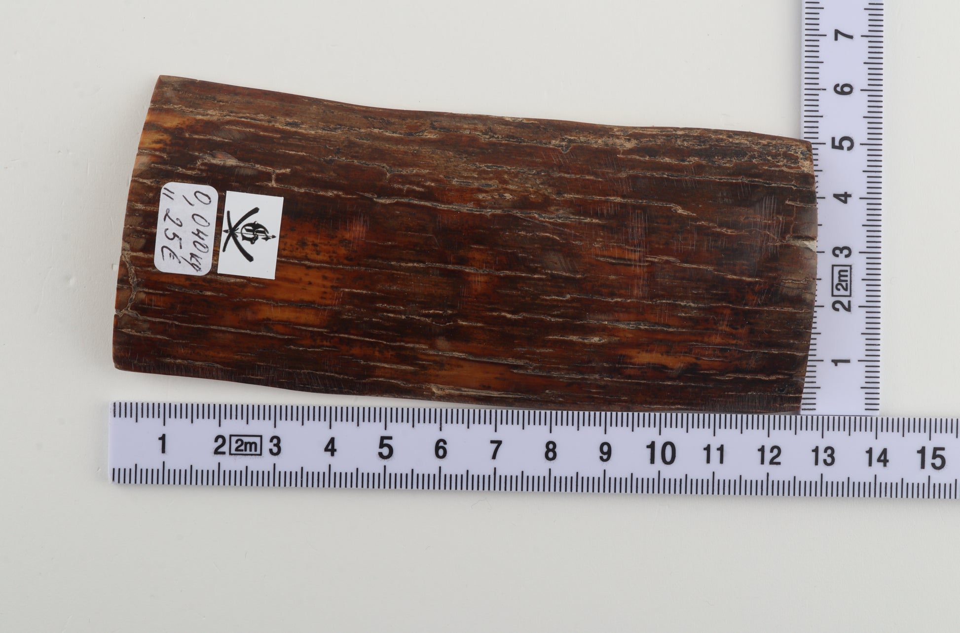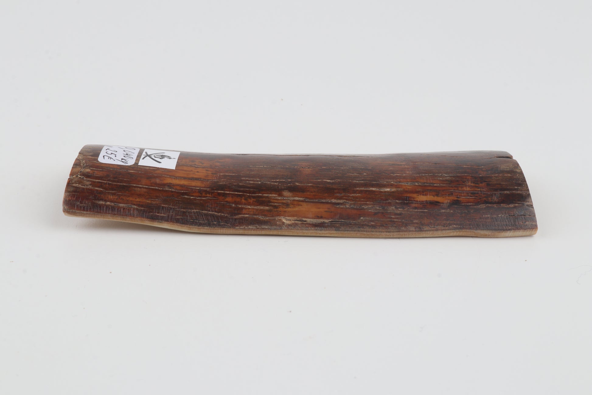 This is a premium-quality piece of Siberian woolly mammoth bark (Mammuthus primigenius). The ivory is naturally dense and solid, despite some tiny, non-penetrating fissures. Tapered width: One cross-cut section is slightly wider than the other. Consistent thickness with reserves on both ends. The natural colour of the bark is brown-orange.