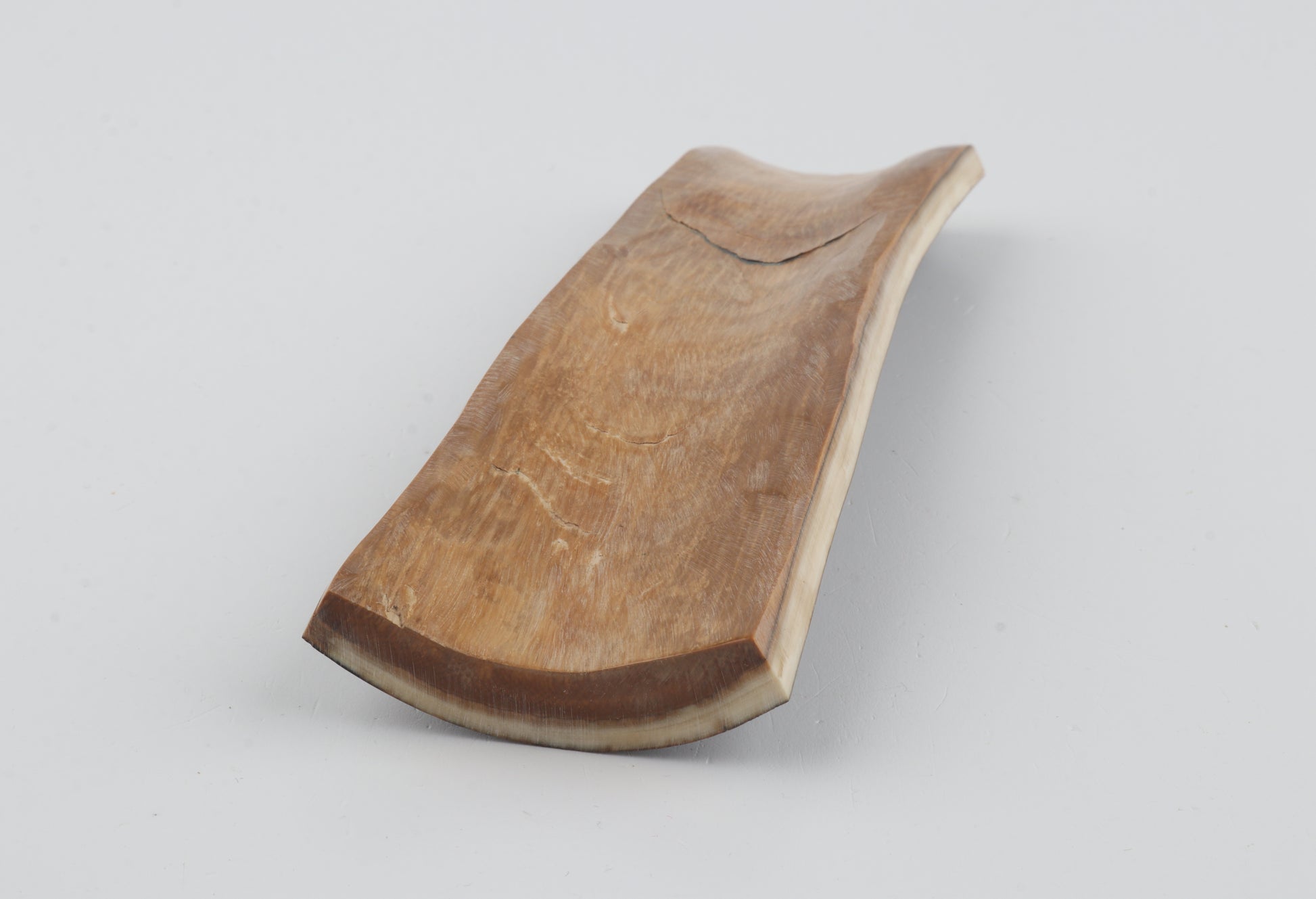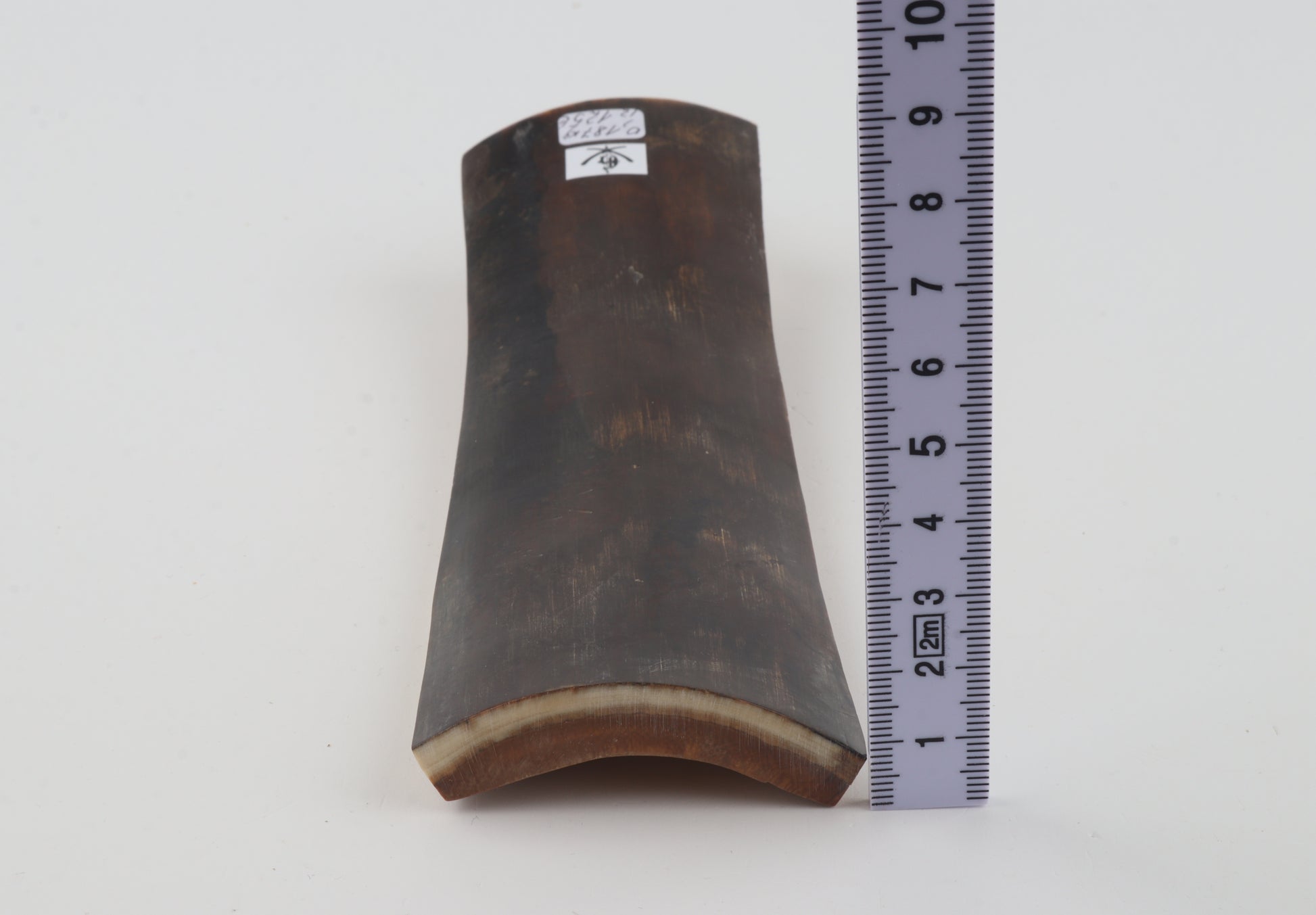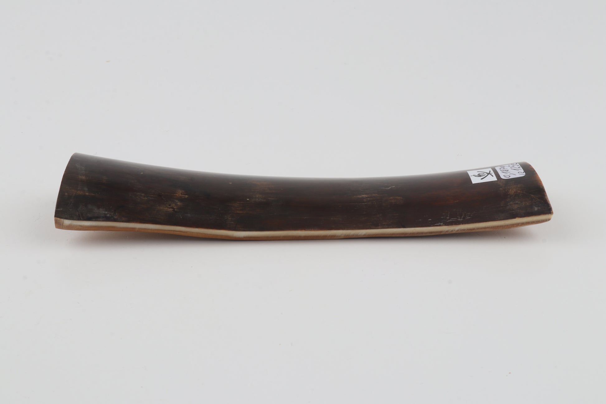 This is an immaculate piece of Siberian woolly mammoth bark (Mammuthus primigenius). The ivory is naturally dense and solid, without cracks. Consistent width and thickness with reserves on both ends. This piece was cut at an angle - please carefully look at the pictures for precise dimensions. The natural colour of the bark is dark-brown.