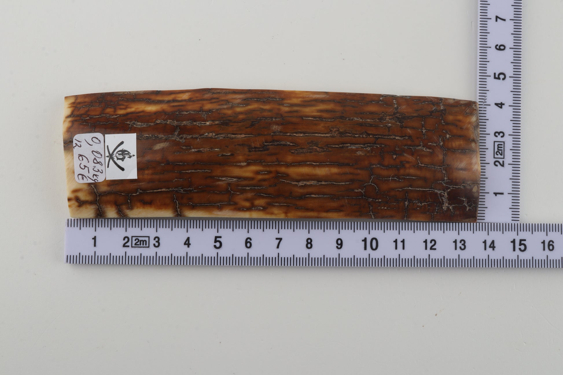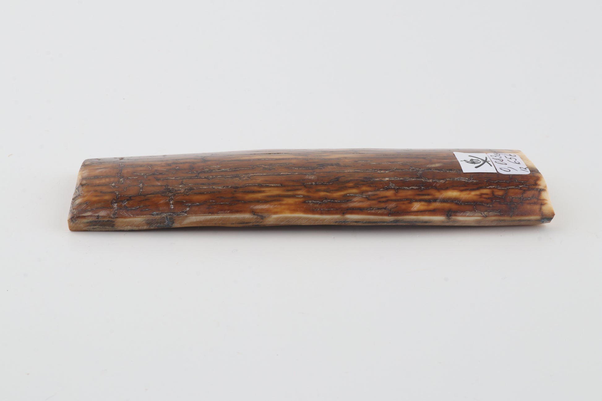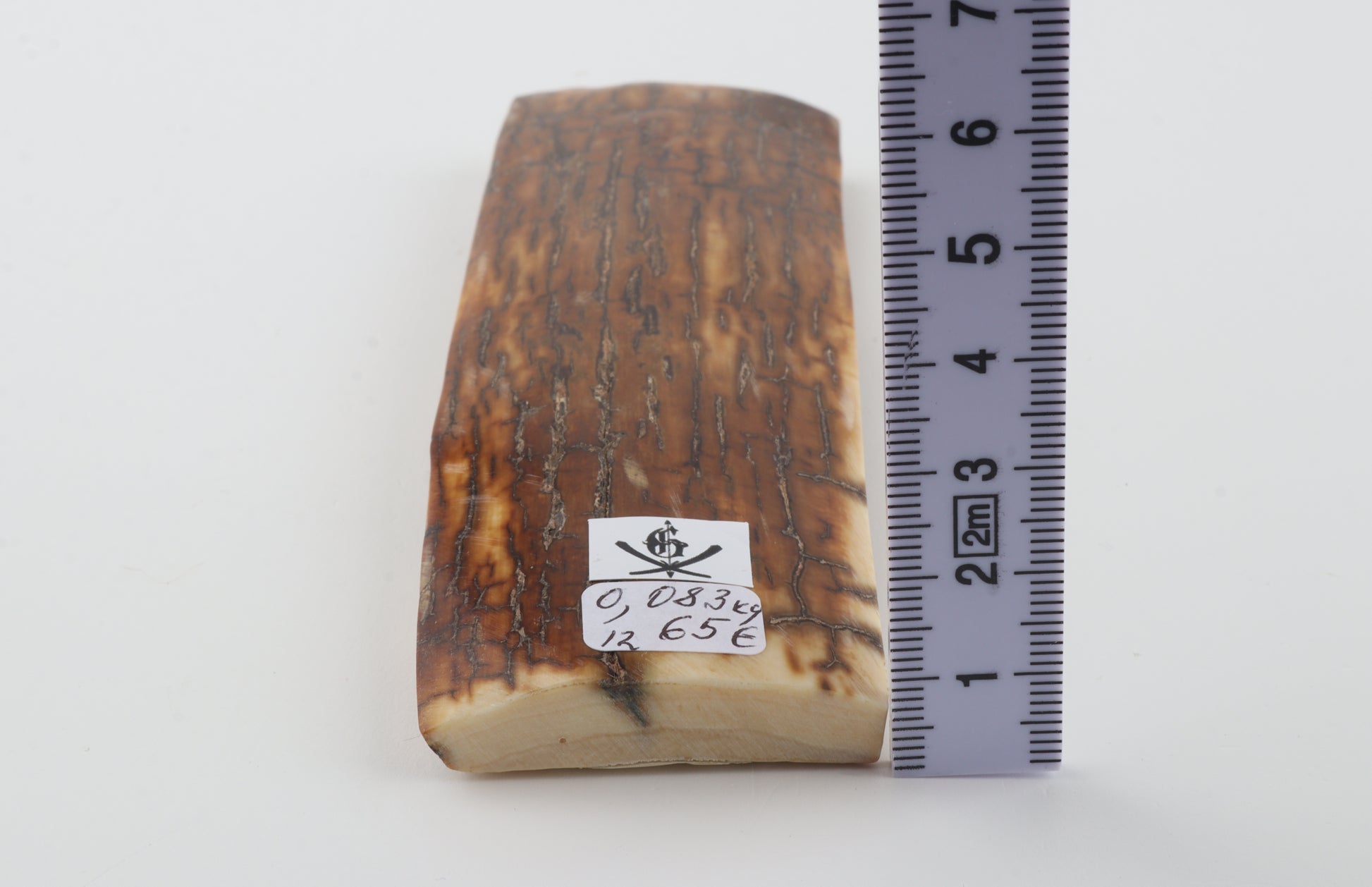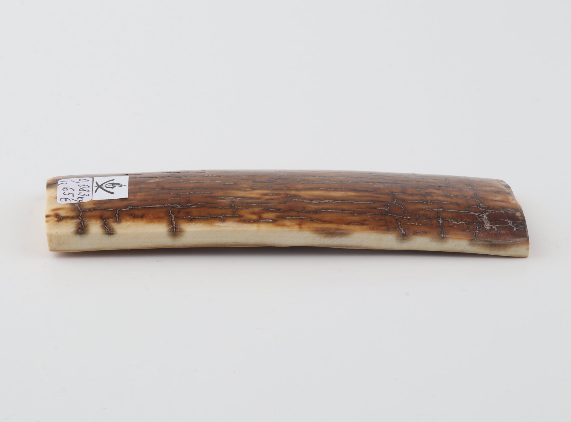 This is a premium-quality piece of Siberian woolly mammoth bark (Mammuthus primigenius). The ivory is naturally dense and solid, without cracks. Tapered thickness: One cross-cut section is slightly thicker than the other. Consistent width with reserves on both ends. The natural colour of the bark is creme.