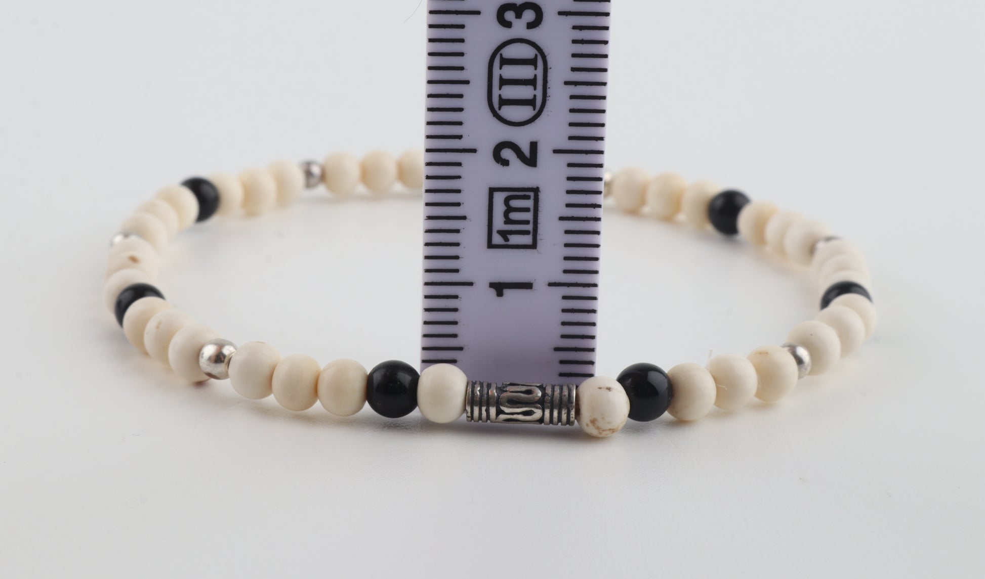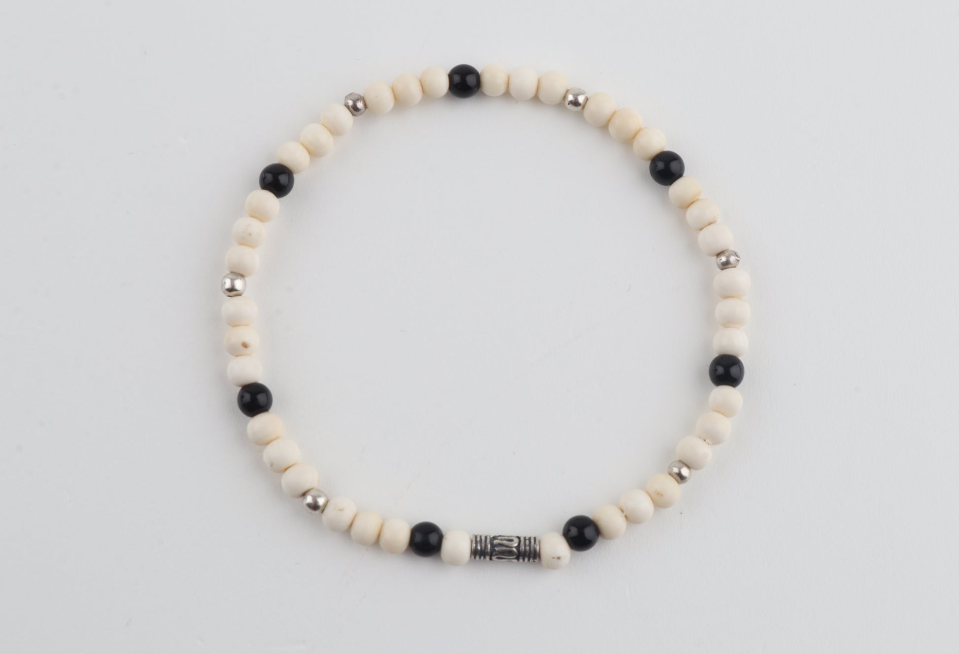 This refined minimalist stacking bracelet is handcrafted from small beads of genuine mammoth ivory (Mammuthus primigenius), paired with natural agate accents and finished with sterling-silver elements.
