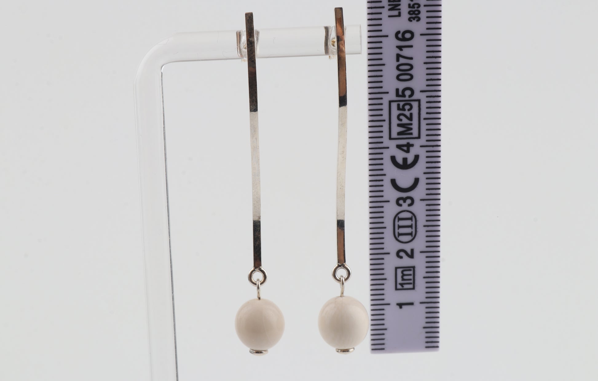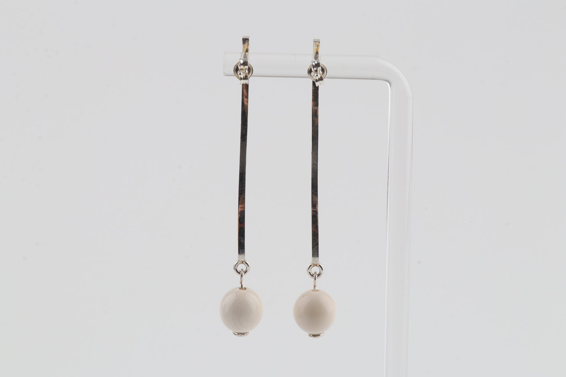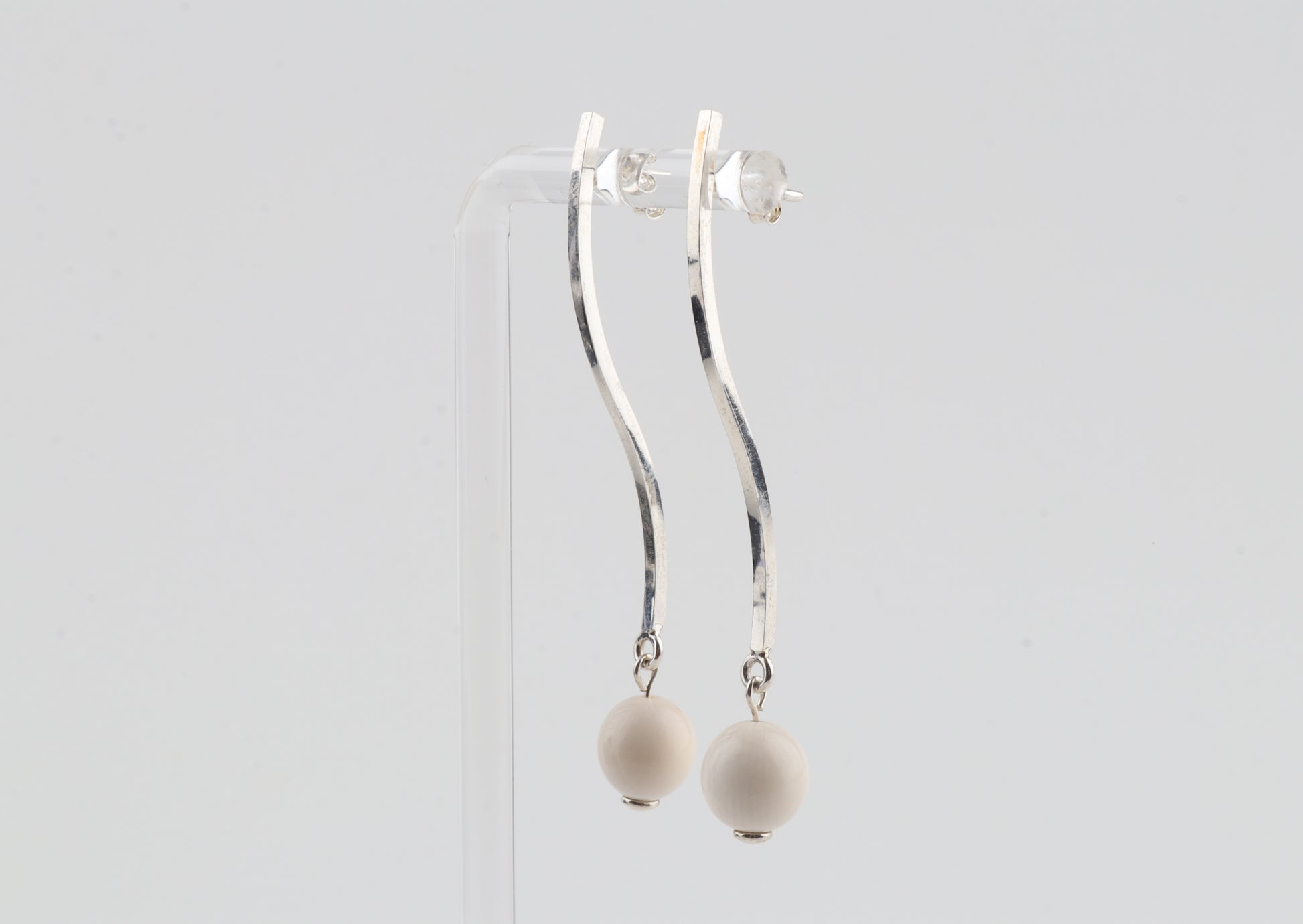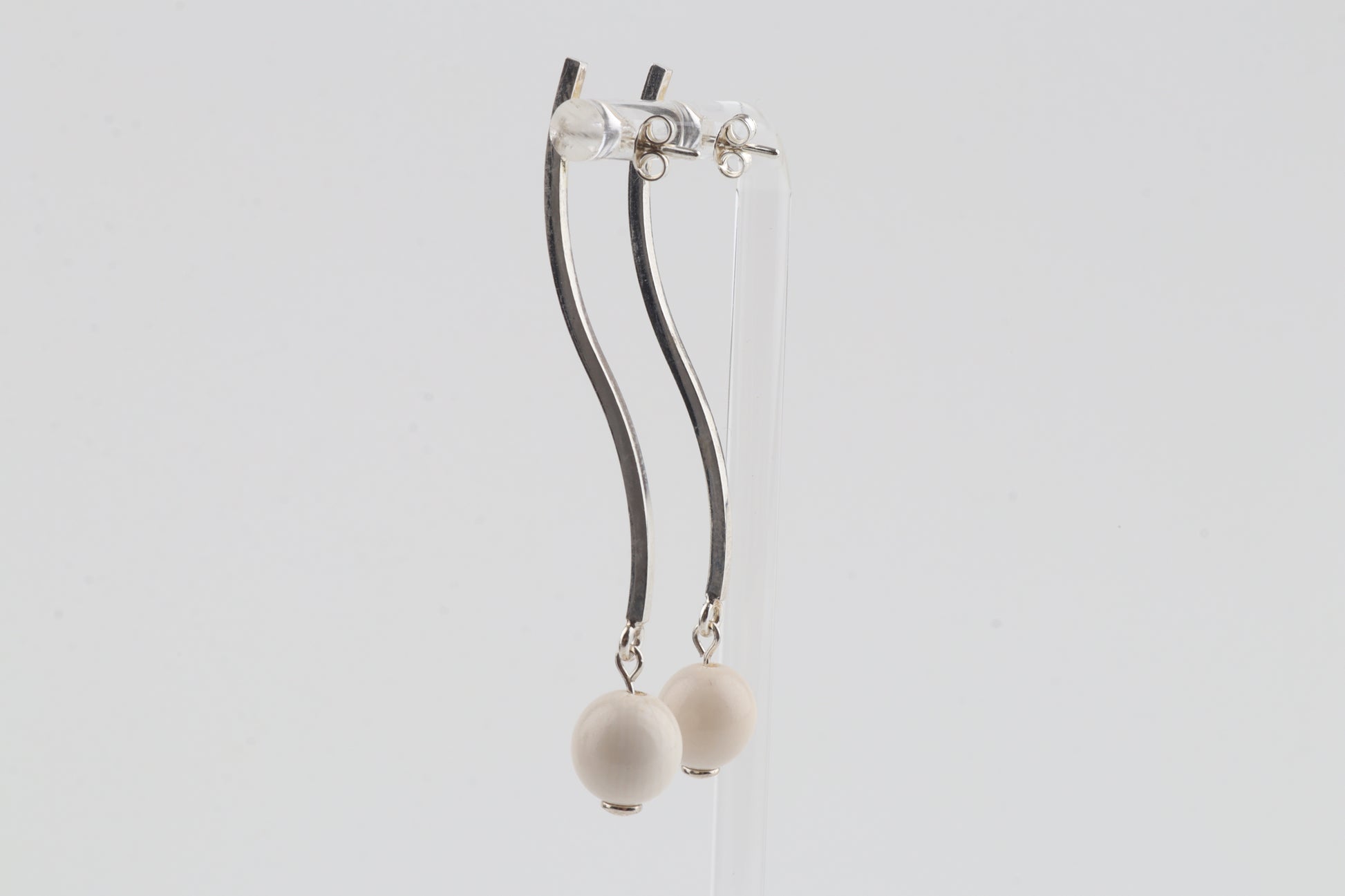 These refined earrings feature 9mm mammoth ivory spheres (Mammuthus primigenius) suspended from long, slender sterling silver studs. The minimalist design creates a graceful, elongated silhouette, while the warm ivory tone offers a soft contrast to the cool shine of silver.