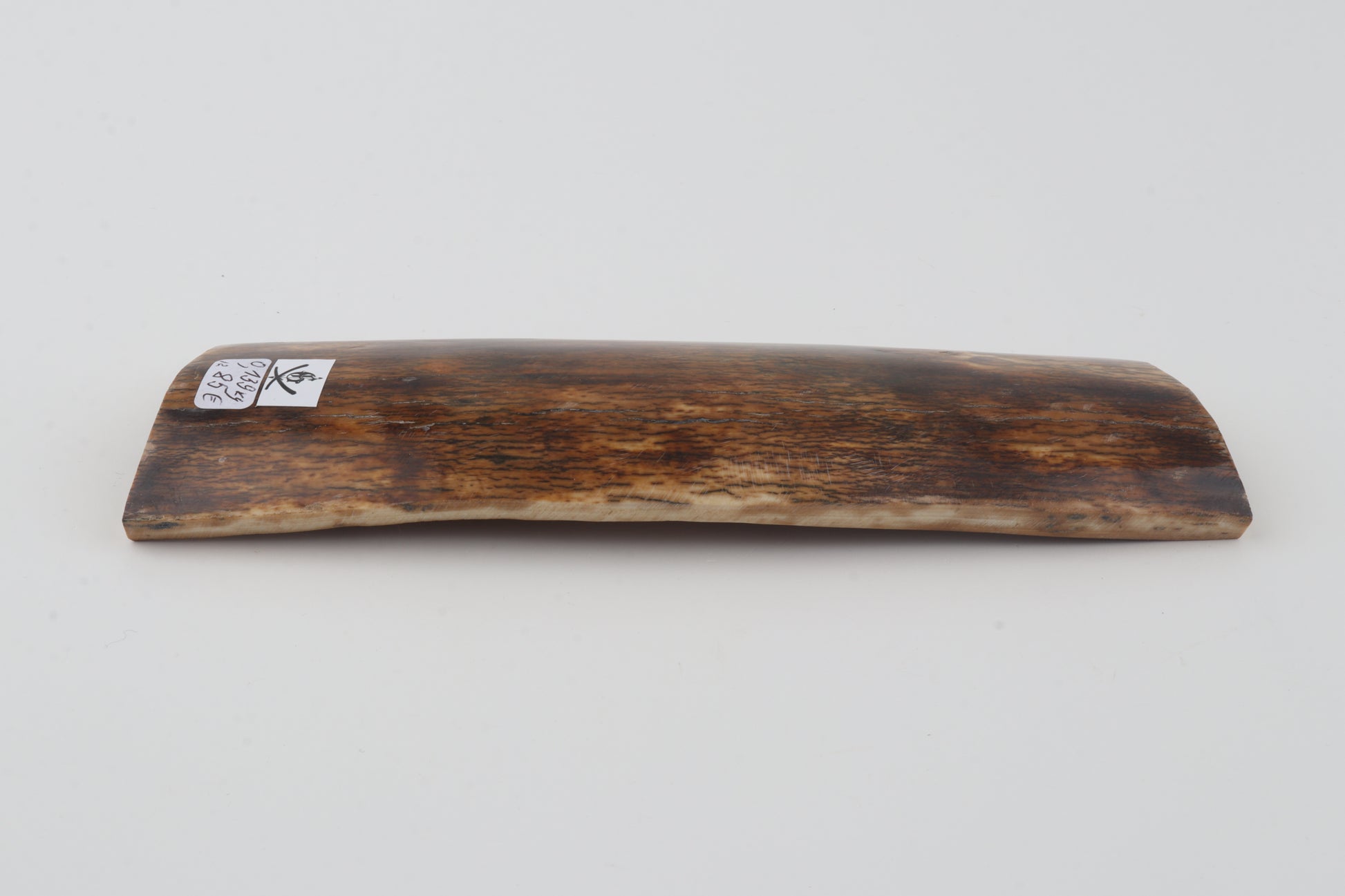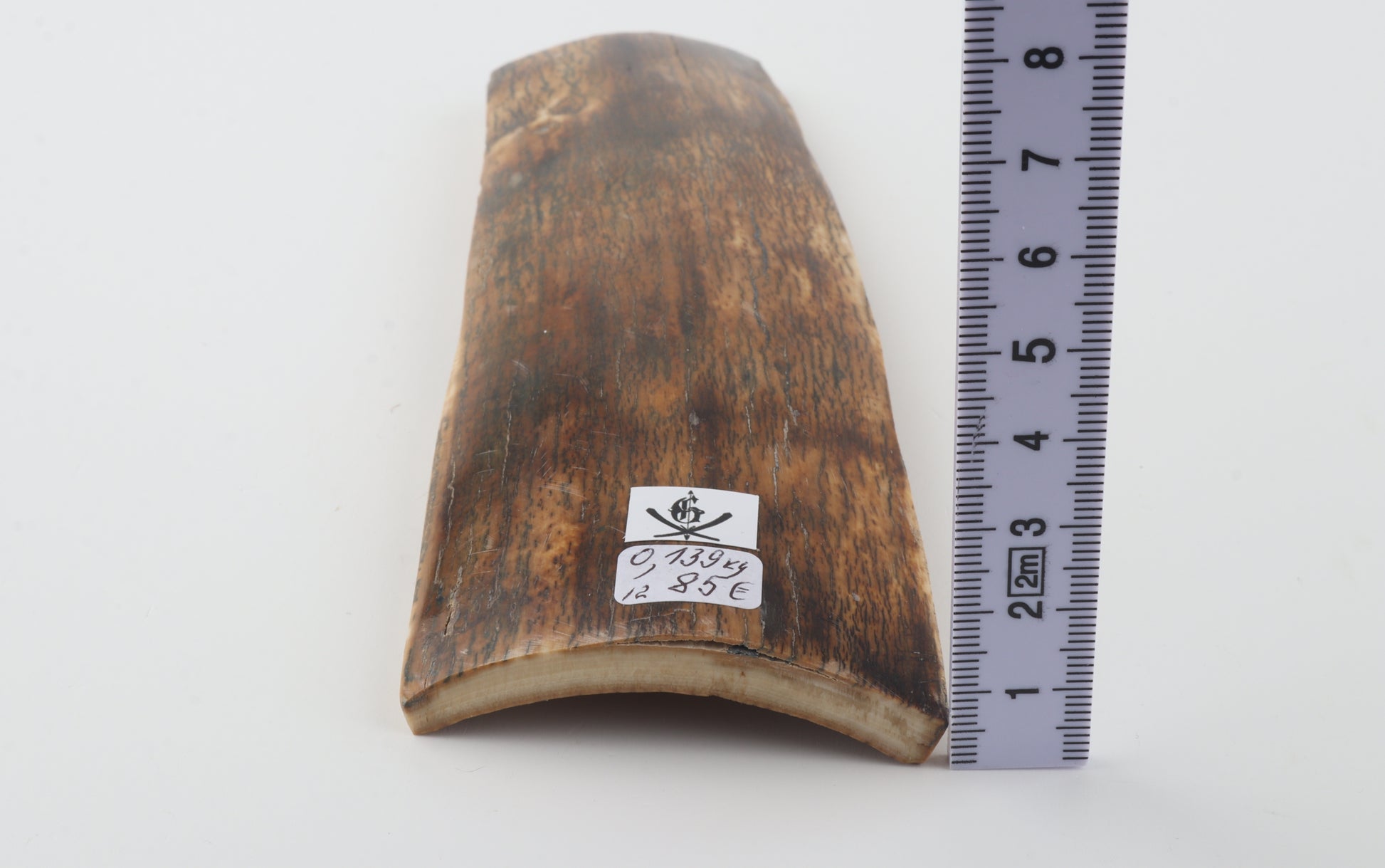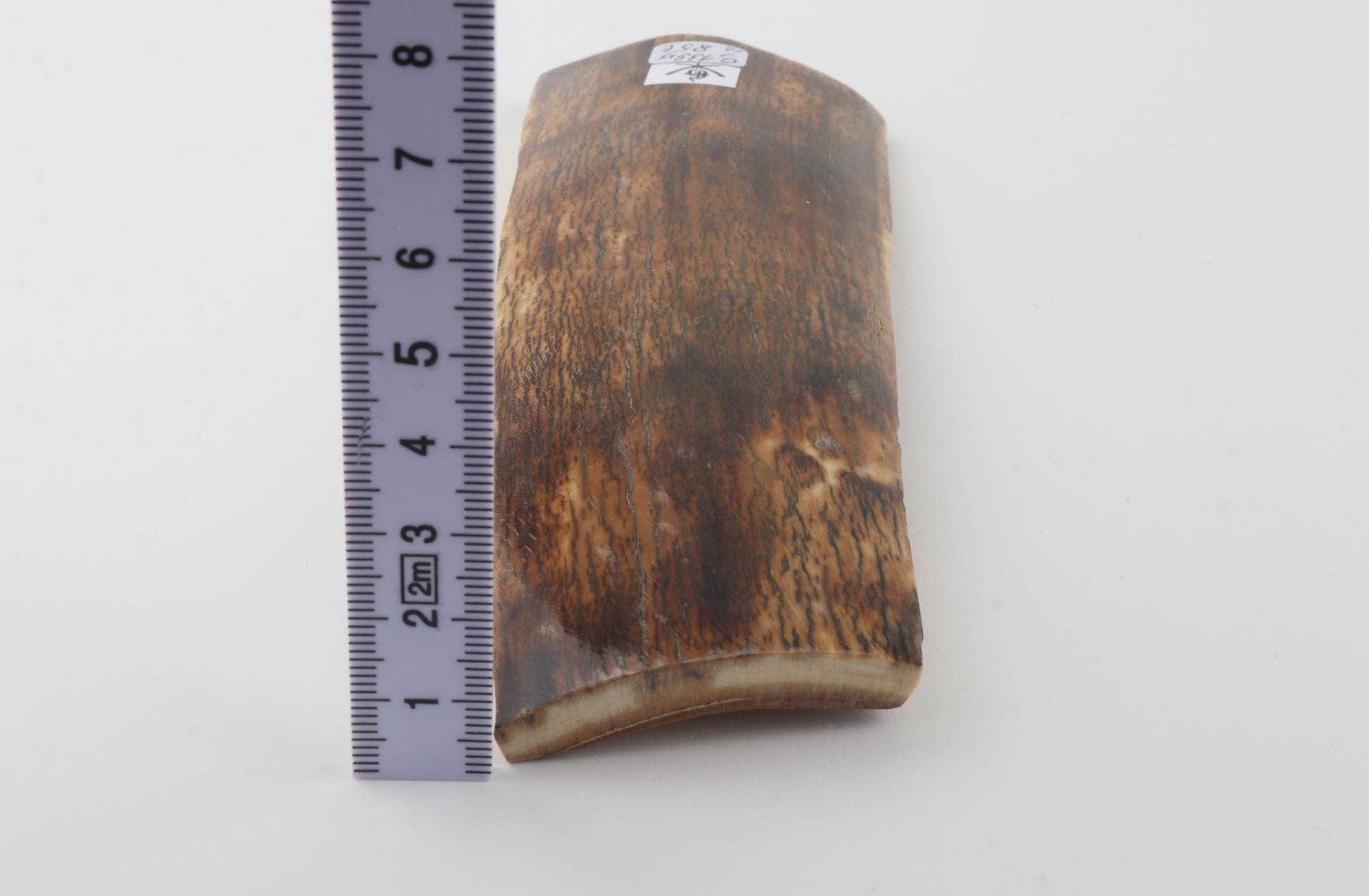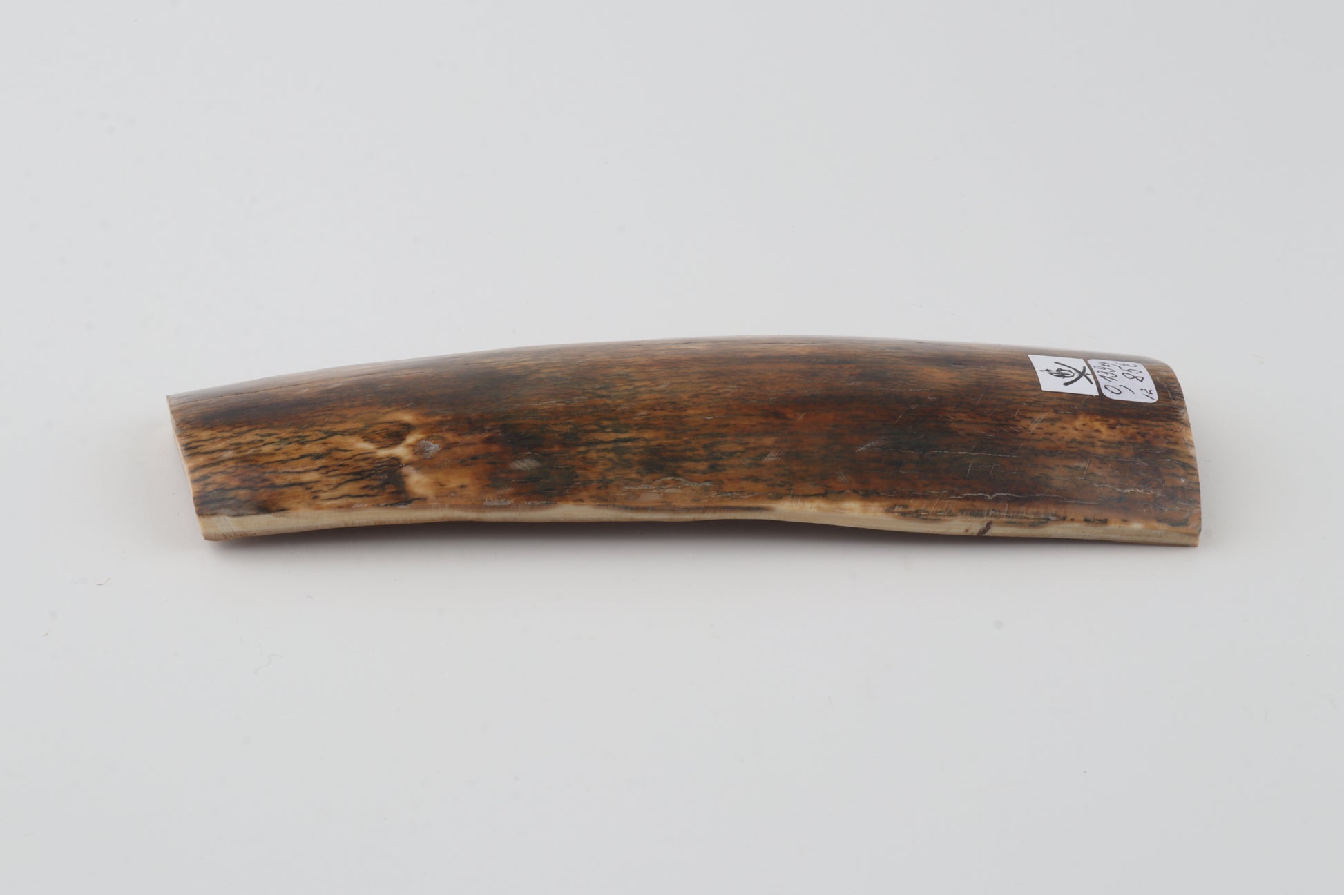 This is a premium-quality piece of Siberian woolly mammoth bark (Mammuthus primigenius). The ivory is naturally dense and solid, despite one small, non-penetrating crack on the wider cross-cut section. Consistent thickness with reserves on both ends. The natural colour of the bark is a ranges from brown to green to orange tones.