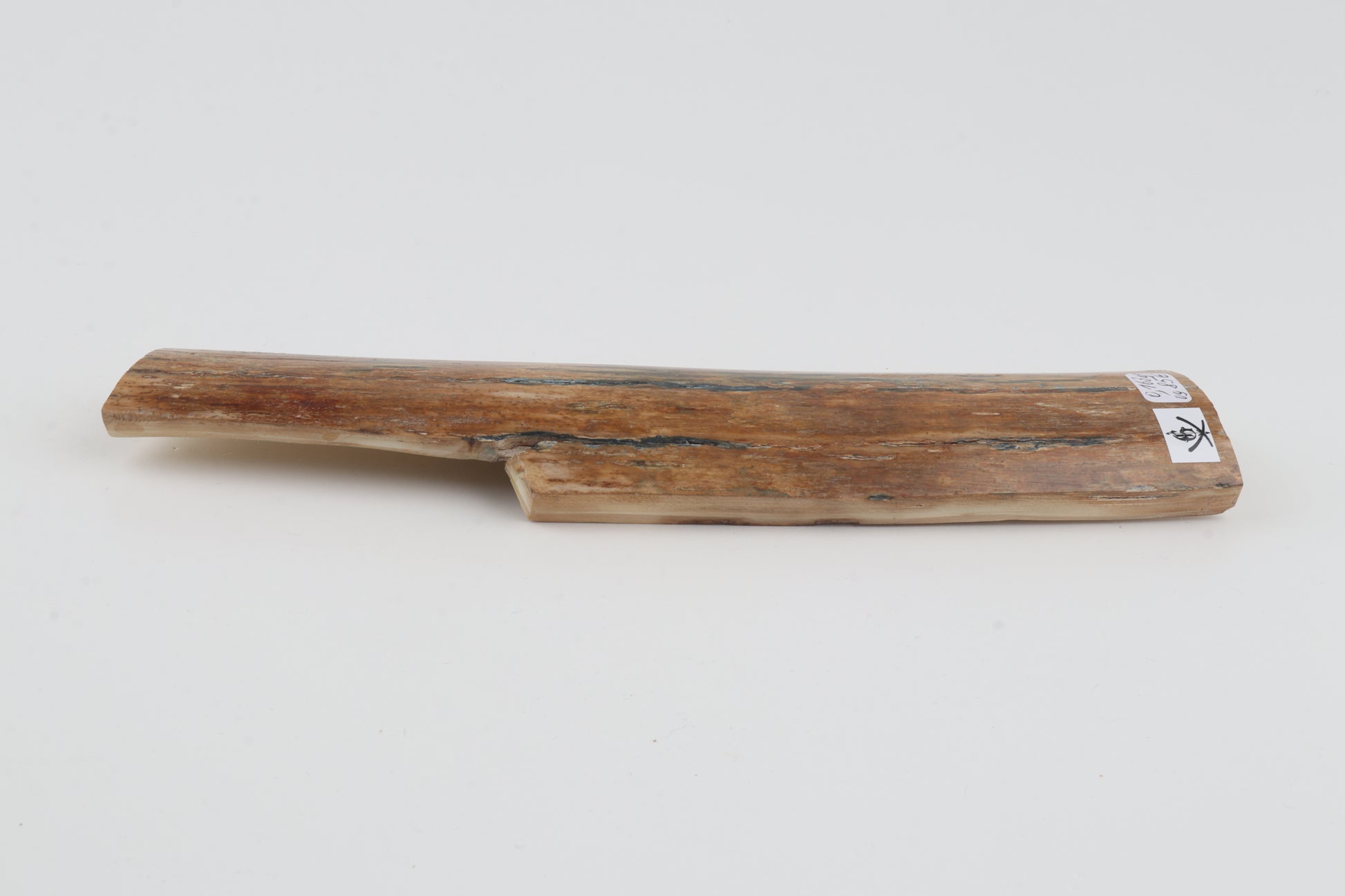 This is a premium-quality piece of Siberian woolly mammoth bark (Mammuthus primigenius). The ivory is naturally dense and solid, despite some small cracks. One cross-cut section is wider than the other, because one side was cut at an angle. Consistent thickness with reserves on both ends. Please carefully look at the pictures for precise dimensions. The natural colour of the bark is a mix of orange, beige and green.