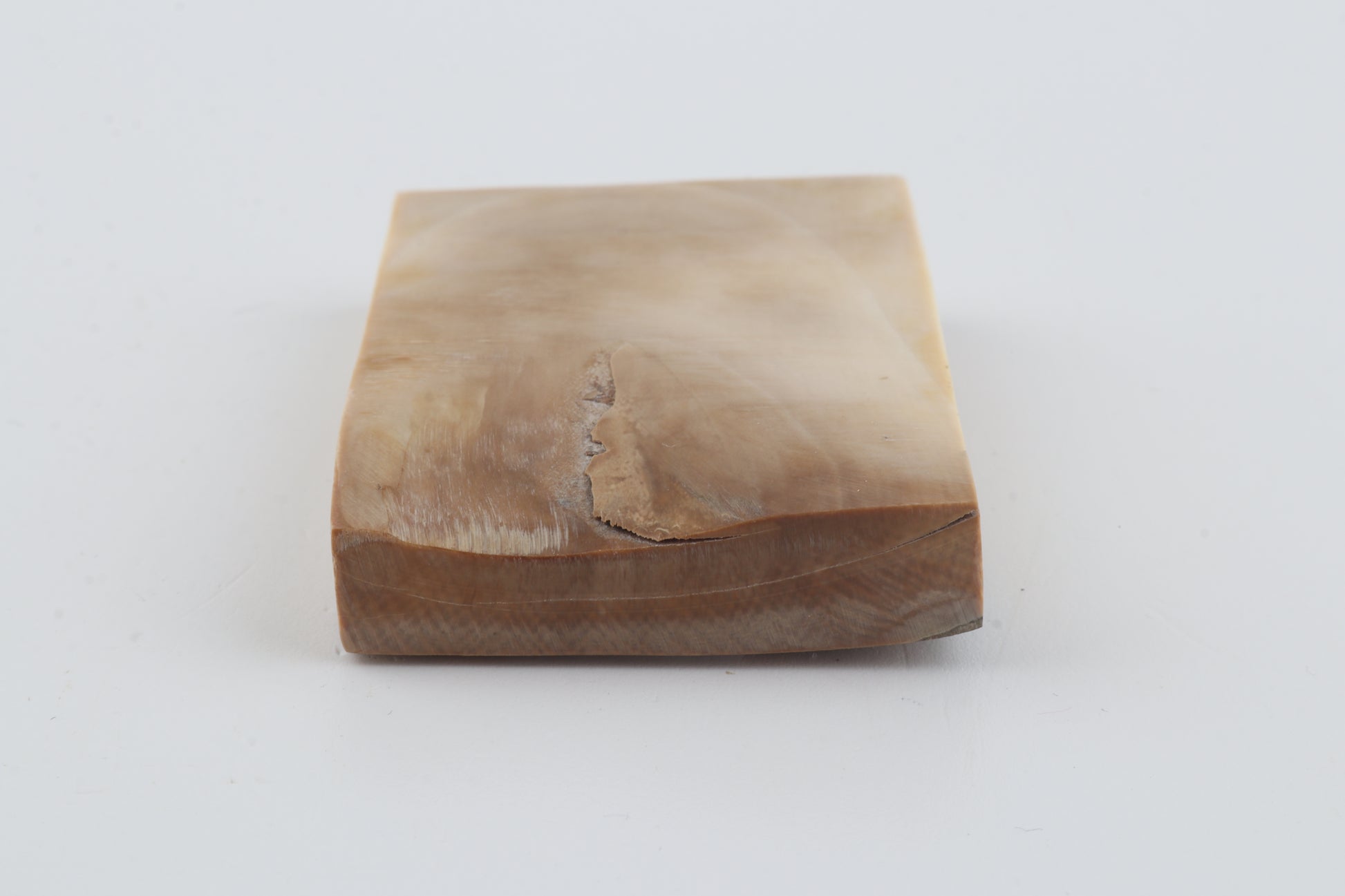 This is a premium-quality piece of Siberian woolly mammoth ivory (Mammuthus primigenius). The ivory is naturally dense and solid, despite some small, non-penetrating cracks on one cross-cut section. Consistent width and thickness with reserves on both ends. The piece displays its original, natural beige-ivory tone.