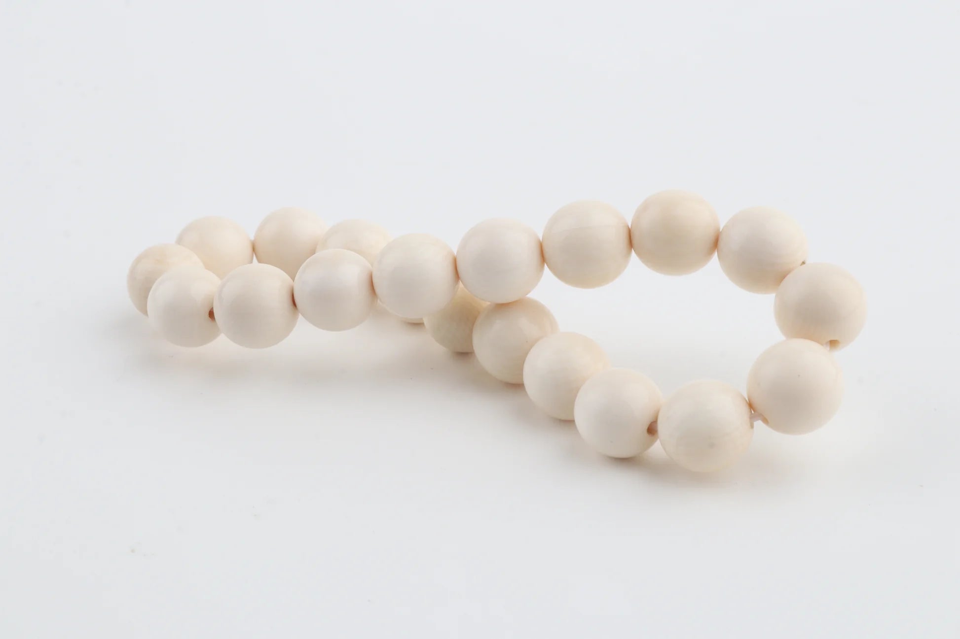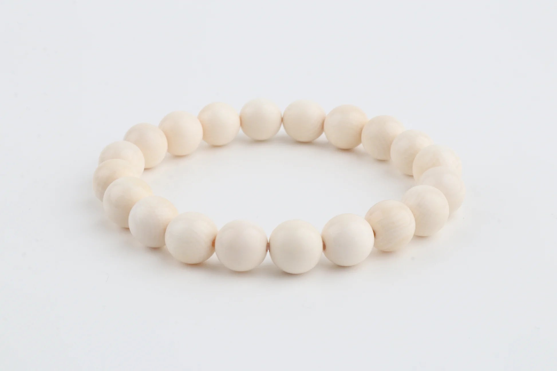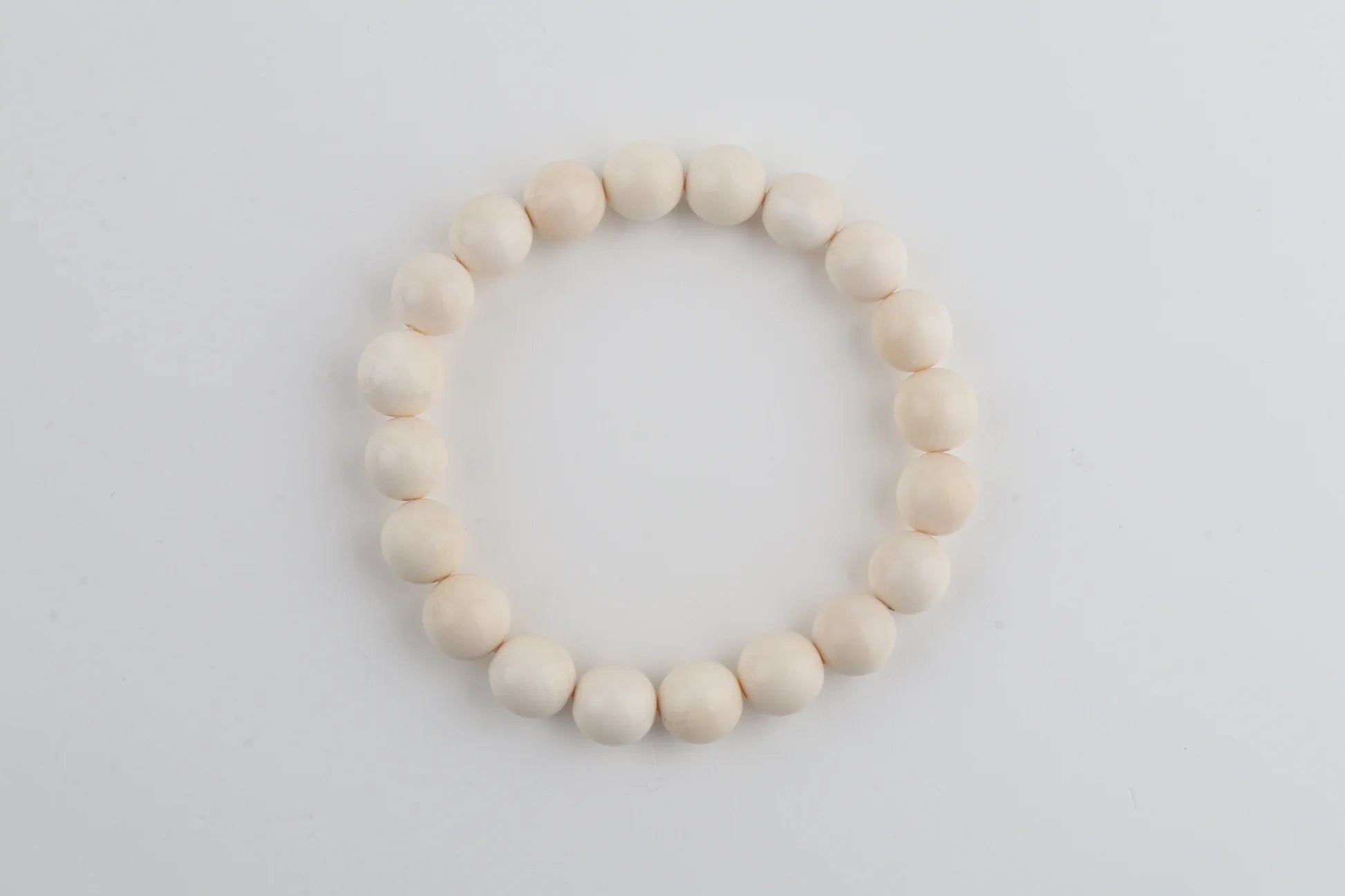 This bracelet is crafted from 9 mm mammoth ivory beads (Mammuthus primigenius), each displaying the soft, creamy tone and subtle grain characteristic of genuine mammoth ivory. Its minimalist design highlights the natural beauty and warmth of the material, offering a timeless piece of wearable history.