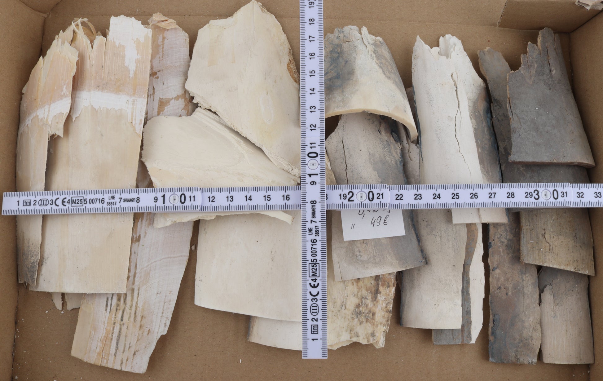 This lot consists of 20 raw Siberian woolly mammoth ivory pieces (Mammuthus primigenius). Each piece was hand-selected to form a matching lot. Please carefully look at the pictures for precise dimensions and colours.