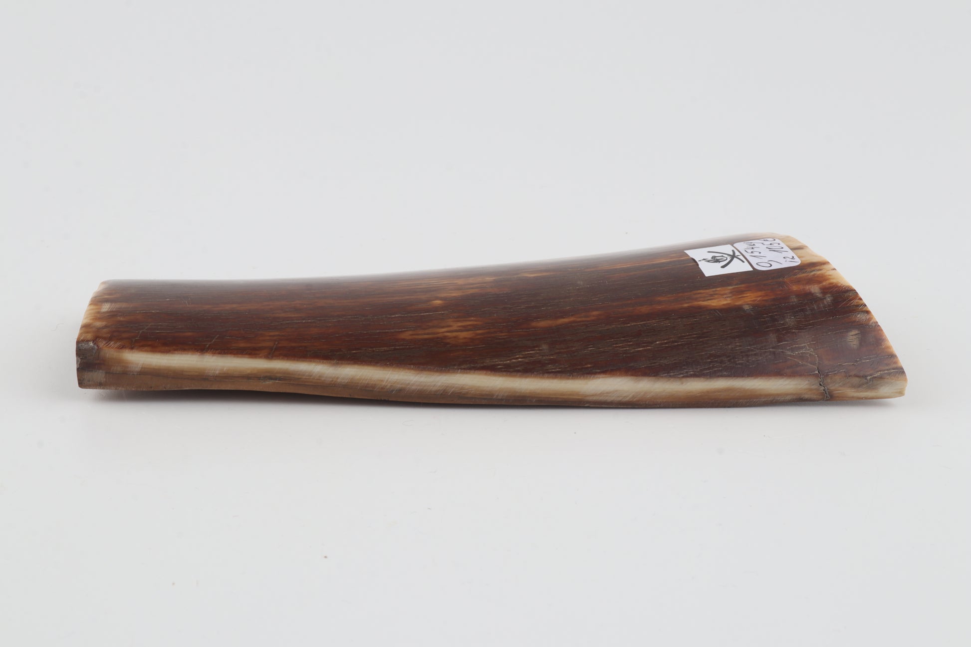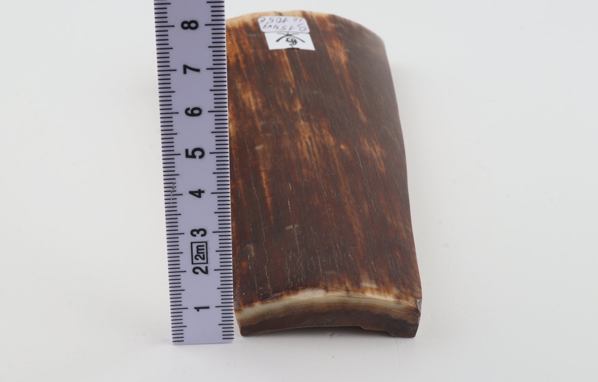 This is a premium-quality piece of Siberian woolly mammoth bark (Mammuthus primigenius). The ivory is naturally dense and solid, despite one small, non-penetrating crack on one side. Tapered width: One cross-cut section is wider than the other. Consistent thickness with reserves on both ends. The natural colour of the bark is red-brown.