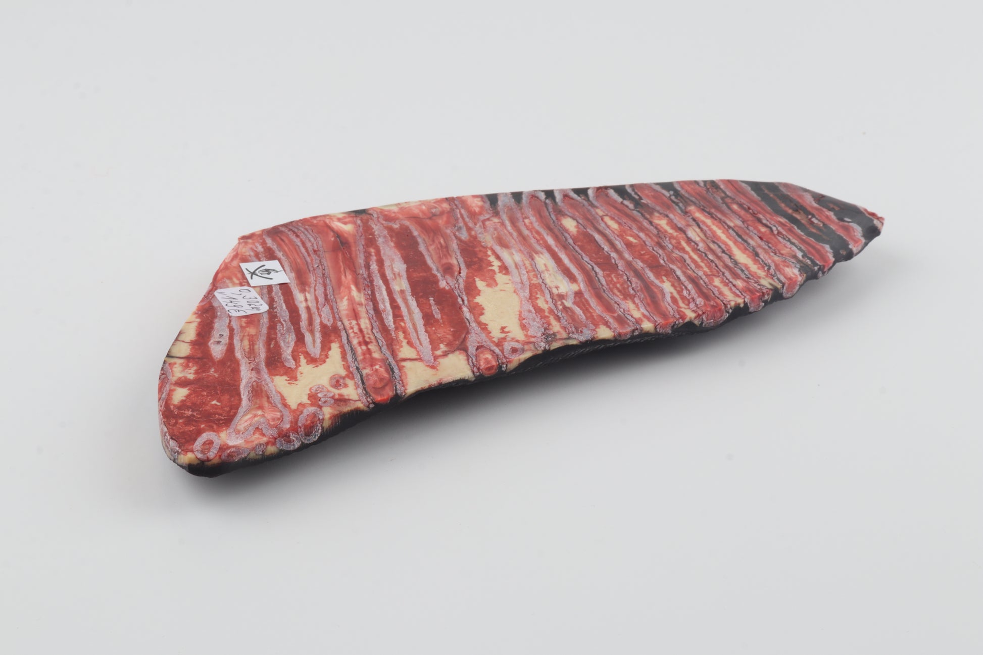 This is a large, cross-cut and stabilized woolly mammoth molar piece (Mammuthus primigenius). The distinctive natural lamellar structure of the molar is clearly visible, displaying parallel enamel ridges with attractive organic patterning. This piece can be precision-cut, drilled, sanded, polished etc. to achieve the desired results