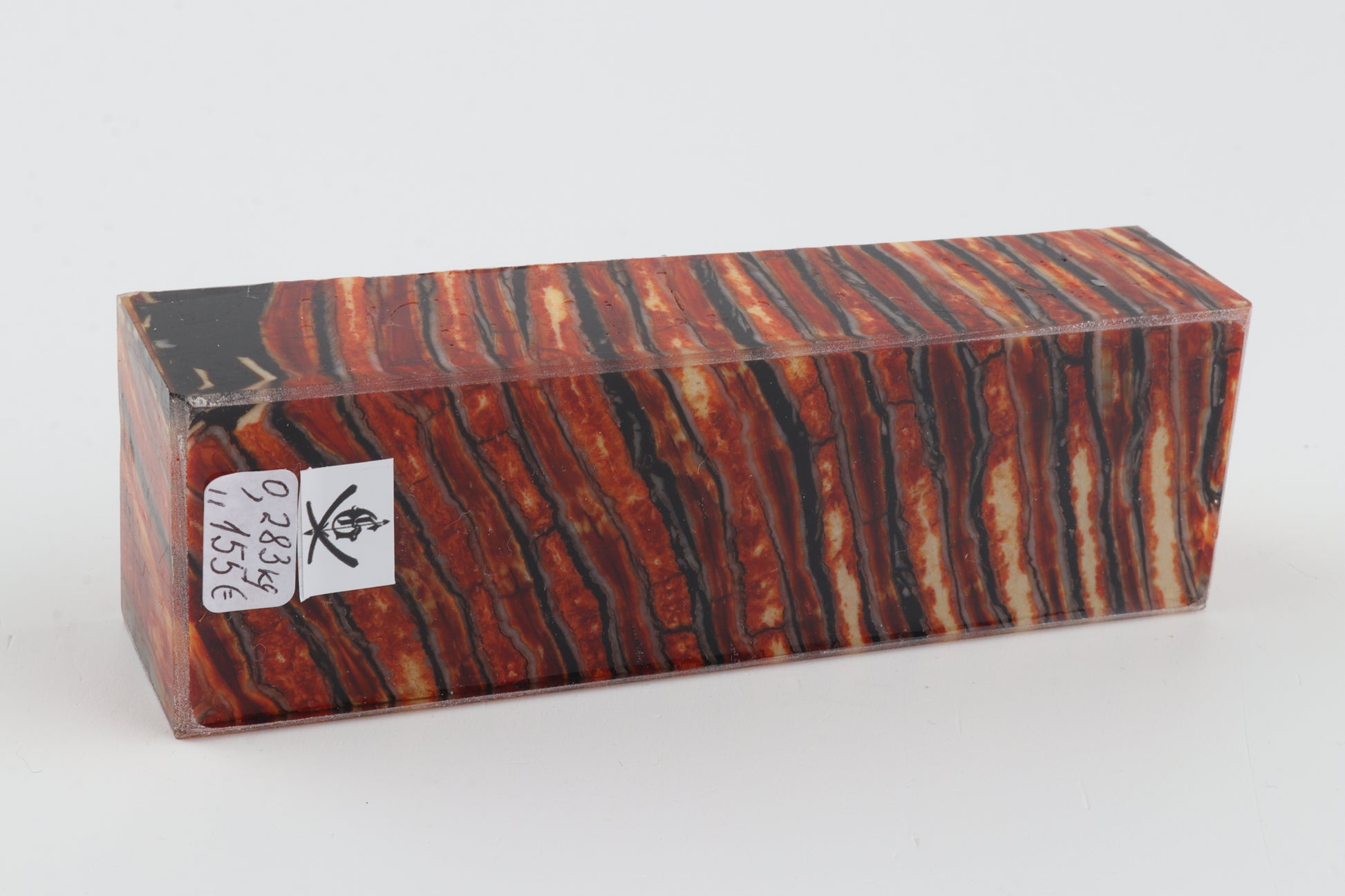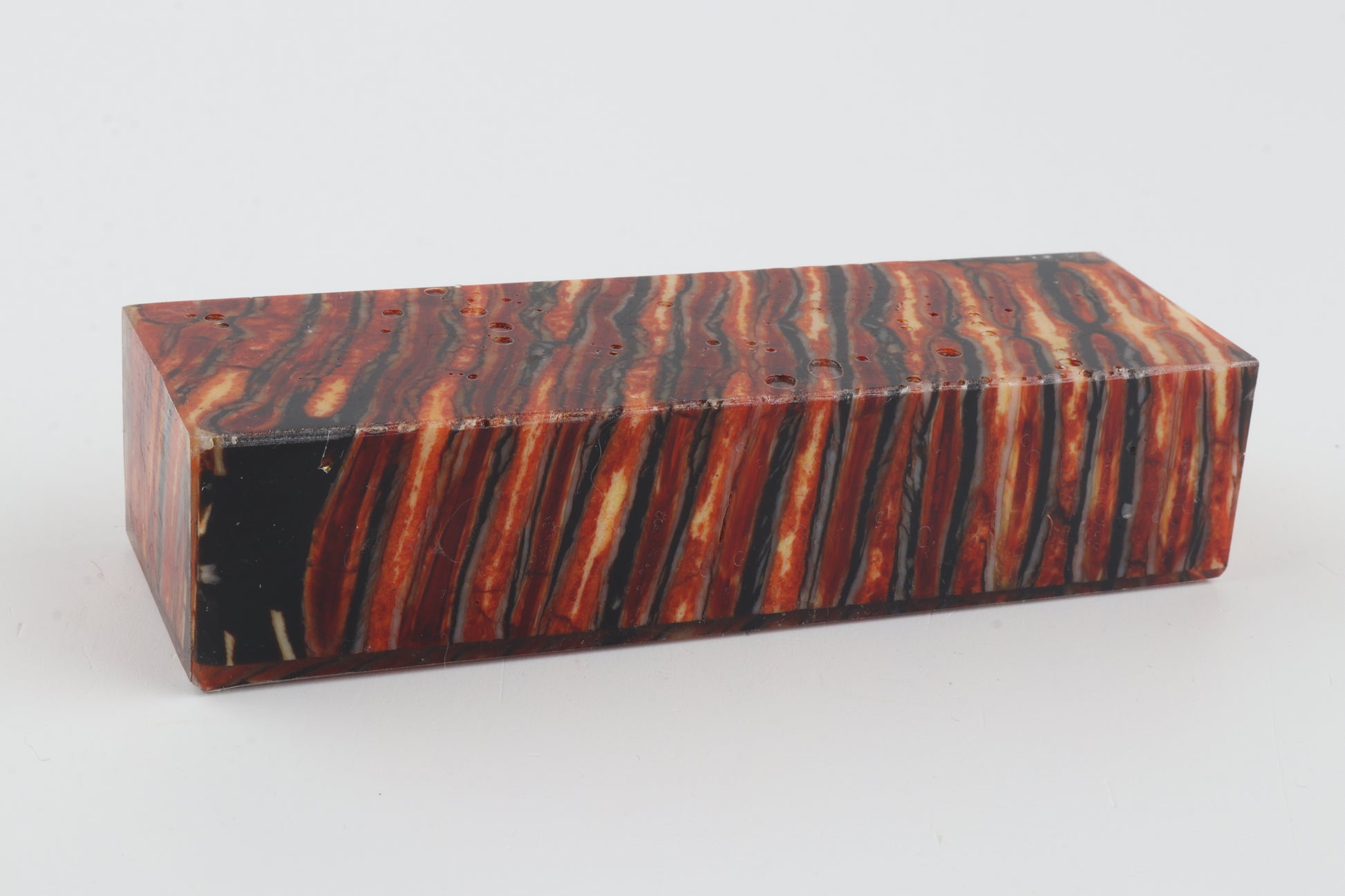 This is a cross-cut, stabilised woolly mammoth molar block (Mammuthus primigenius). This molar block can be precision-cut, drilled, sanded, polished etc. to achieve the desired results. Consistent width and thickness. The colour of the molar is red.