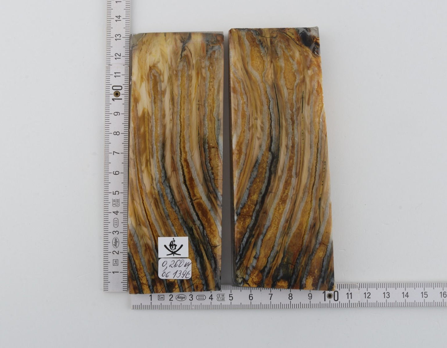 This is a length-cut pair of stabilised woolly mammoth molar scales (Mammuthus primigenius). These molar scales can be precision-cut, drilled, polished, sanded etc. to achieve the desired results. Consistent width and thickness with reserves on both ends. The colour of the molar is yellow.