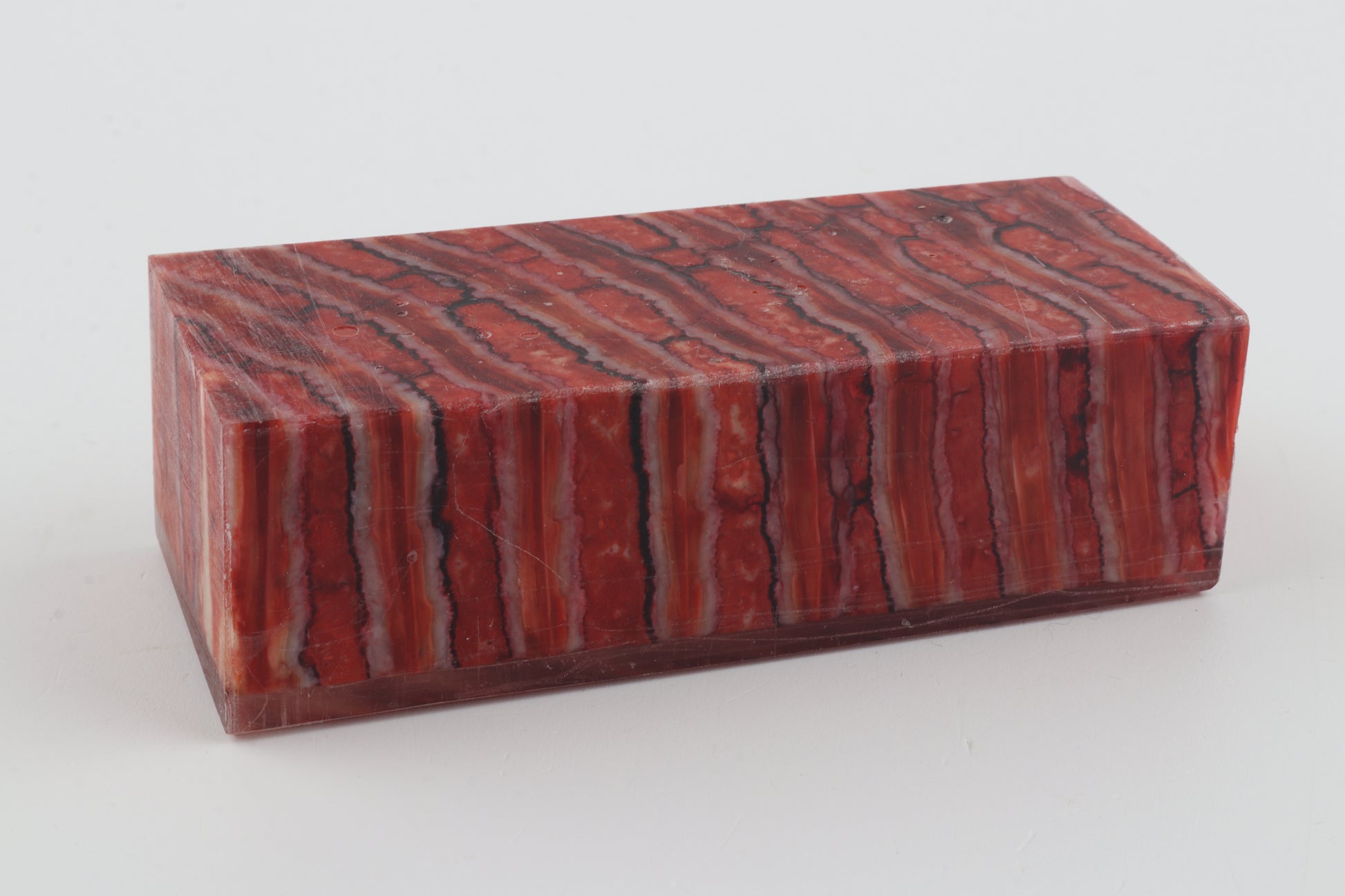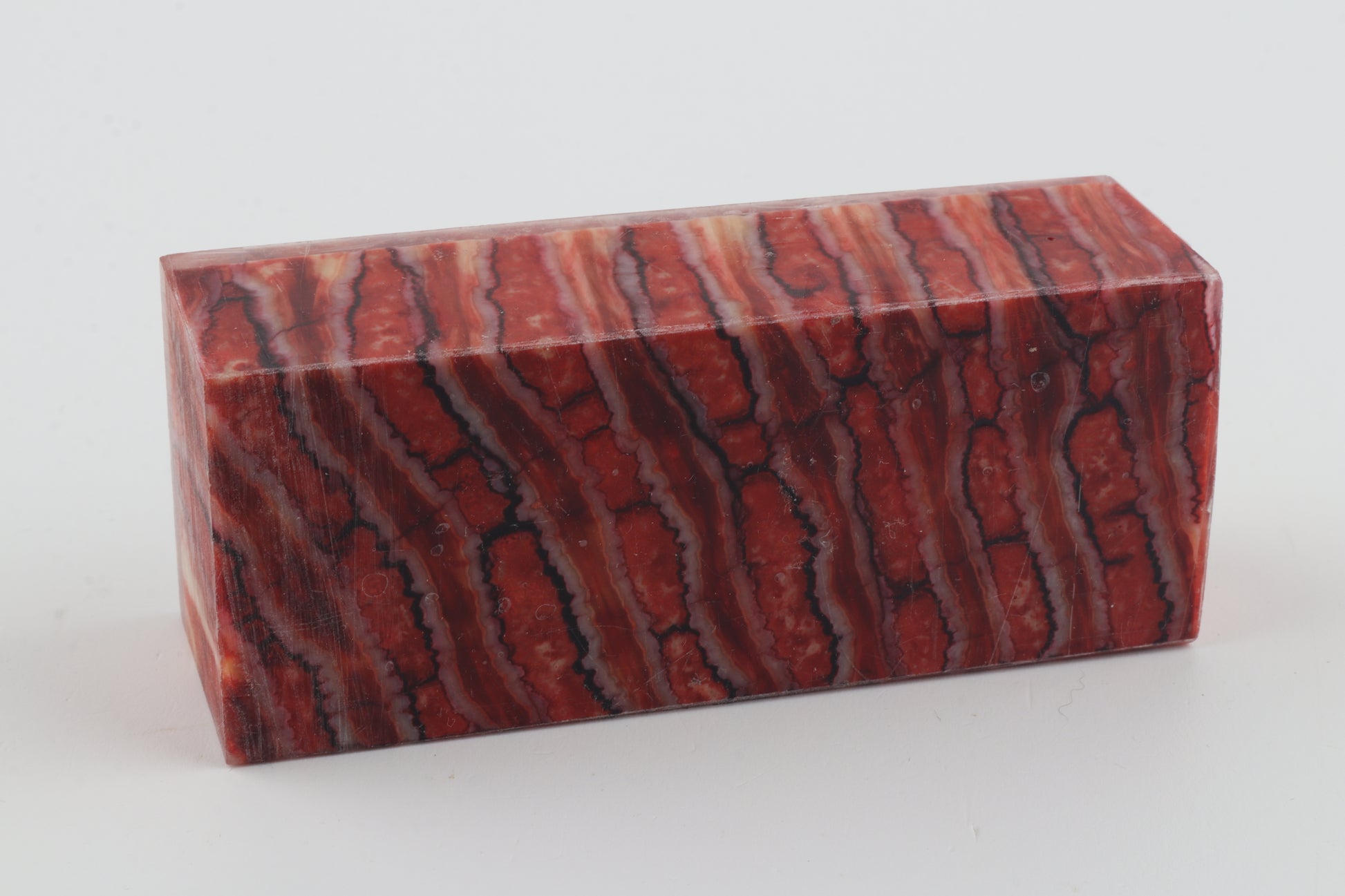 This is a cross-cut, stabilized woolly mammoth molar block (Mammuthus primigenius). This molar block can be precision-cut, drilled, sanded, polished etc. to achieve the desired results. Consistent width and thickness. The colour of the molar is red.