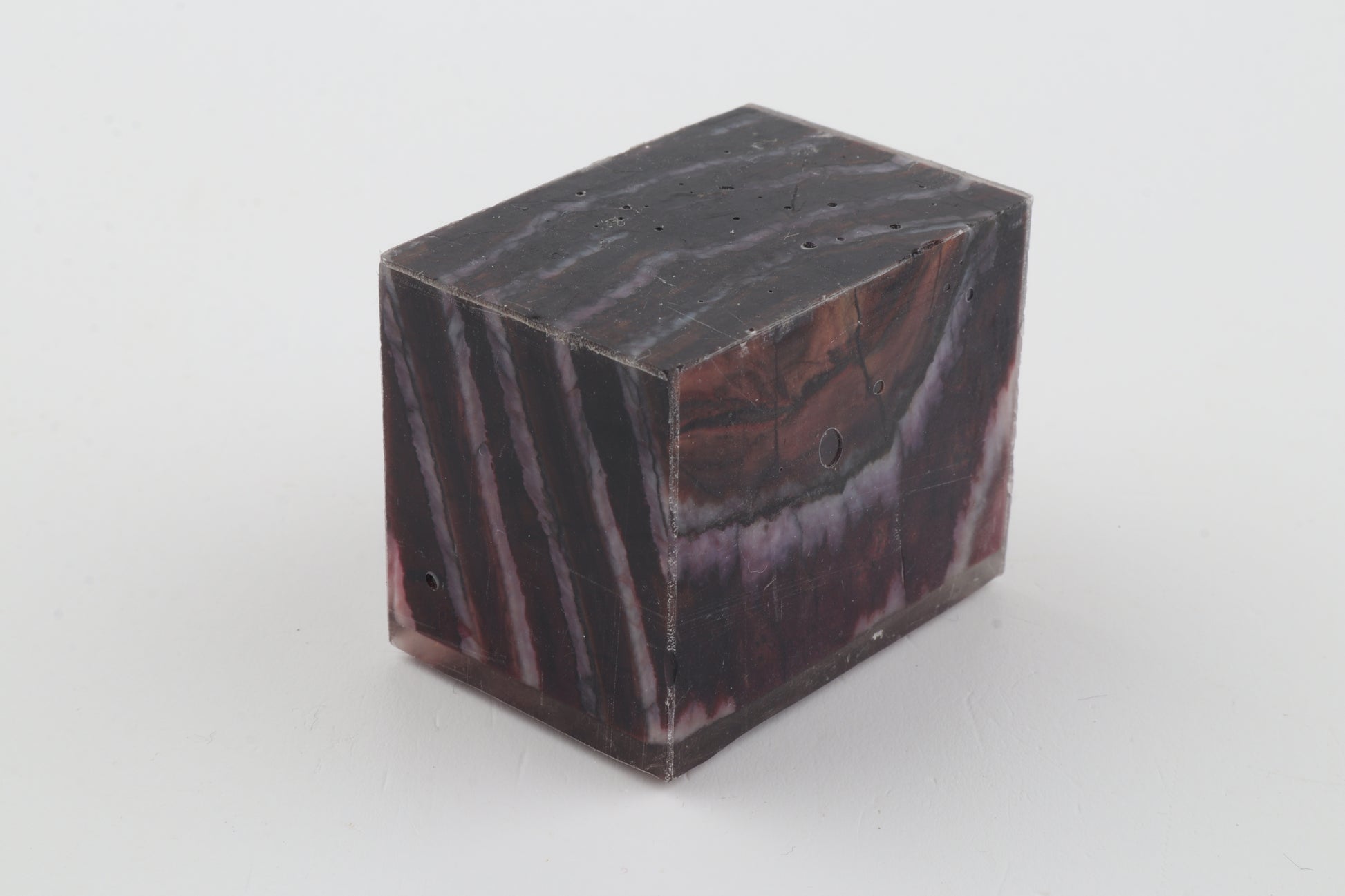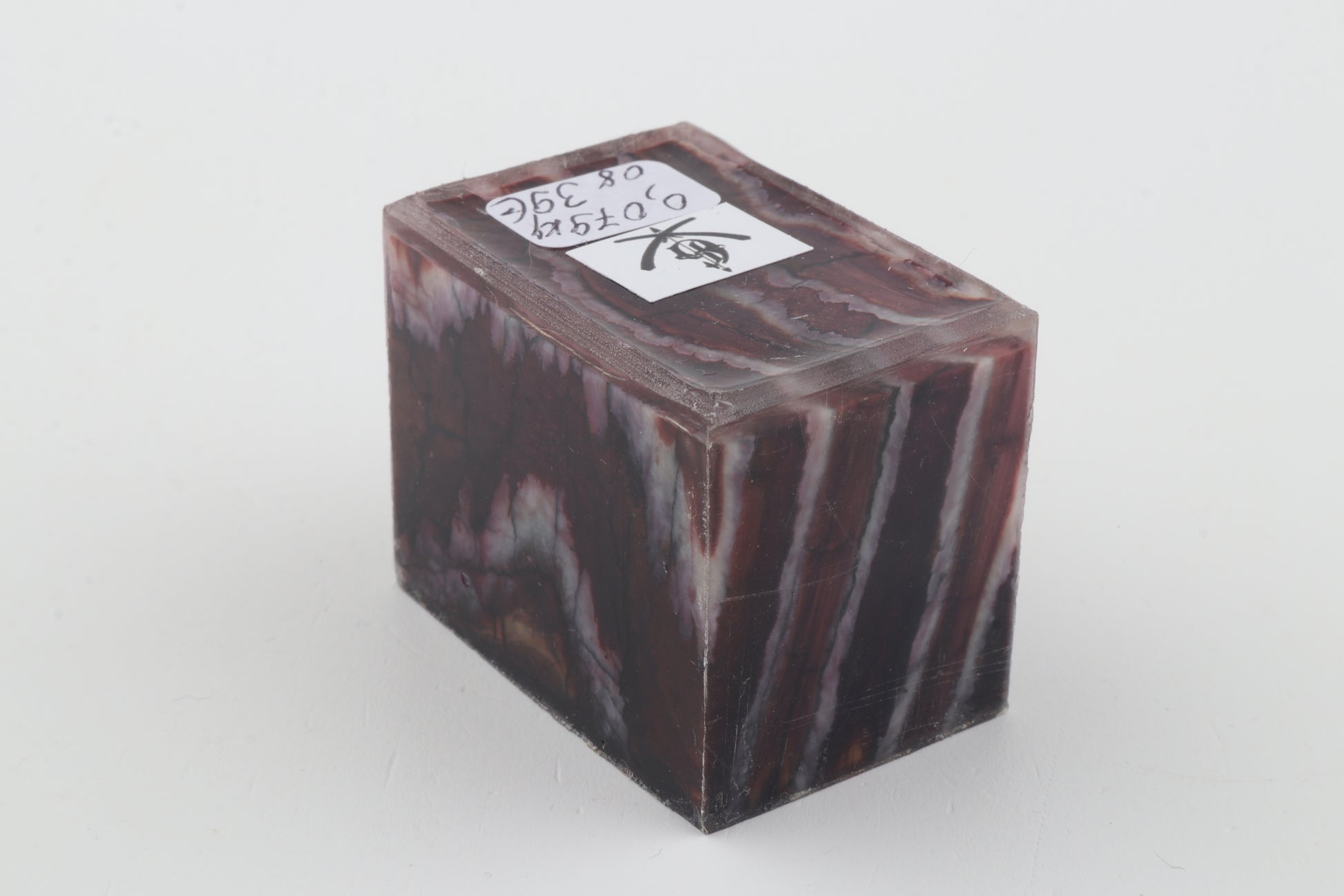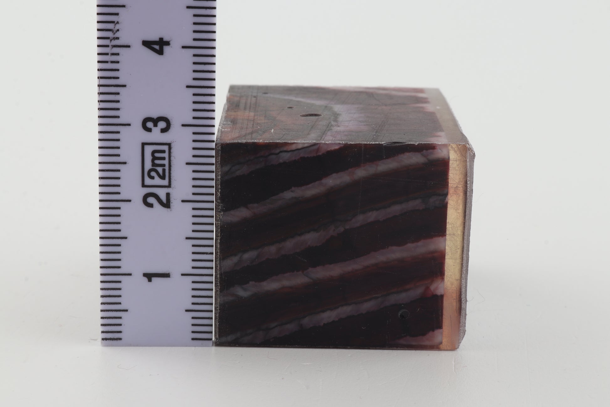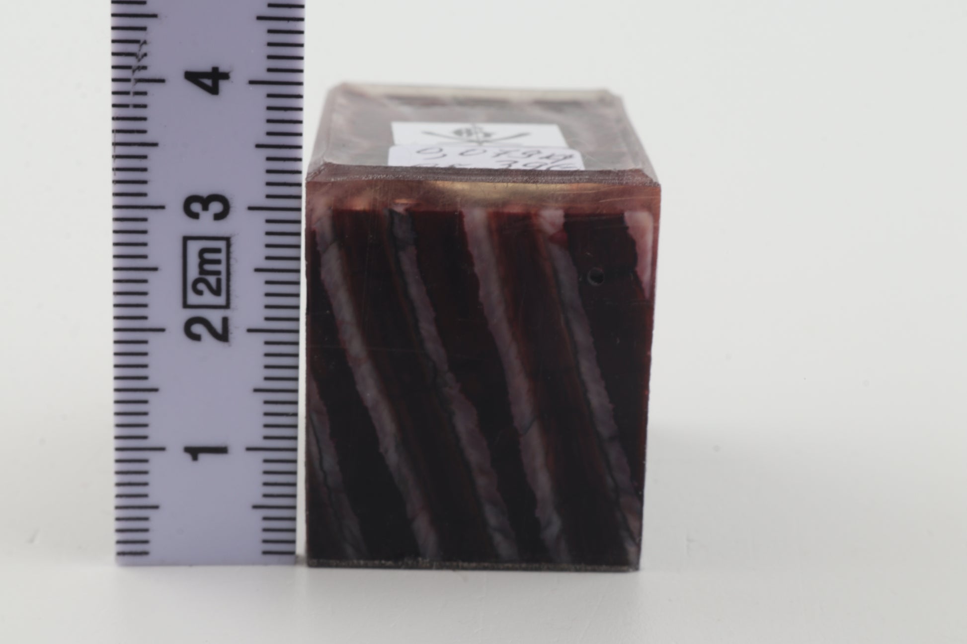 This is a cross-cut, stabilized woolly mammoth molar piece (Mammuthus primigenius). This rectangular block can be precision-cut, drilled, sanded, polished etc. to achieve the desired results. Consistent width and thickness. The colour of the molar is a mix of brown and purple.