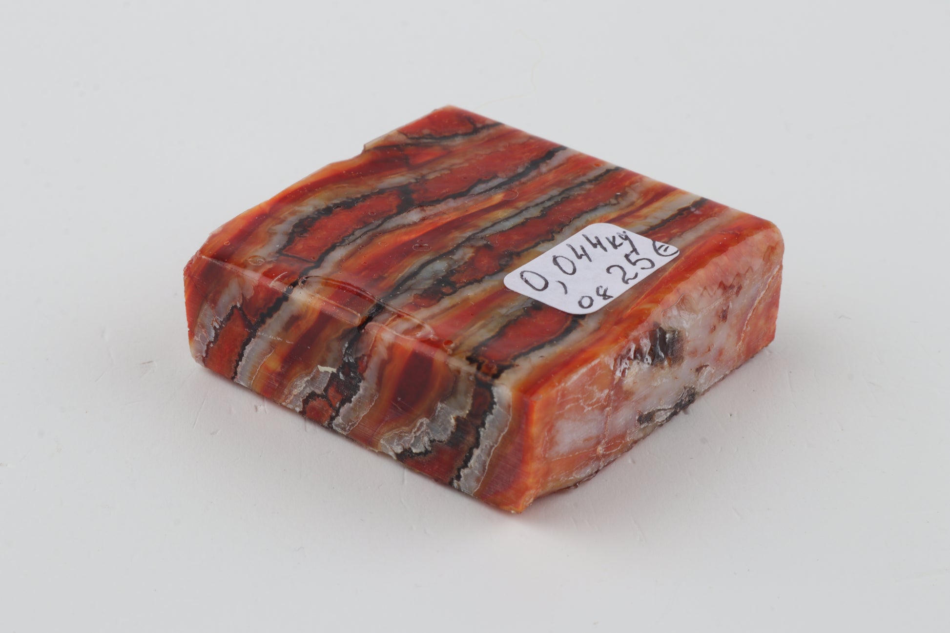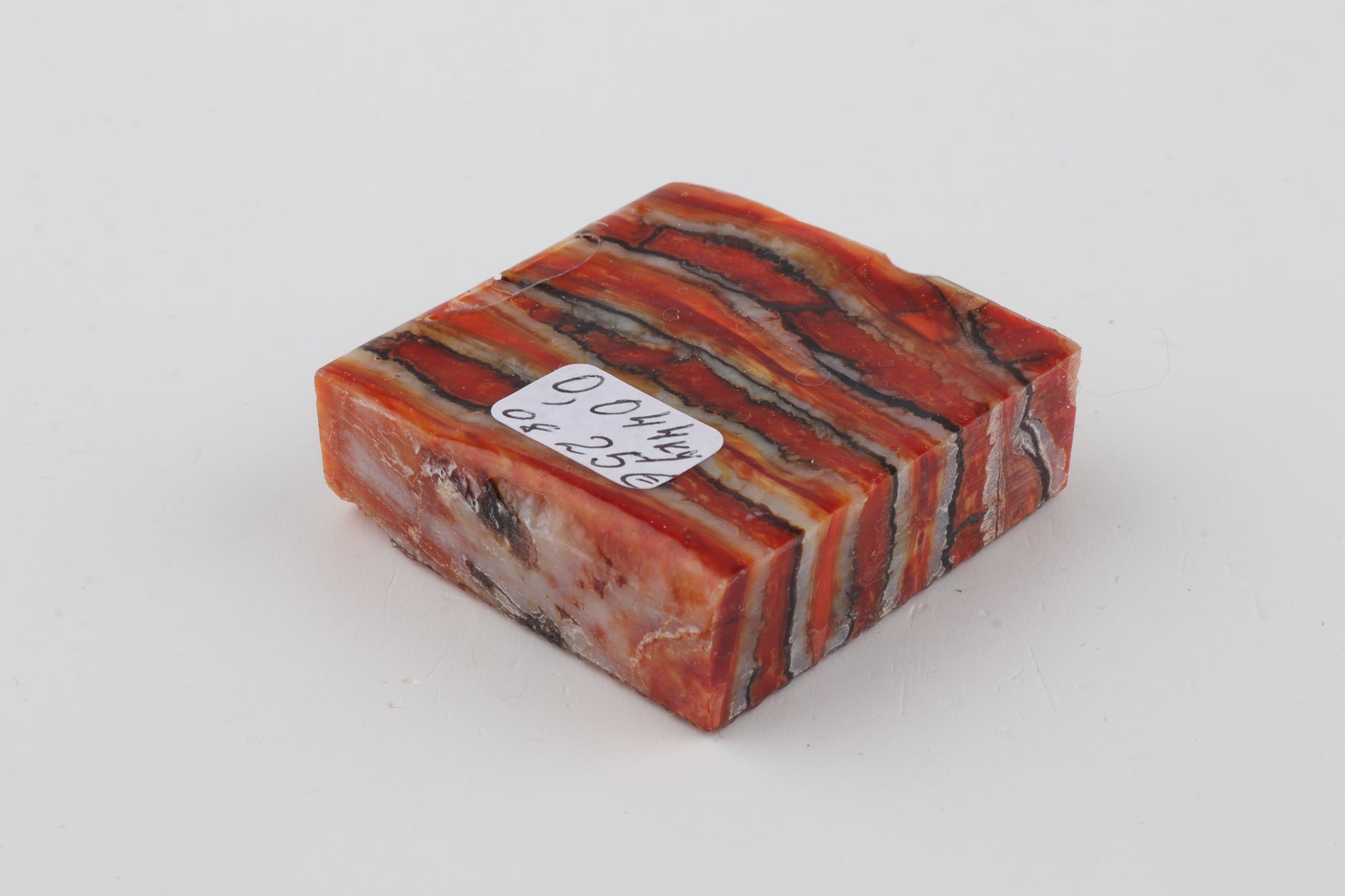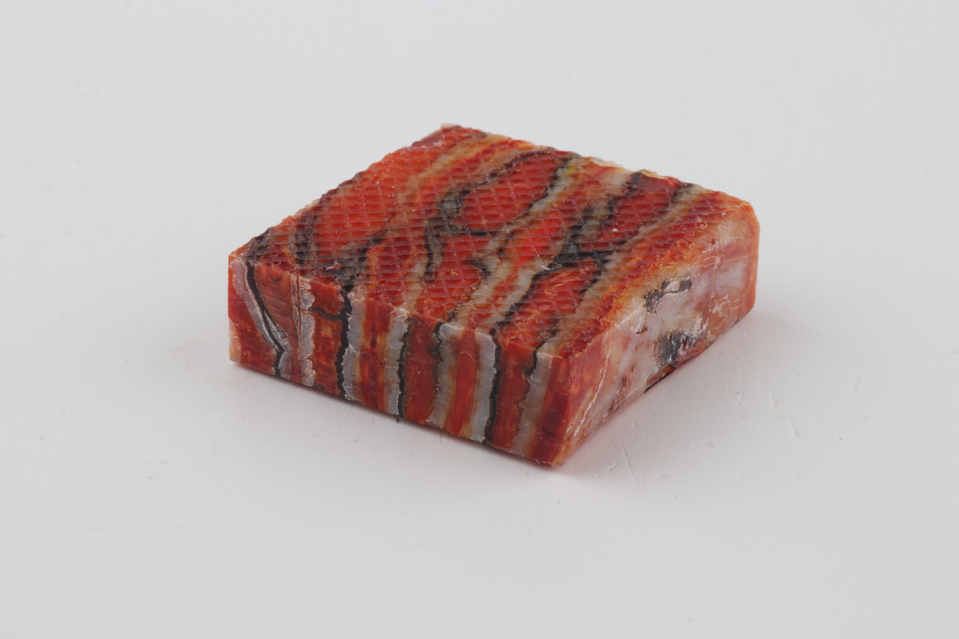 This is a cross-cut, stabilised woolly mammoth molar piece (Mammuthus primigenius). This square block can be precision-cut, drilled, sanded, polished etc. to achieve the desired results. Consistent width and thickness. The colour of the molar is red.