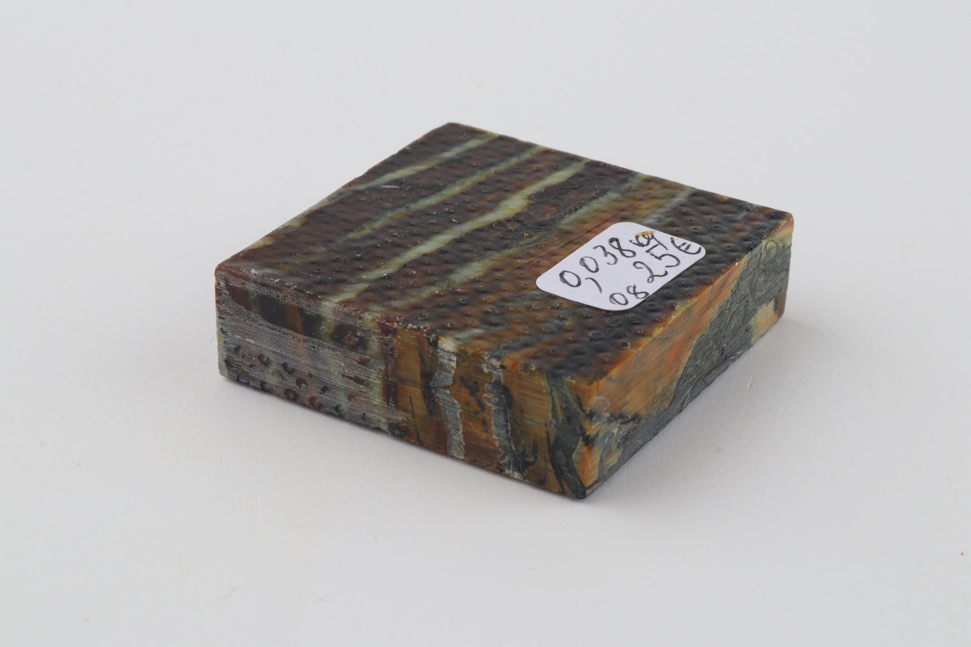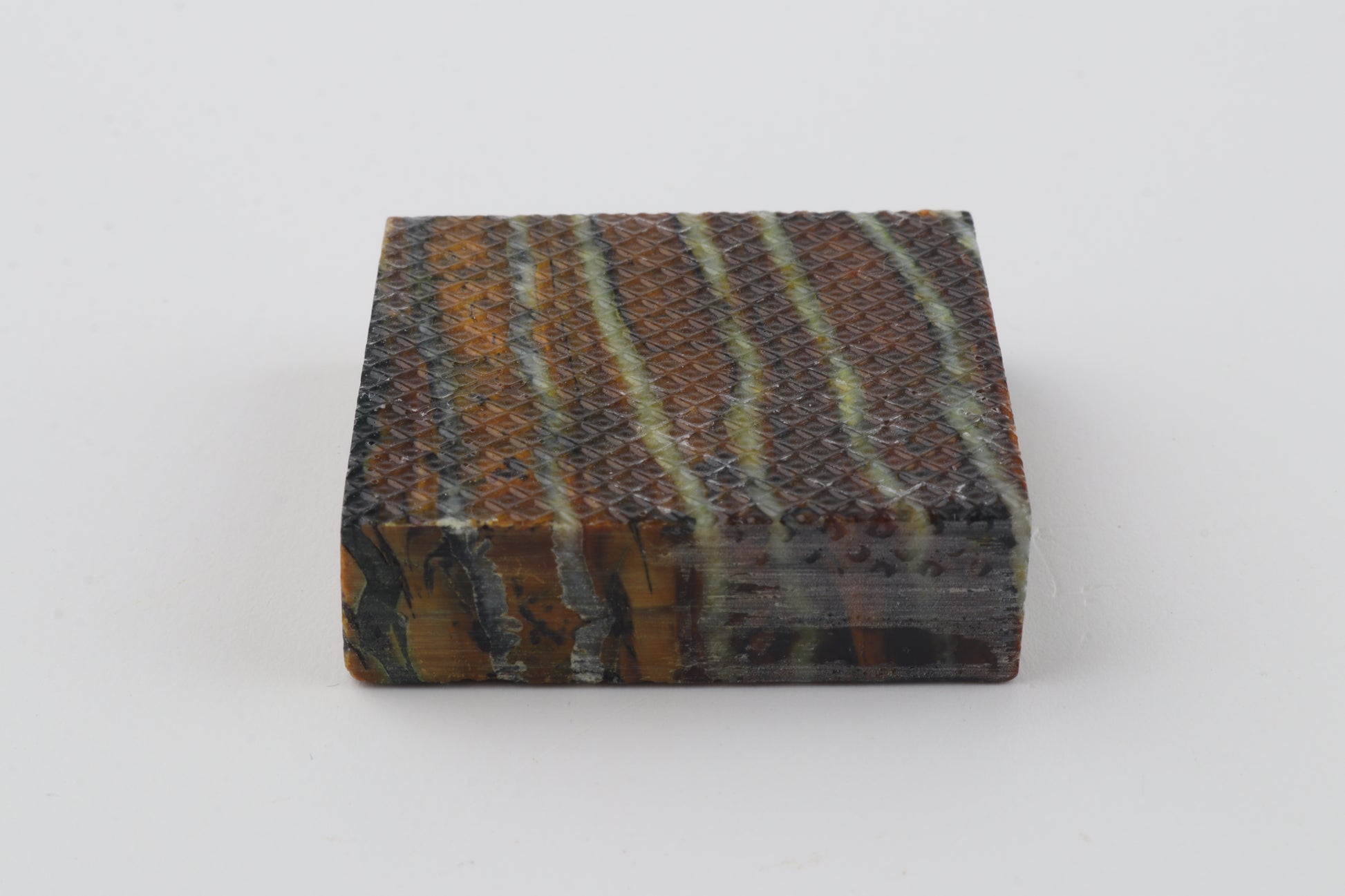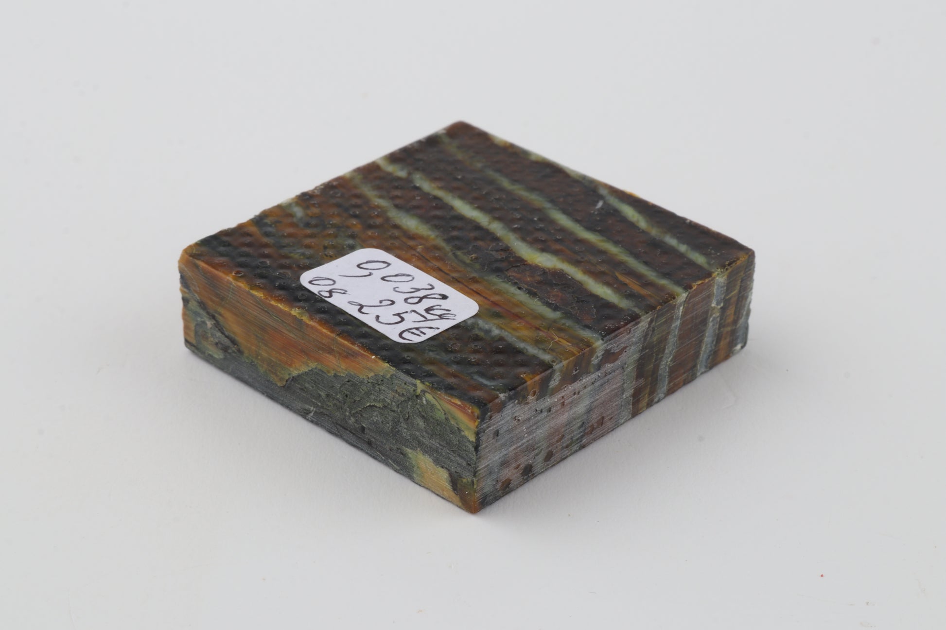 This is a cross-cut, stabilised woolly mammoth molar piece (Mammuthus primigenius). This square block can be precision-cut, drilled, sanded, polished etc. to achieve the desired results. Consistent width and thickness. The colour of the molar is brown.