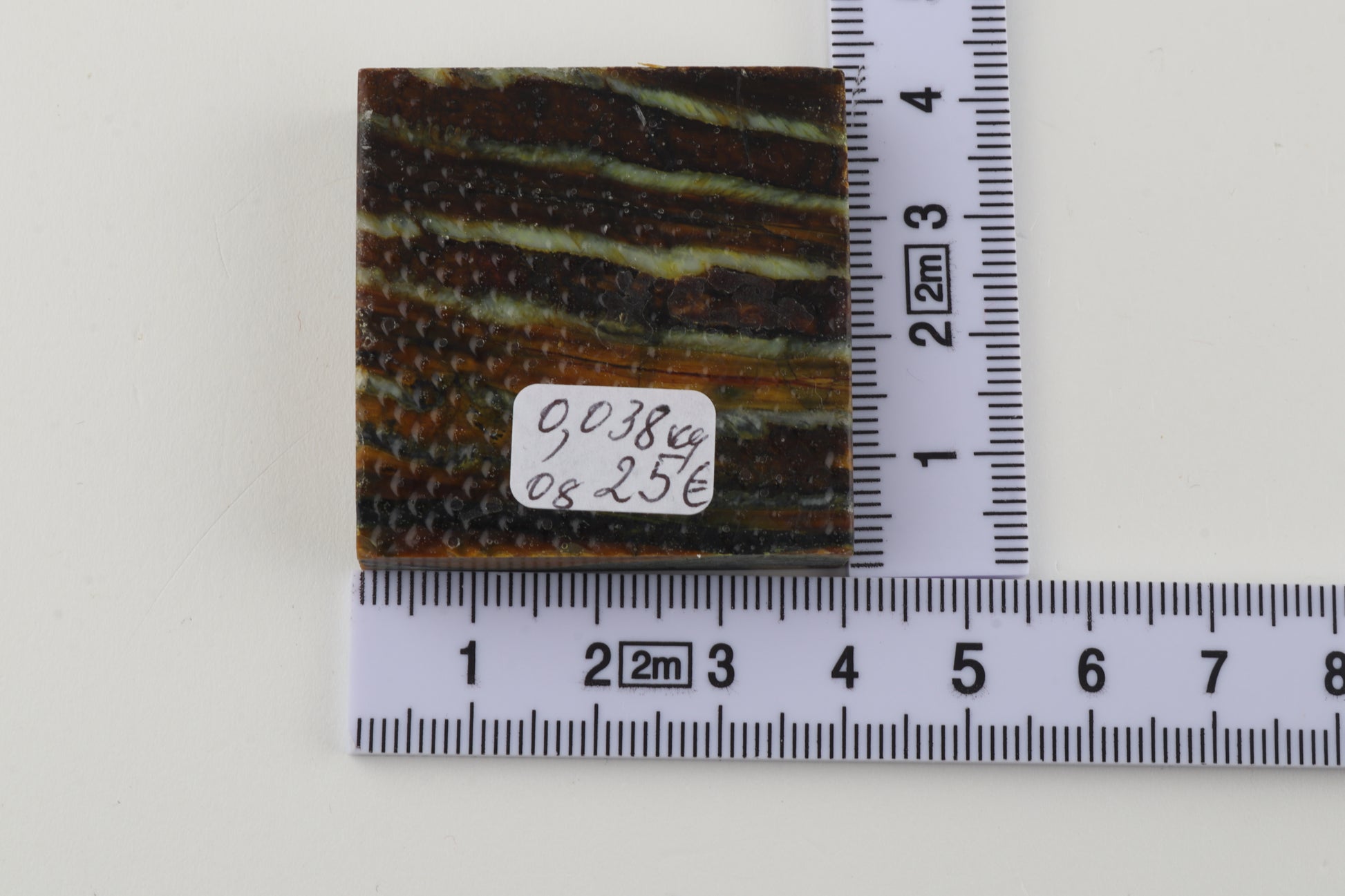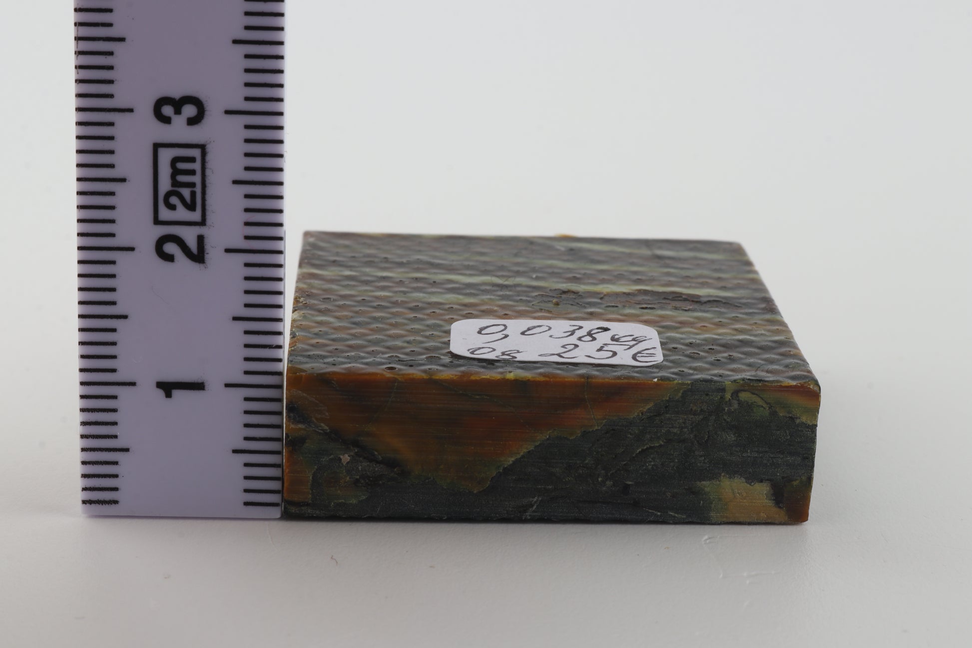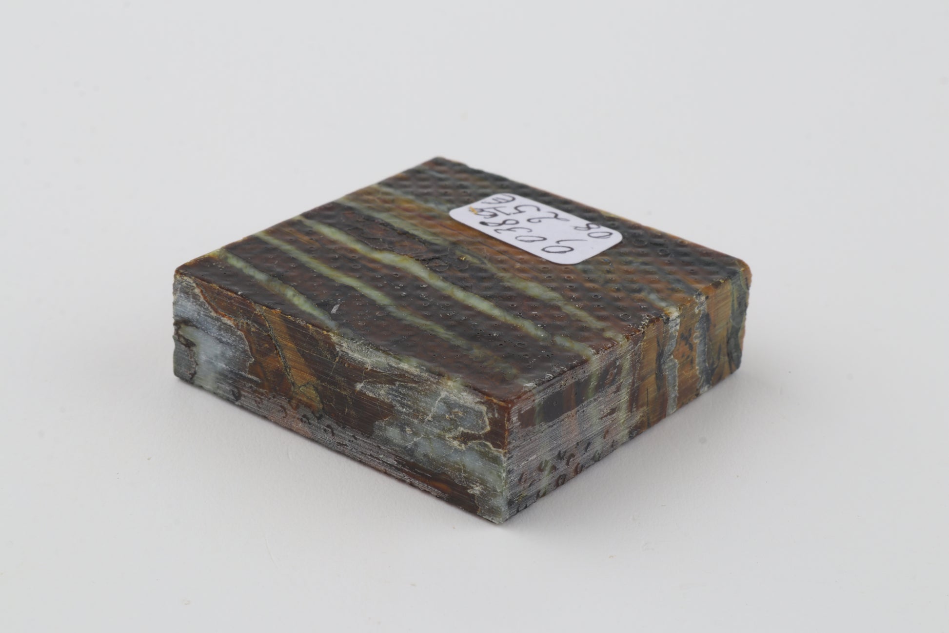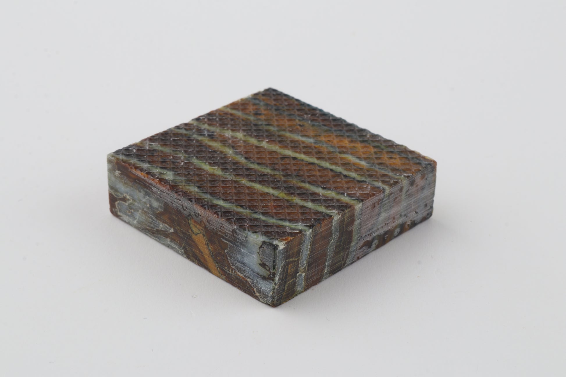 This is a cross-cut, stabilised woolly mammoth molar piece (Mammuthus primigenius). This square block can be precision-cut, drilled, sanded, polished etc. to achieve the desired results. Consistent width and thickness. The colour of the molar is brown.